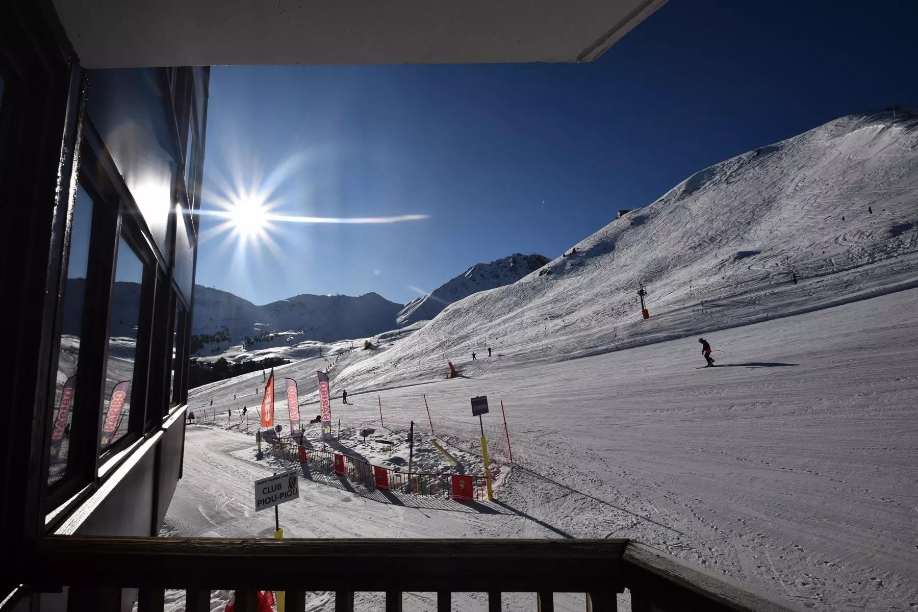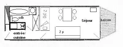 Studio 26m2, 3/4 people, south/west exposure, balcony, view of the slopes, 3rd floor with elevator, star part. Kitchen in the entrance/corridor: 2 electric hotplates, refrigerator, microwave oven, dishwasher. Living room: dining area, 1 double sofa bed (140cm), 2 single beds, television. Bathroom: bathtub, WC included. Floors: carpet except entrance, bathroom and kitchen: plastic. Bedding: duvets - Well exposed studio overlooking the slopes, located on the 1st floor slope side and 3rd floor road side. Ski locker n°C03 level B exit slope Etoile lockers.