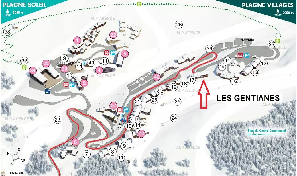 Quiet residence, located at the foot of the slopes, and approximately 500m from the shops: connected by shuttle. - Plagne Villages is connected to Plagne Centre by the TELEBUS (pedestrian or skier cabin)