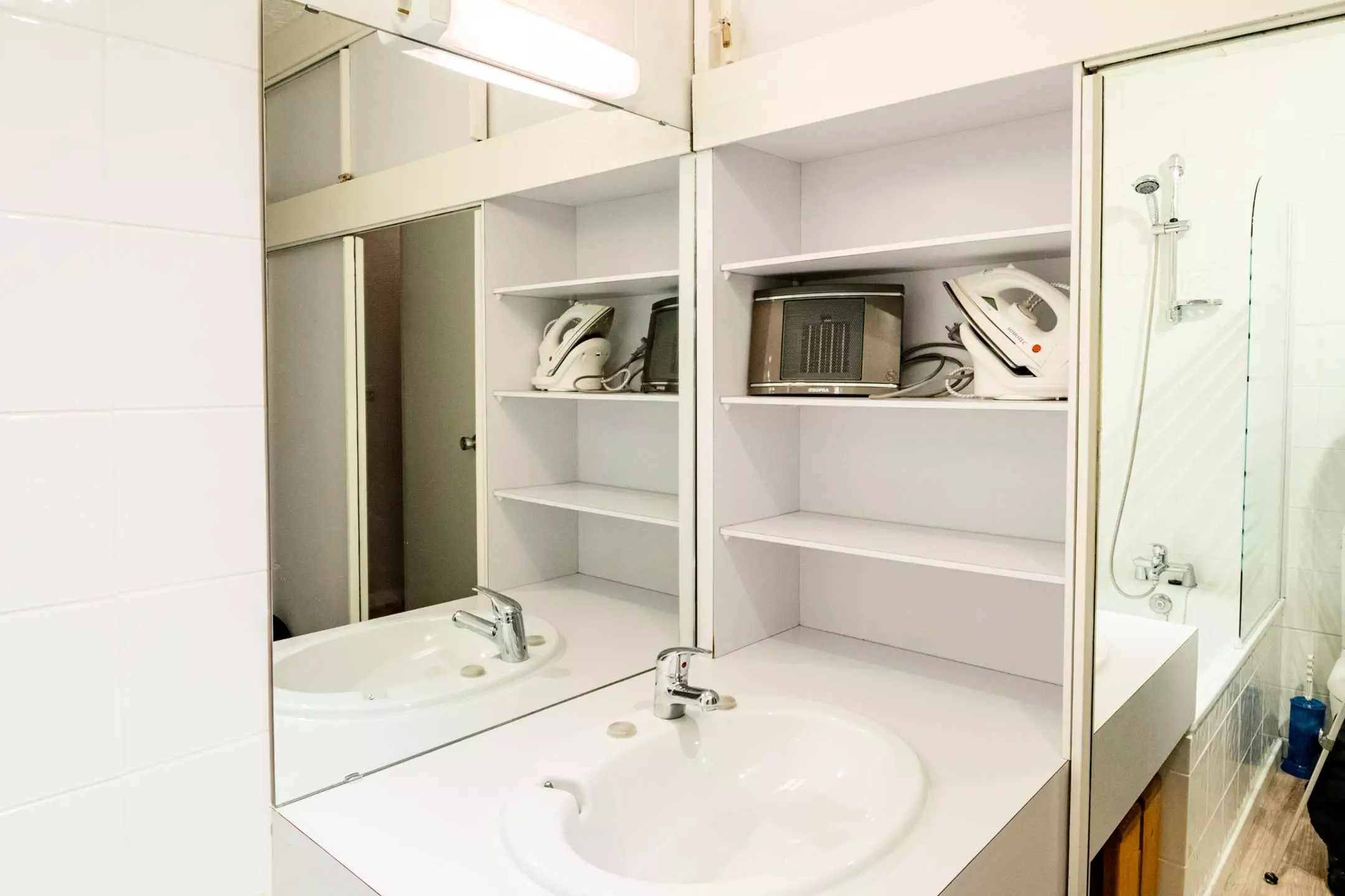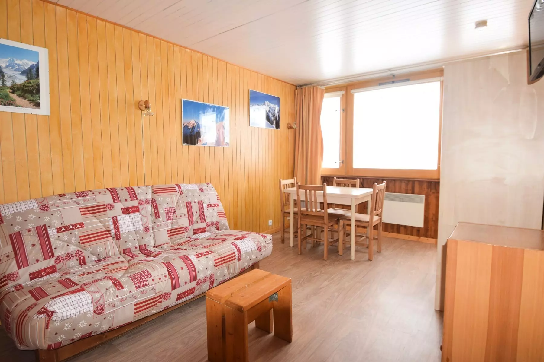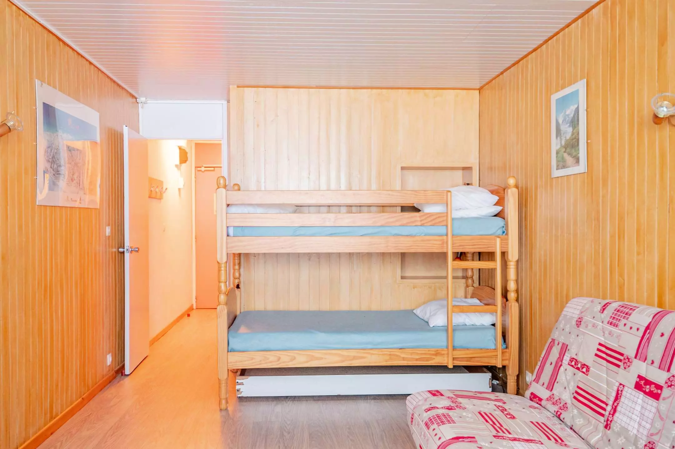 Studio 26m2, 3/4 people, south facing, balcony, view of the slopes, floor j with diamond elevator. Kitchen in the entrance/corridor: 2 electric hotplates, refrigerator, microwave, mini-oven, dishwasher. Living room: dining area, 1 sofa bed for 2 people and 2 bunk beds 90cm, television. Bathroom: bathtub, WC included. Studio well exposed, sunny. Bedding: duvets and blankets - Ski locker n° J49 under ESF level F room n°2. Non-smoking apartment. Optional and extra: End of stay cleaning, sheets, towels, ski passes.