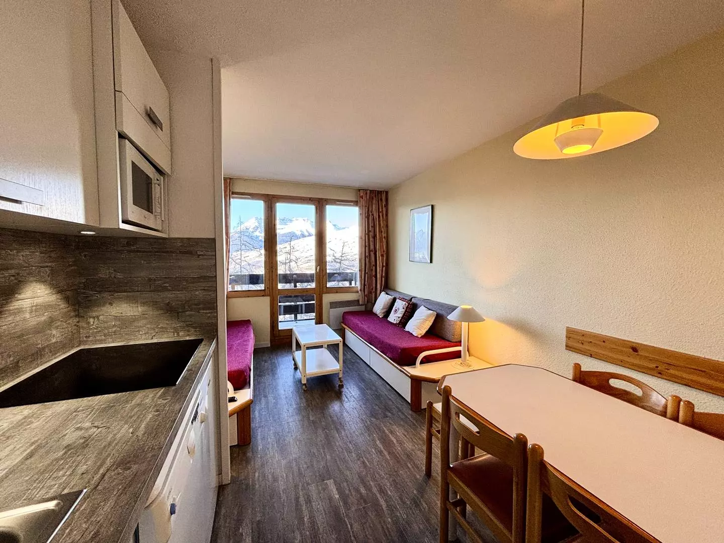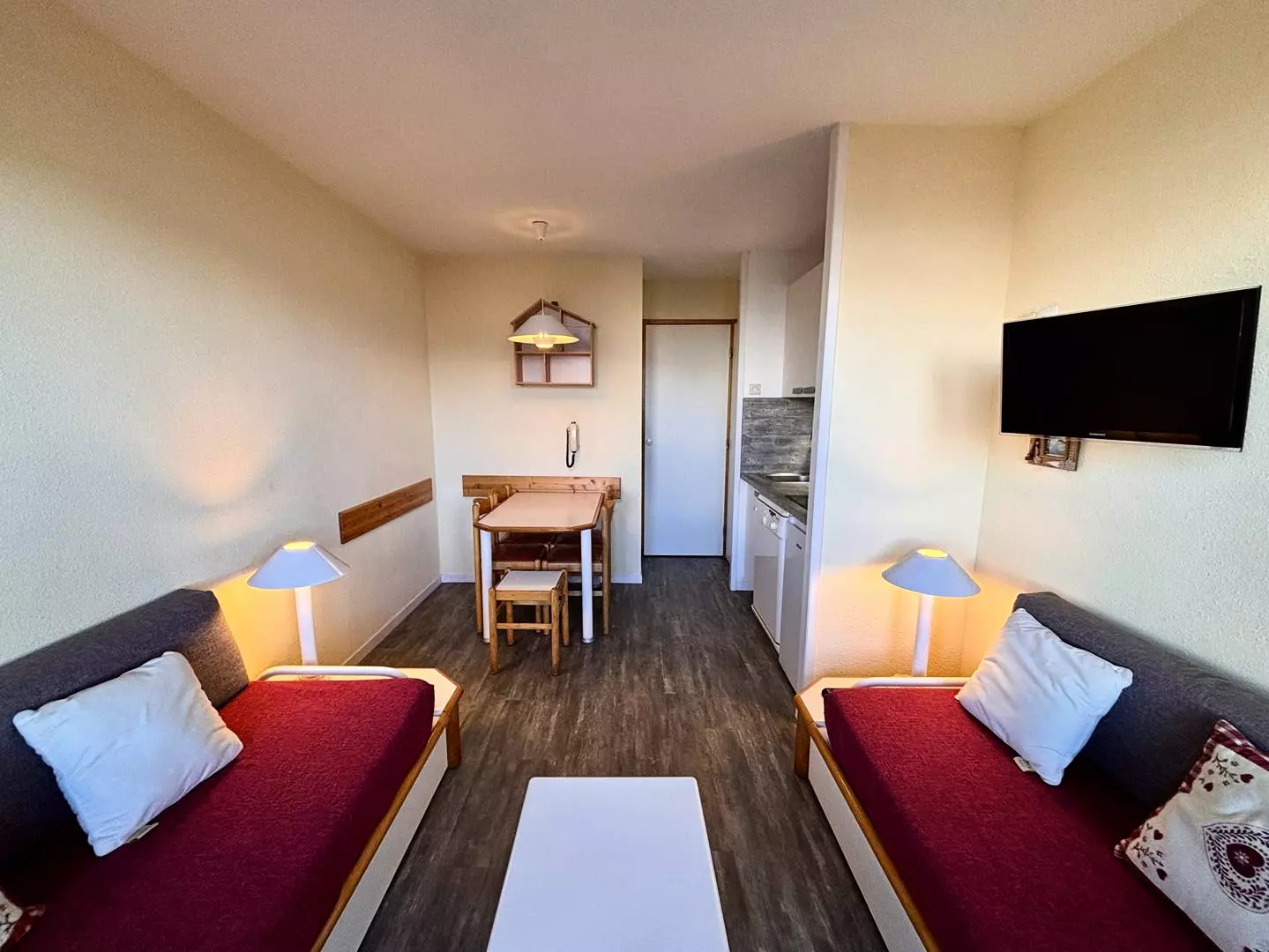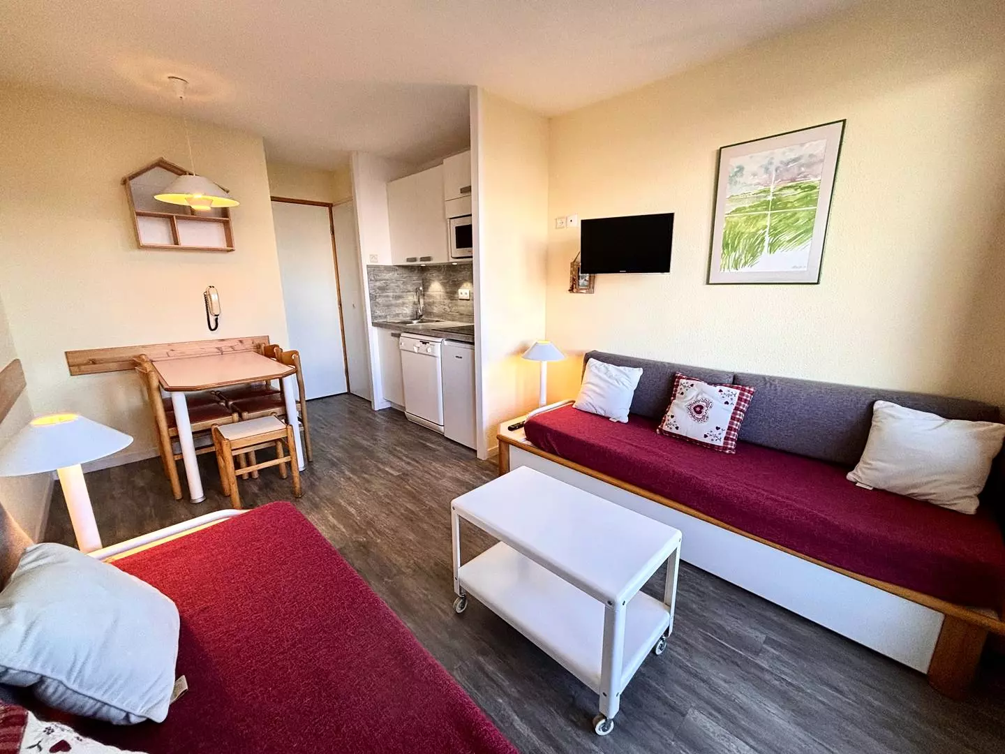 Located on the 2nd floor of the residence, this 23m² studio apartment, equipped for 4 people, includes: