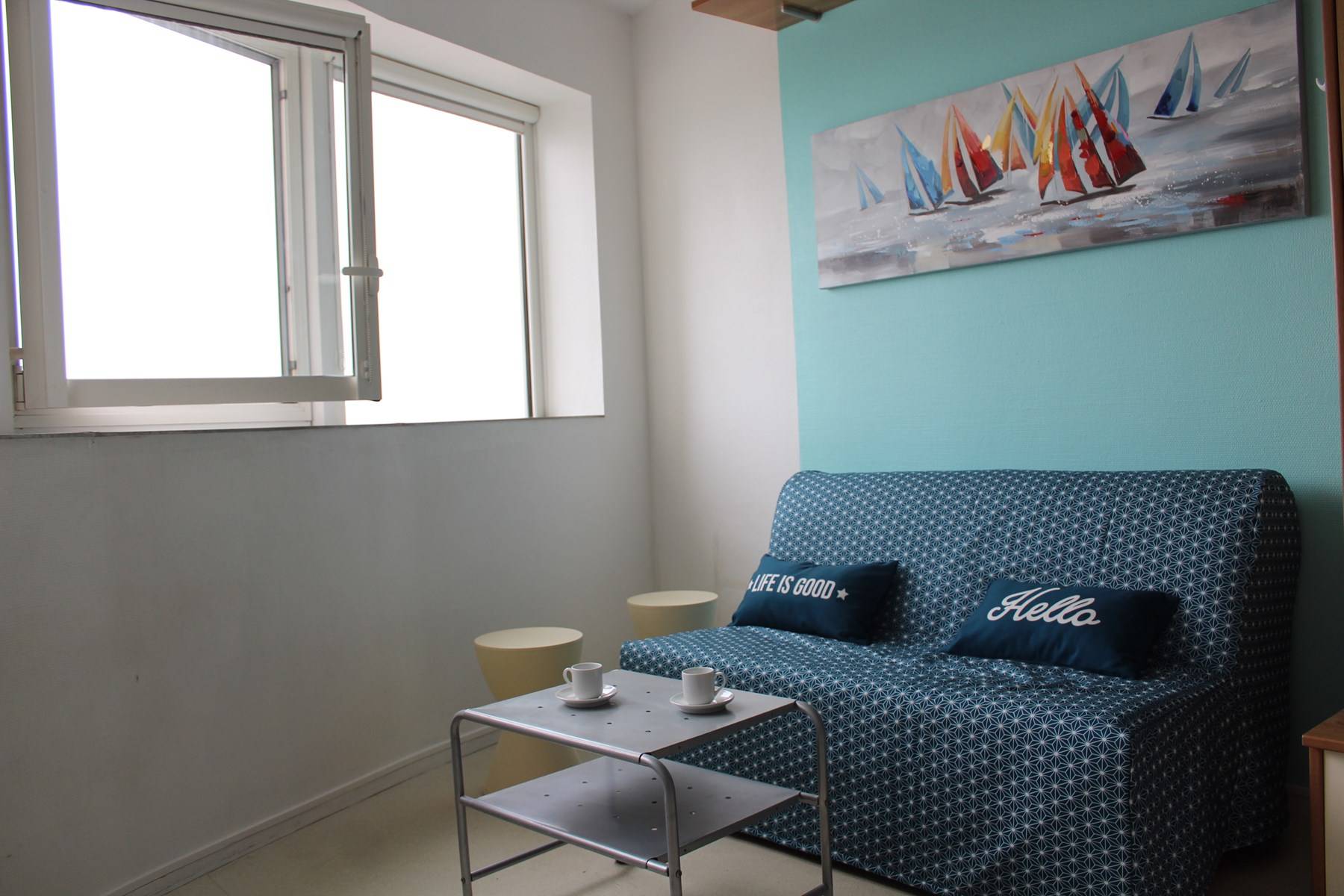 La Rochelle (17) - Les Minimes - Résidence Porte Océane 1-room apartment - approximately 20 m² - up to 2 people Located in the heart of the minimes district of La Rochelle and close to the marina, this apartment is in a very pleasant. With family or friends, this accommodation would be ideal for discovering La Rochelle. The view is exceptional. A breathtaking sea view. It is on the 3rd floor and consists of a living room with sea view with a 2-seater sofa bed, a fitted kitchen area, a shower room and a WC. The advantages of this rental by the sea: close to the beach and the port, sea view, secure residence. Cleaning included. Delivery and return of keys exclusively in La Rochelle (Minimes district).