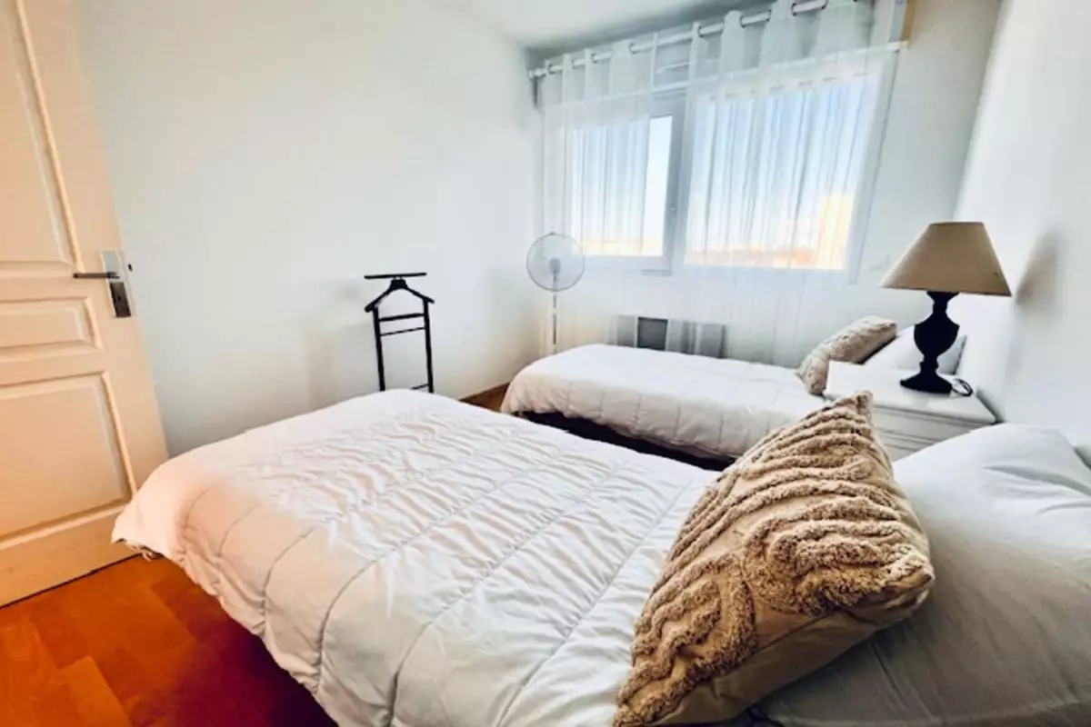It includes a bedroom with a double bed of 160 x 190, as well as a second bedroom equipped with two single beds of 90 x 190, perfect for accommodating families and friends.