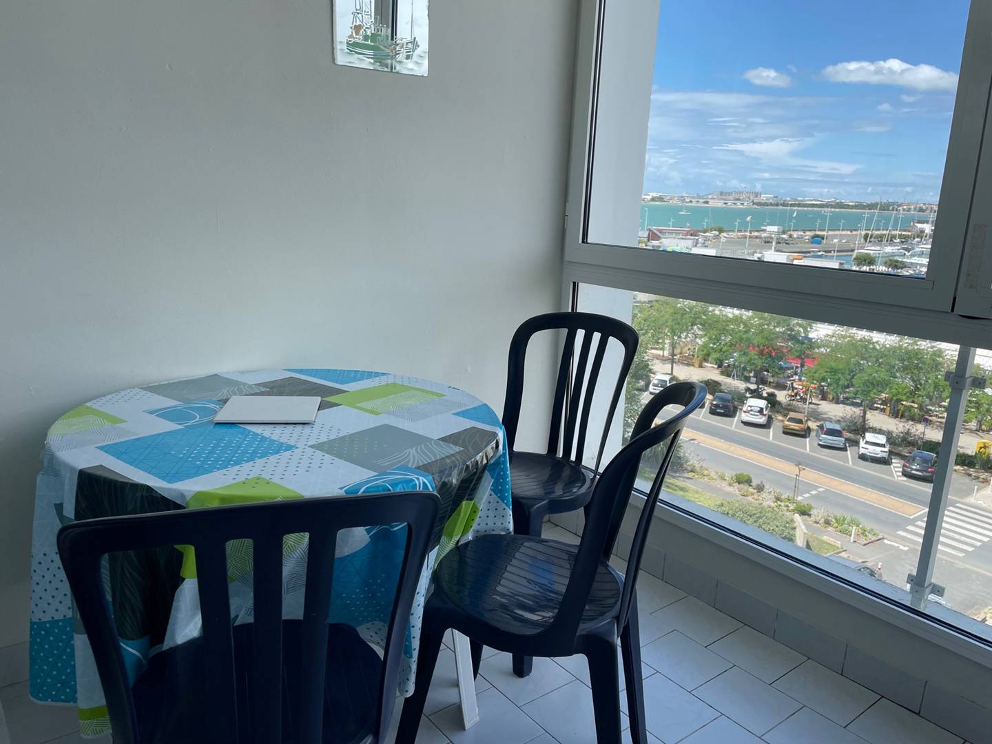 La Rochelle (17) - Les Minimes - Residence CAP 239 1-room apartment sleeping area - approx. 32 m² - up to 4 people Charming holiday apartment with a beautiful view from the balcony. Breathtaking harbor view! It is located in a quiet and secure residence. It is on the fifth floor with lift, it consists of a living room with a sofa bed 2 places, a sleeping area with sleeping 2 places, an equipped kitchen area, a bathroom as well as a loggia with garden furniture offering a splendid view of the port. Independent WC. The advantages of this rental by the sea: Loggia, magnificent sea view, secure residence, bike room, private outdoor parking, close to shops and easy access to public transport. Beach at the foot of the residence and the port of Les Minimes is just opposite. Cleaning with disinfection included.