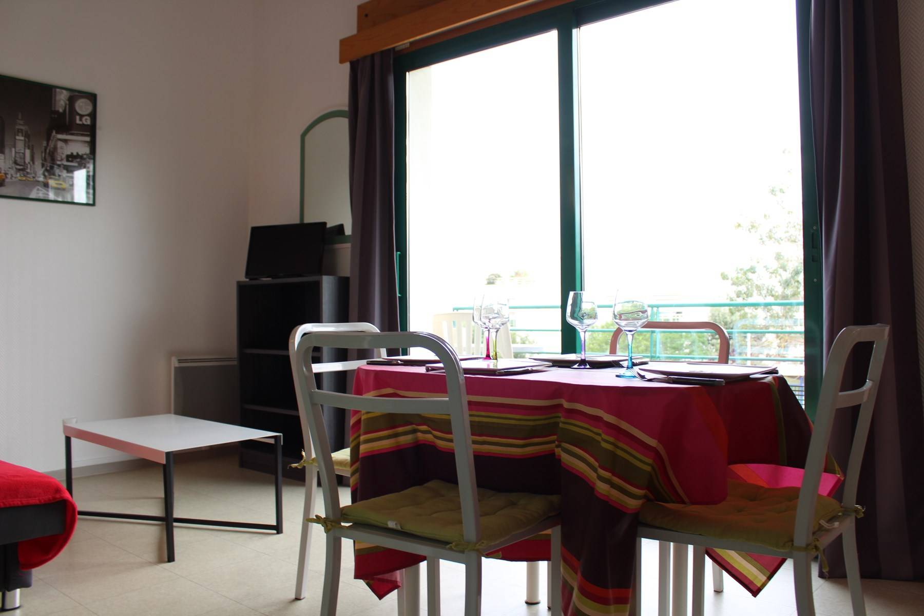 La Rochelle (17) - Les Minimes - Residence La Rochelière 1 1-room mezzanine apartment - approx. 31 m² - up to 4 people Charming duplex holiday apartment offering a beautiful living room, very bright and ideally located. It is on the 3rd floor and consists of a living room with a 2-seater sofa bed, a TV area to relax, a balcony with garden furniture set up for lunch in peace, an equipped kitchen area (hob, fridge, microwave ), a bedroom on the mezzanine with a double bed, a shower room and a separate WC. The advantages of this rental by the sea: Balcony with garden furniture, private parking, close to shops and easy access to public transport. Cleaning with disinfection included.
