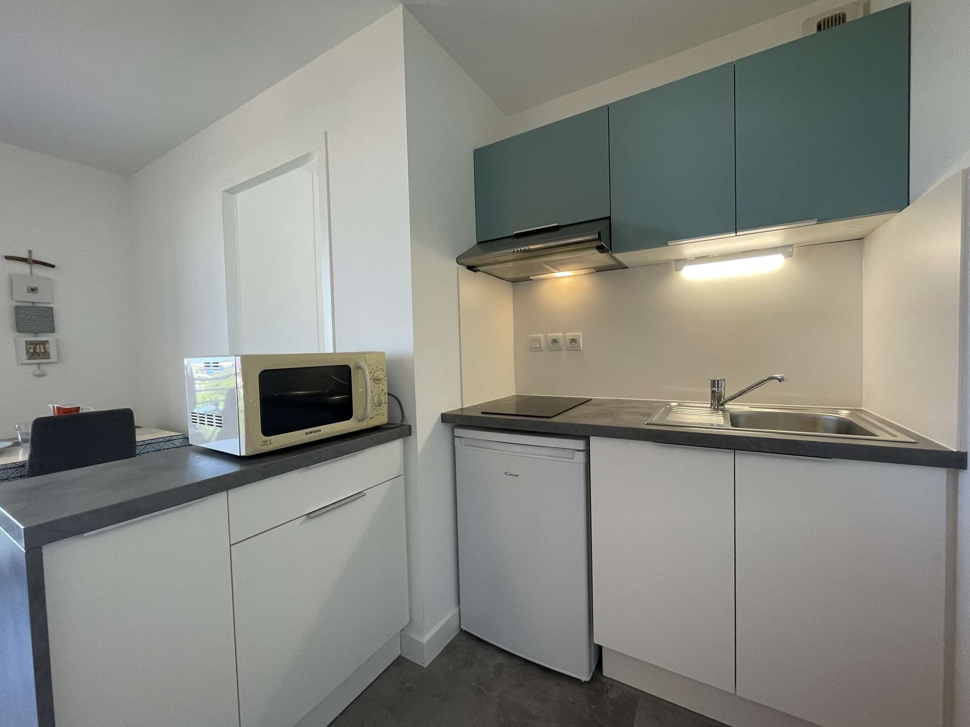 La Rochelle (17) - Tasdon Les Minimes - Residence 2 room apartment - approx. 27 m² - up to 4 people Charming holiday apartment located near the train station and shops. On the 3rd and last floor of the residence, it consists of a living room opening onto a small balcony with a 2-seater sofa bed, a fitted kitchen area, a bedroom with a double bed, a shower room with WC. The advantages of this seaside rental: close to the city center of La Rochelle, private parking, secure residence. Cleaning with disinfection included. Apartment refurbished in 2022