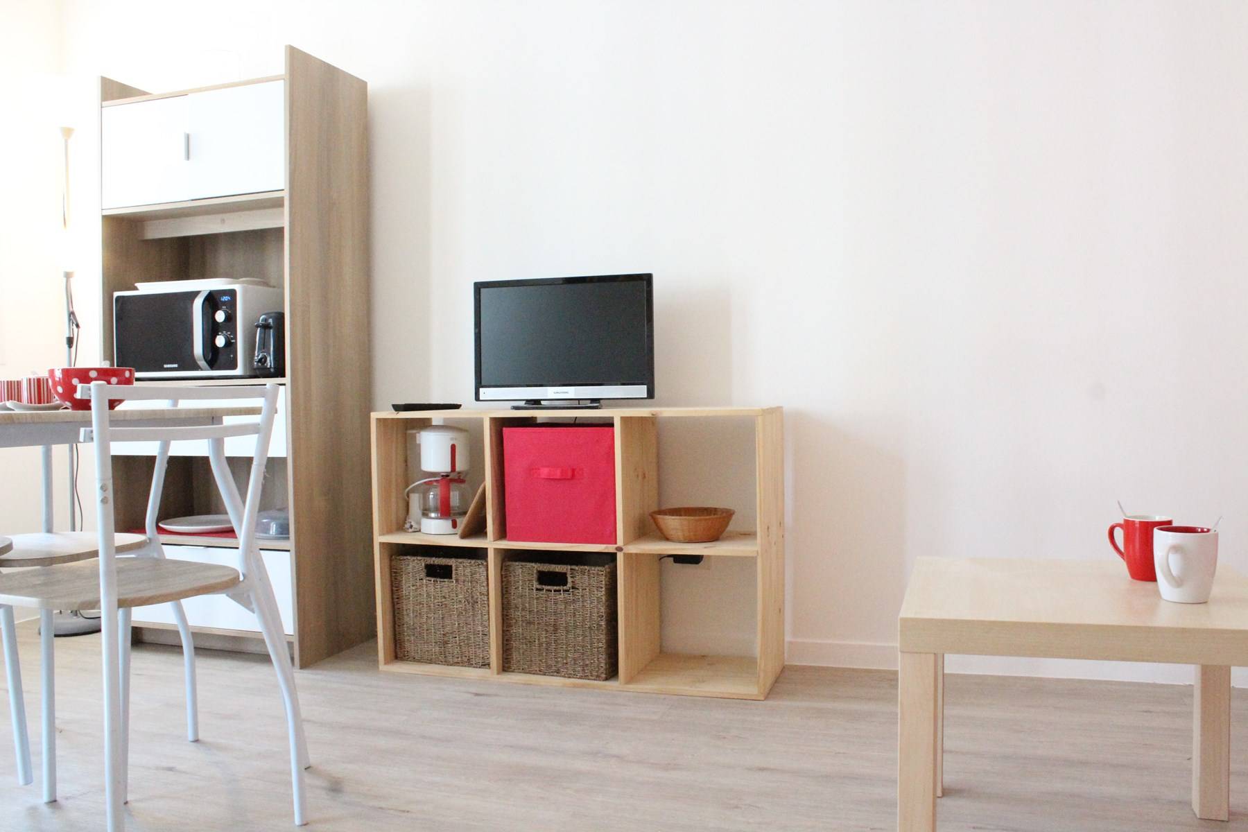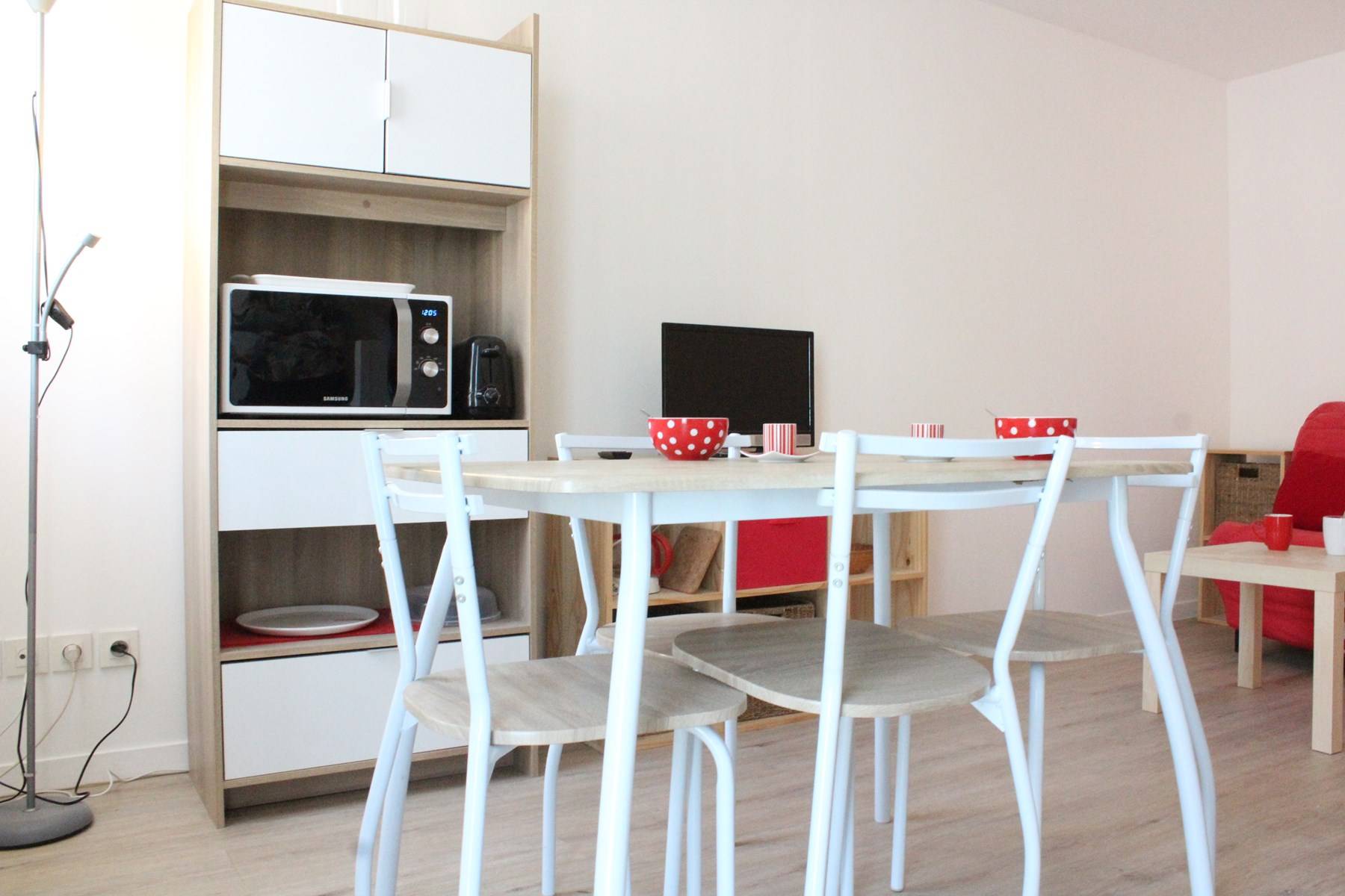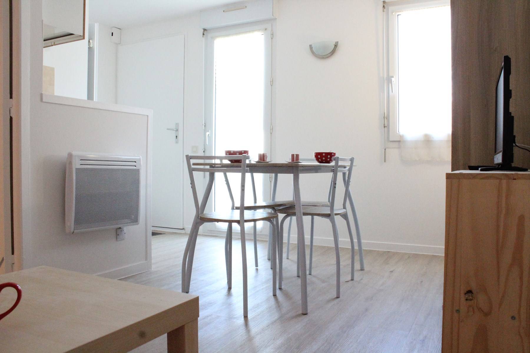 La Rochelle (17) - Les Minimes - Résidence FUN 5 1-room apartment - approx. 19 m² - up to 2 people Holiday apartment in a green setting near the Parc des Pairs for breathtaking walks along the ocean the breath. It is on the ground floor, well fitted out and very functional, in very good condition. It consists of a living room with a 2-seater sofa bed, a fitted kitchen area, a shower room and a WC. The advantages of this seaside rental: Close to the beach, easy lake parking, close to shops and easy access to public transport. The ocean borders the residence a few meters away. Cleaning included. Delivery and return of keys exclusively in La Rochelle (Minimes district).