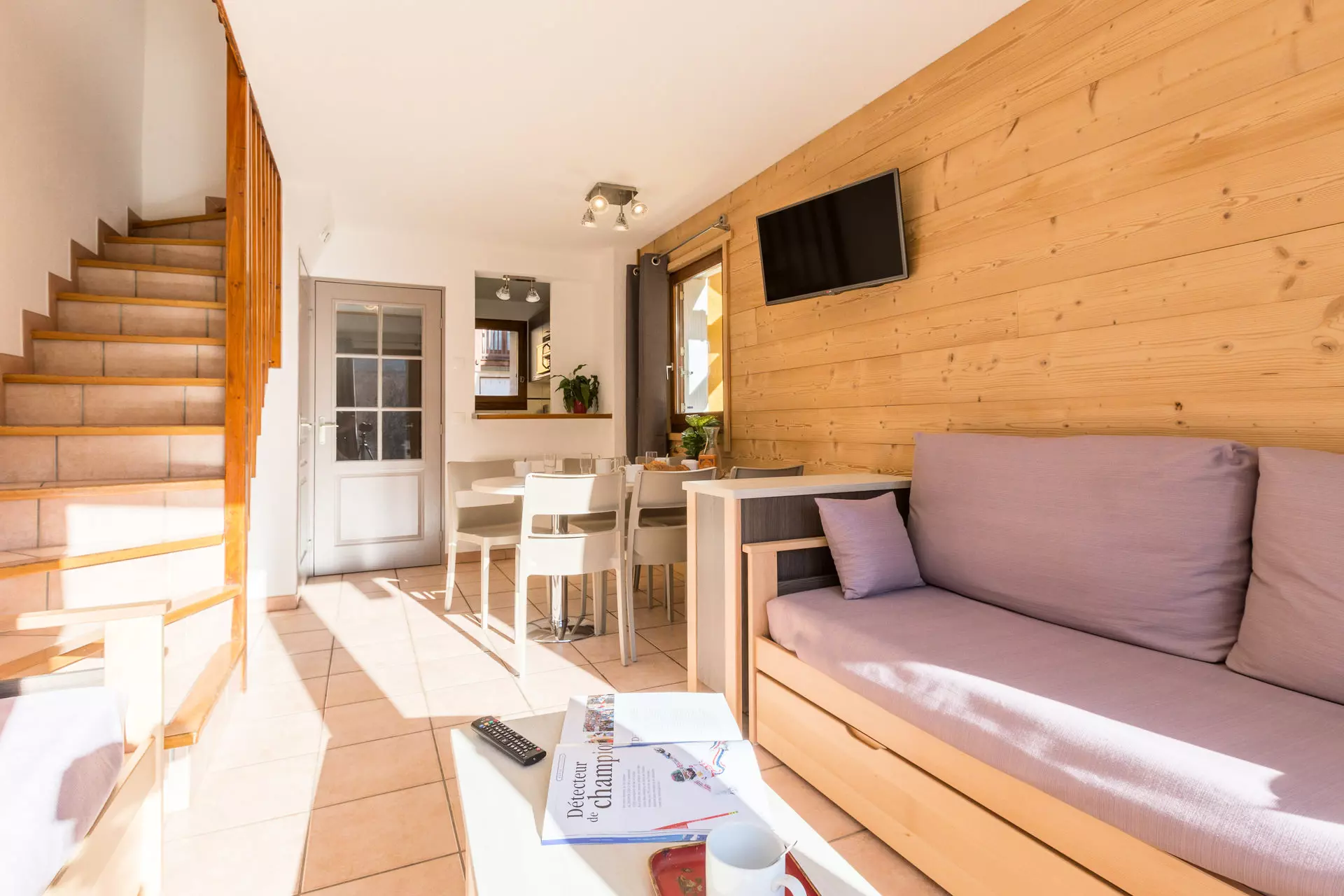 At the foot of the mountains and a few hundred meters from the slopes, this beautiful 45 m² duplex chalet with a south-facing terrace not overlooked for 6 people, is ideal for recharging your batteries after a day on the slopes with family or friends.