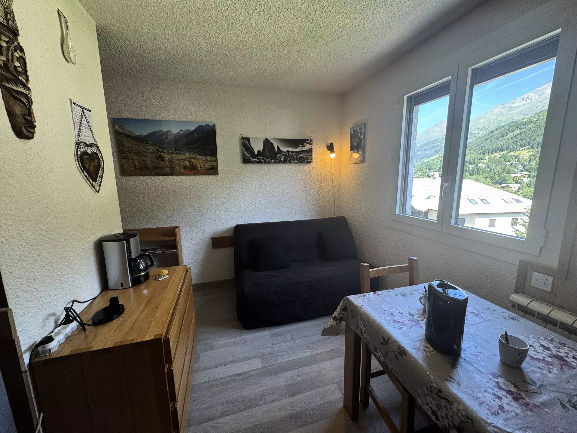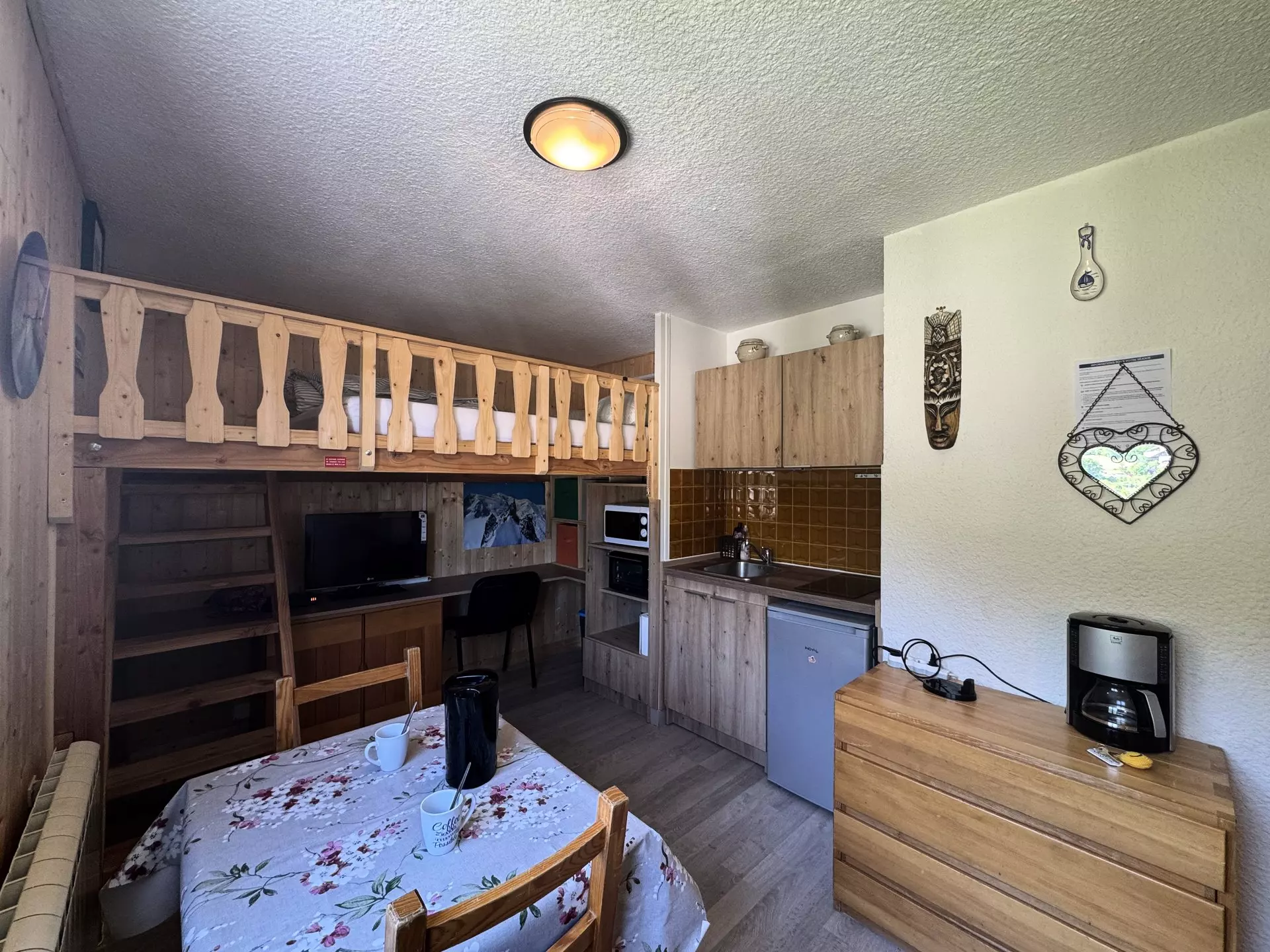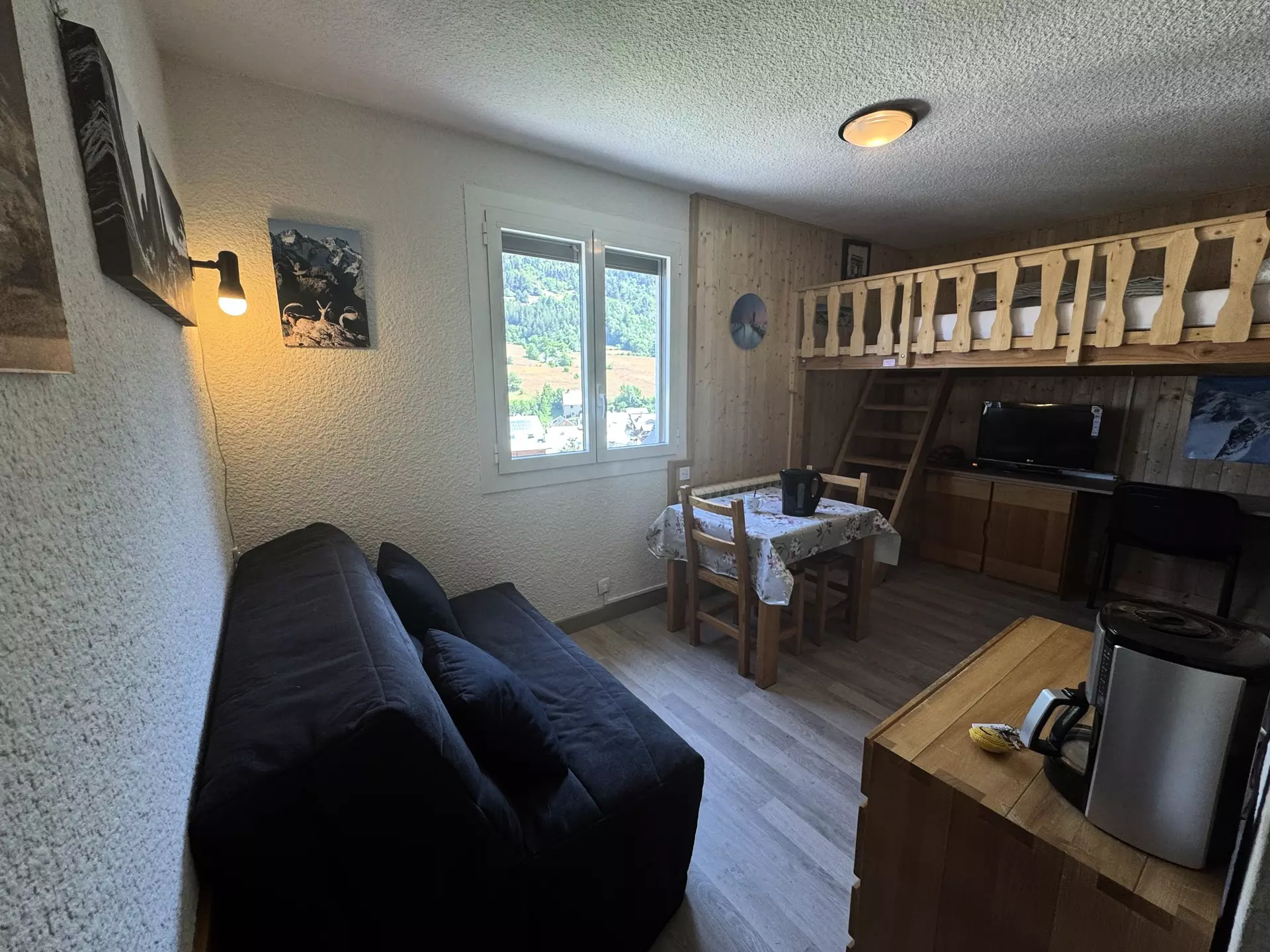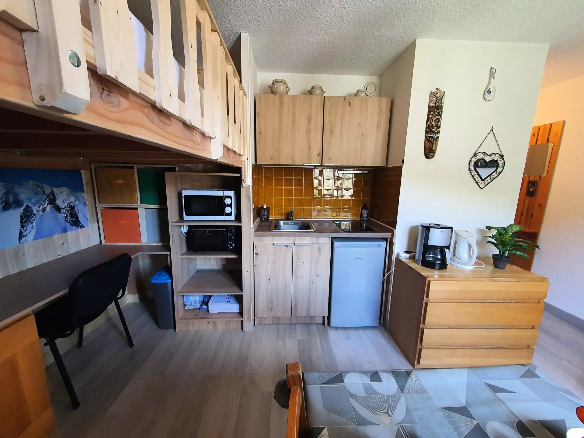 18m2 studio for 2 or 3 people, ideally located at the foot of the slopes in a residence 5 minutes from the shops on foot and with a lovely view of the mountains.