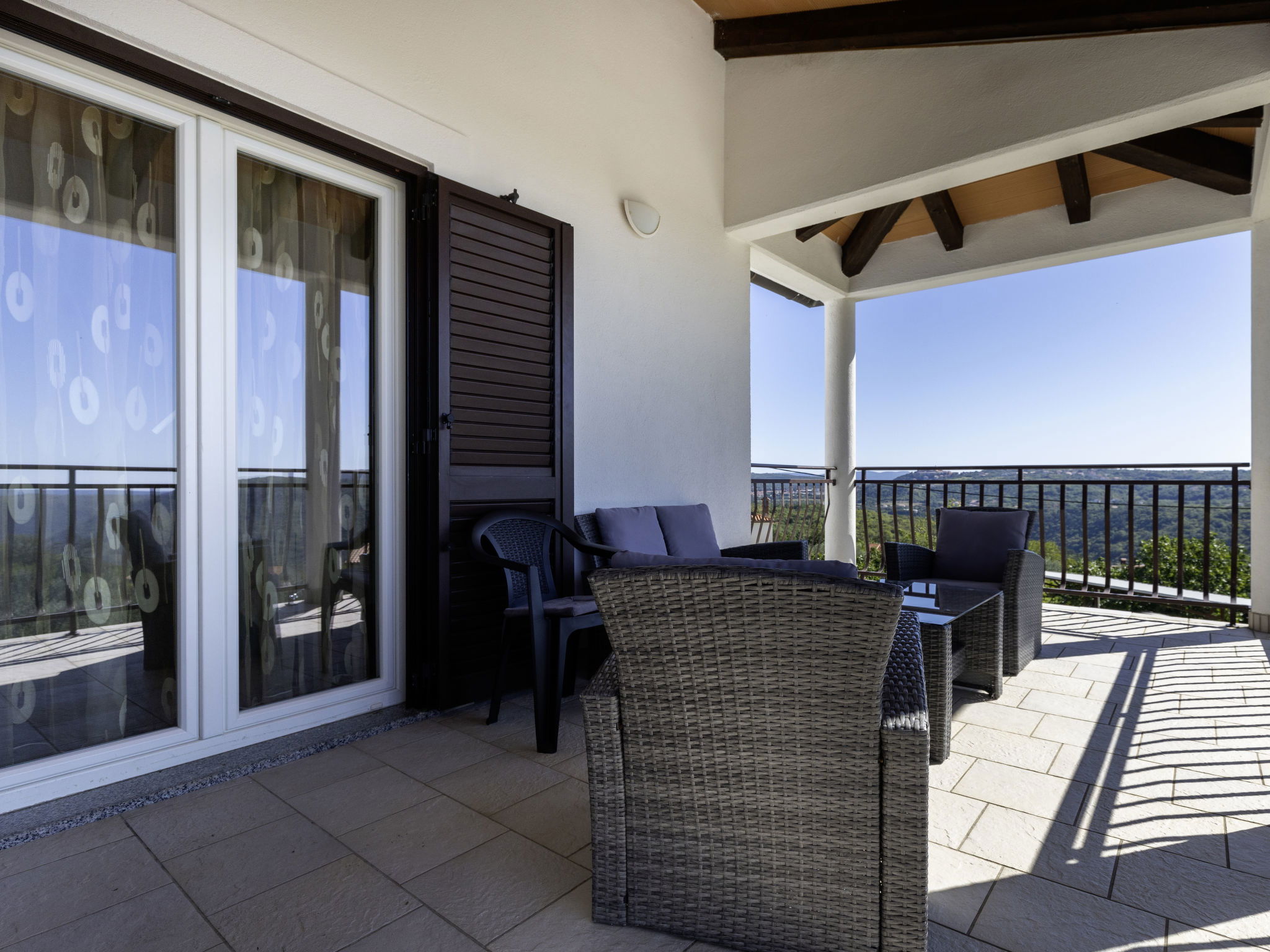 2-family house "Meri". In the hamlet Sveti Bartul 4 km from the centre of Labin, 9 km from the centre of Rabac, in a sunny position, 9 km from the sea, in the countryside. For shared use: property 1'500 m2 with plants and trees. Private: swimming pool angular (8 x 4 m, depth 140 cm, seasonal availability: 01.Apr. - 30.Oct.) with internal staircase. Outdoor shower, barbecue, pool maintenance by the owner/gardener. In the house: internet access. Roofed, parking at the house on the premises. Shop 3 km, supermarket 5 km, restaurant 5 km, bus stop "Labin" 5 km, pebble beach 9 km. The owner does not accept any youth groups. Please note: airfield 50 km from the property.
