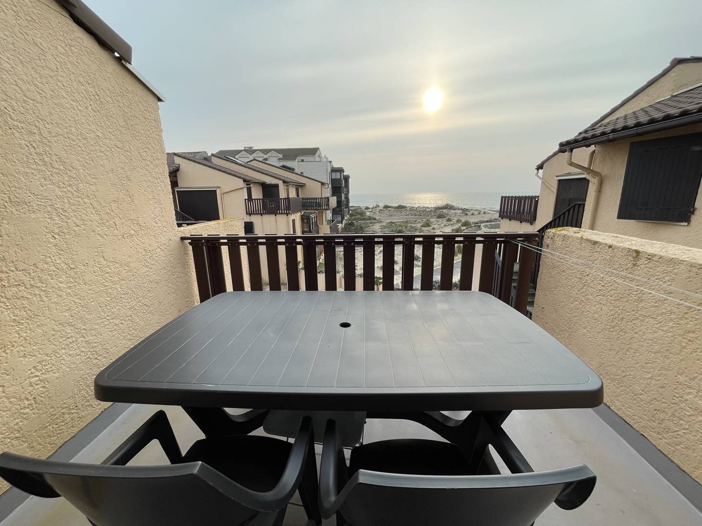 Residence "Les Maisons de l'Océan", south beach area with direct access to the seafront and promenade. Closqe to the shops and the city center of Lacanau océan. Nice apartment, well renovated with sea view from the balcony, for 4 pers maximum. You will appreciate the west facing terrace, equipped with garden furniture for your meals or sun loungers for relaxation. Main room used as lounge / dining room with kitchen area. The beds are distributed between the bedroom (double bed 160cm) and the mezzanine (twin beds 2x90cm). The sanitary facilities include a bath, sink and toilet. A private outdoor parking space is reserved at the foot of the building. 100m from the beach, 500 m from shoppine, 3 km from golf of Lacanau and 6km from the lake of Lacanau. REF 01405M - Linen not provided - You can book it on request.