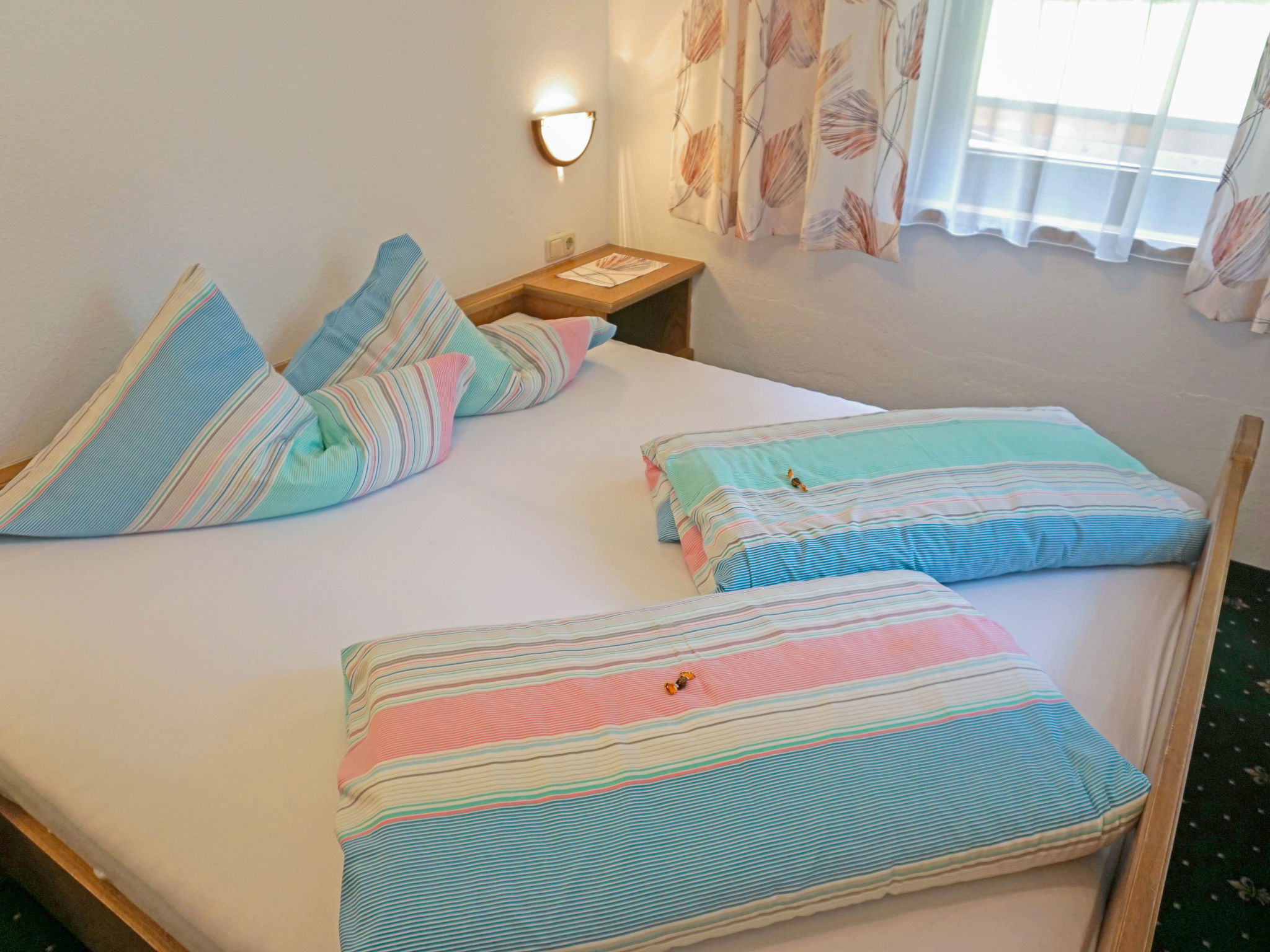 Child friendly, comfortable apartment block "Falkner", renovated. 100 m from the centre of Längenfeld, in a central, sunny position. For shared use: indoor pool heated (5 x 6 m, pool opening hours: 10:00-19:30). In the house: lounge, sauna (extra). Playroom, lift, storage room for bicycles, sun terrace, storage room for skis, central heating system. Parking at the house. Grocery 200 m, restaurant 100 m, bus stop "Längenfeld Abzw Aquadome" 220 m, railway station "Ötztal Bahnhof" 24.3 km, outdoor swimming pool 700 m. Tennis 700 m, cable car 13 km, ski bus stop 100 m, ski school 13 km, cross country ski track 200 m, ice rink 1 km. Nearby attractions: Outdoor Park 26 km. Ski resort Soelden Oetztal-Arena, 13 km, can be reached by free ski bus. The natural thermal baths (Aqua Dome), just 400 m away. Additionally in the wellness area: herbal sauna, infrared cabin, experience-showers, Kneipp basin and relaxation room. For the little ones: children’s play area, playroom and climbing room. Please note: For short stays (less than 7 days) there is an extra cost of € 30.-.