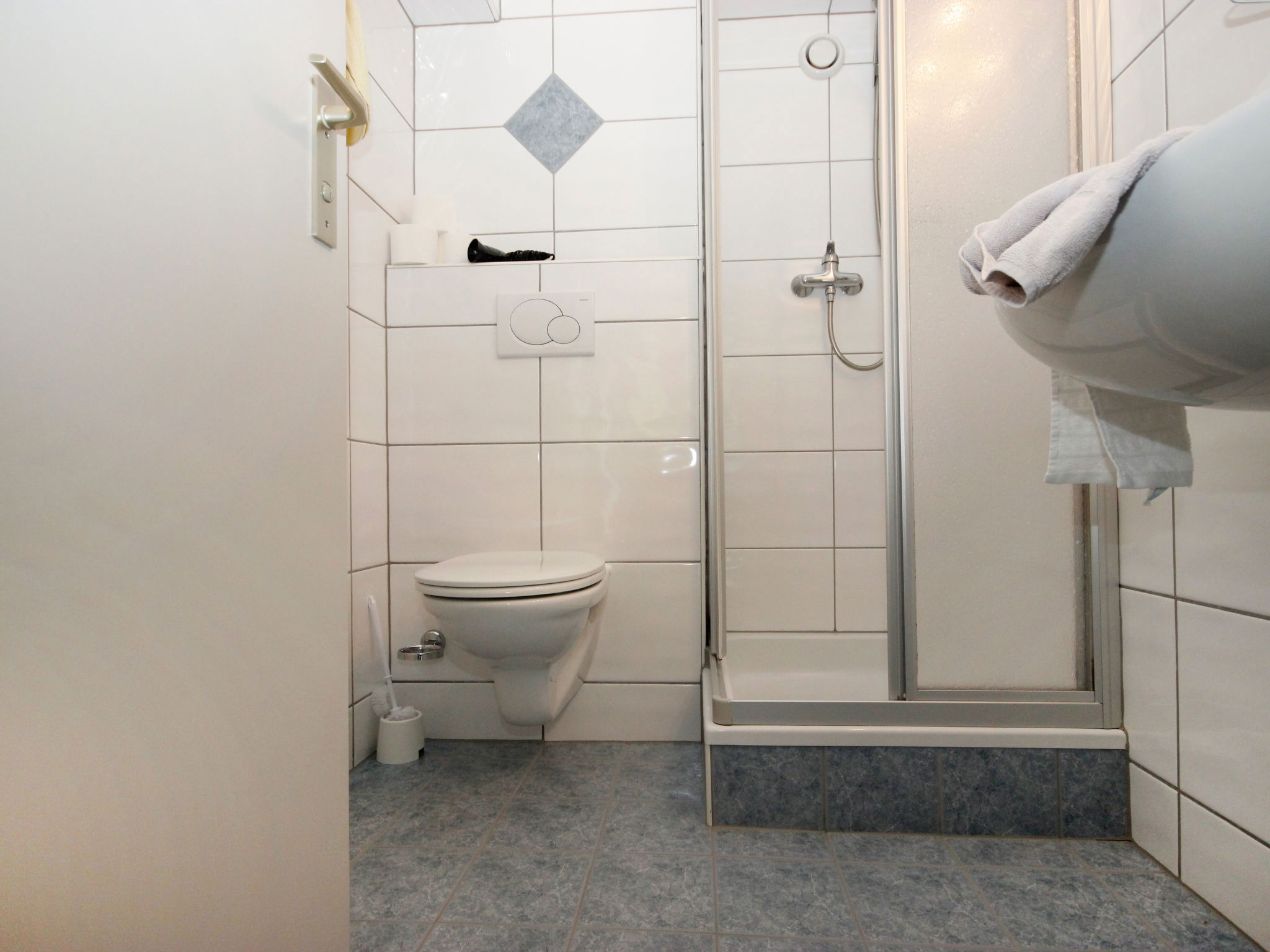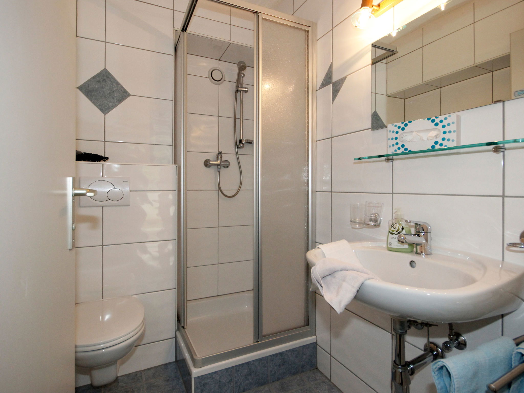 1-room apartment 24 m2, north facing position. Modern and cosy furnishings: 1 double bedroom. Kitchen-/living room (2 hot plates, microwave) with dining table and satellite TV. Shower/WC. Sitting area. Facilities: telephone, safe, hair dryer. Internet (WiFi, free). Please note: maximum 1 pet/ dog allowed. Private entrance, smoke alarm.