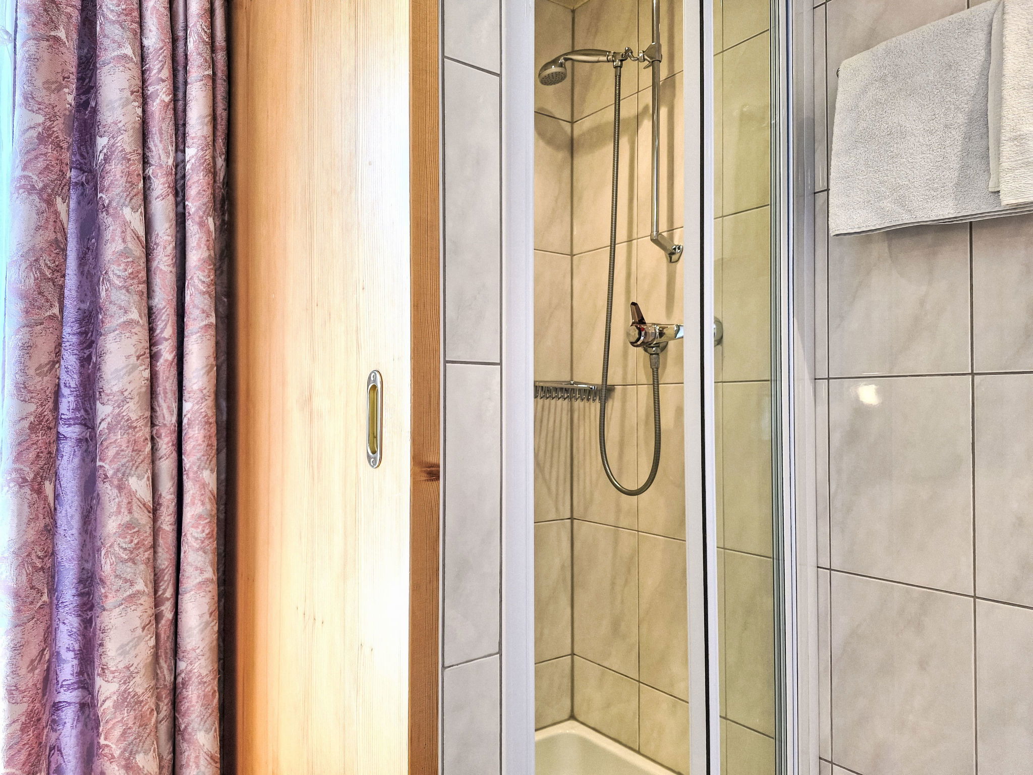 "Wiesenhof", 4-room apartment 90 m2 on 2 levels. Renovated in 2015, practical and cosy furnishings: living room with satellite TV and tiled stove. Upper floor: 2 rooms, each room with 1 double bed, hand-basin and shower/WC. Exit to the balcony. 1 room with 1 double bed and shower/WC. Exit to the balcony. Kitchen (oven, dishwasher, 4 ceramic glass hob hotplates, kettle, microwave, electric coffee machine) with dining table. Oil heating. Parquet floors. The living room is a farmhouse lounge. Balcony. Balcony furniture. Panoramic view of Gamskogel / Hauerkogel. Facilities: Internet (WiFi, free). Please note: fridge without freezer. Maximum 1 pet/ dog allowed. Smoke alarm. No internal connecting door between the floors. The apartment is not self-contained. Access to each room from the hallway.