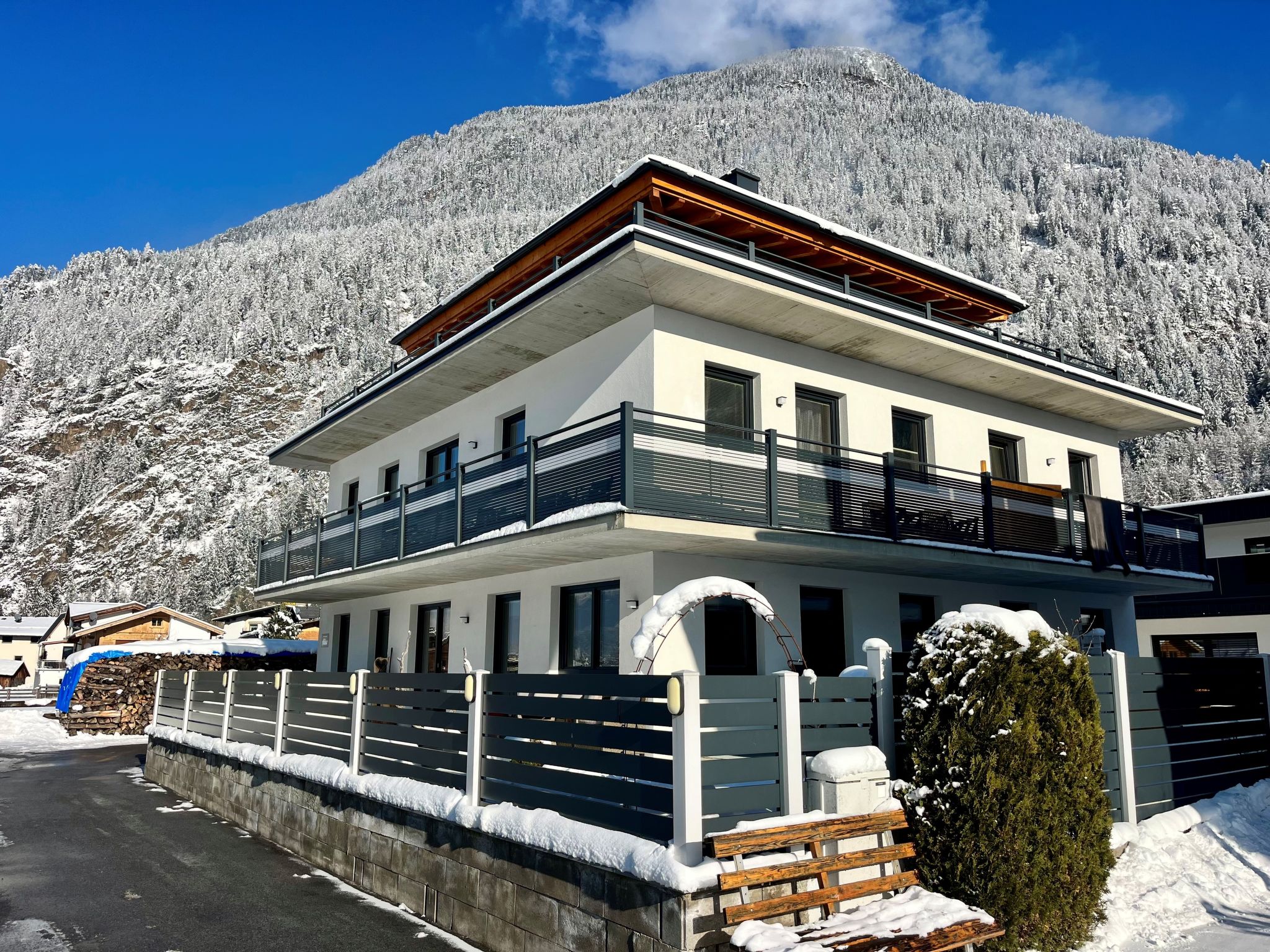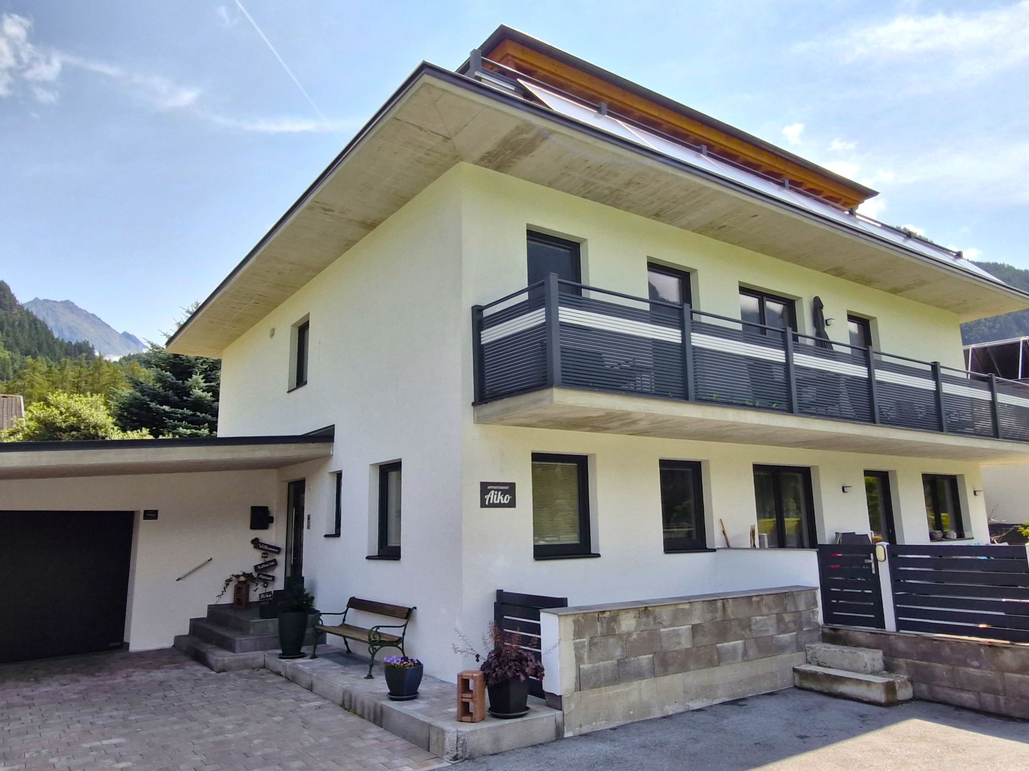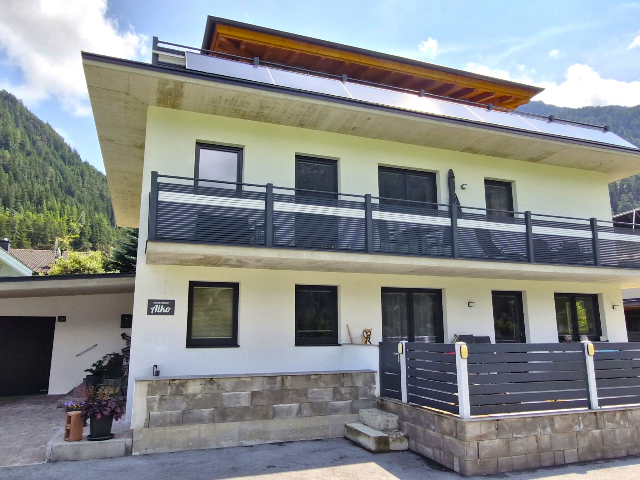 2-family house "Aiko", 2 storeys, built in 2018. On the outskirts, 450 m from the centre of Längenfeld, in a quiet, sunny position. In the house: storage room for skis, washing machine, ski boot dryer. Bread roll service. Parking at the house. Grocery 500 m, supermarket 1 km, bakery 300 m, café 450 m, 5 minute walk to the centre, bus stop 300 m. Well-known ski regions can easily be reached: Sölden Giggijoch 14 km, Gries im Sulztal 5 km, Obergurgl 25 km. Well-known lakes can easily be reached: Piburger See 21 km. Hiking paths: Sölden Gaislachkogelbahn 16 km, Vent 30 km.