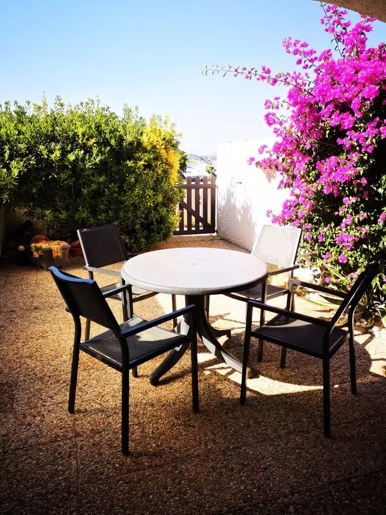 A tree-lined terrace will allow you to take your meals outside, so you can fully enjoy a relaxing setting and a view of the marina.