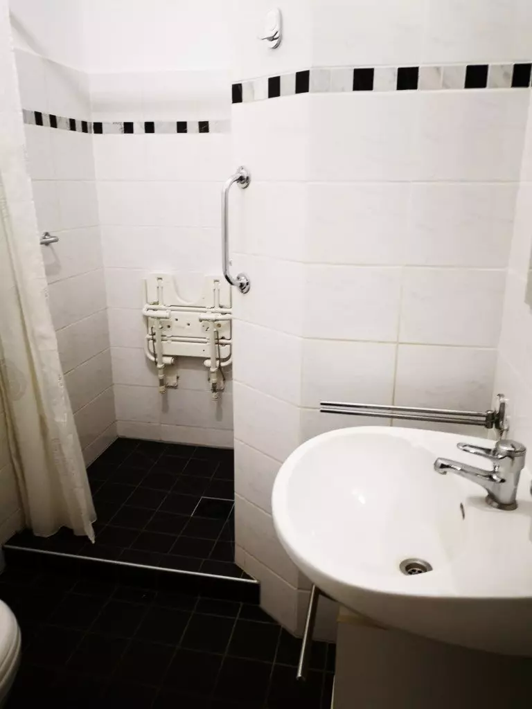The bathroom is perfectly adapted for people with reduced mobility: removable seat integrated into the shower.