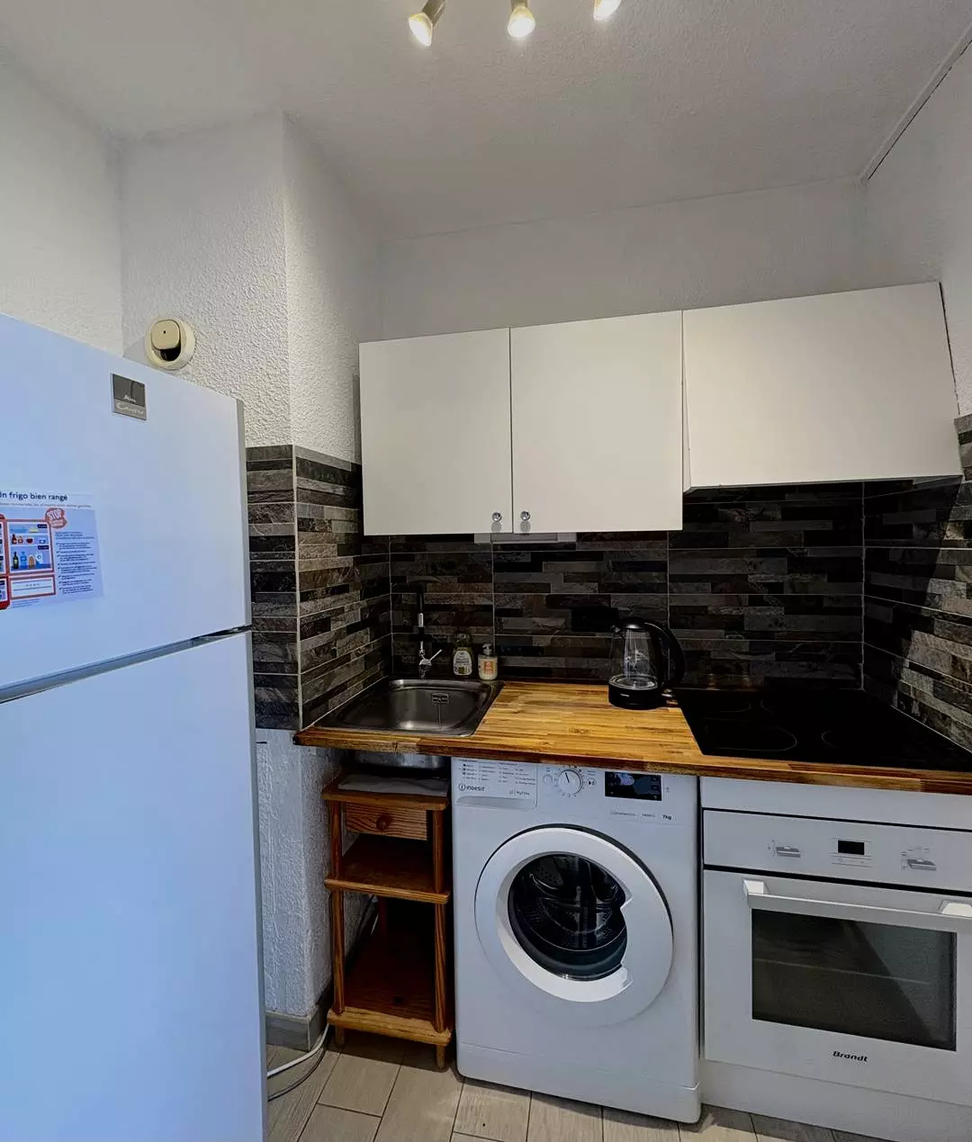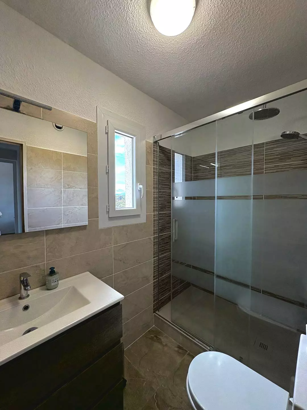 Upstairs, a bedroom with 2 single beds, shower room with WC, washing machine; 8m² terrace equipped with garden furniture, private parking, elevator.