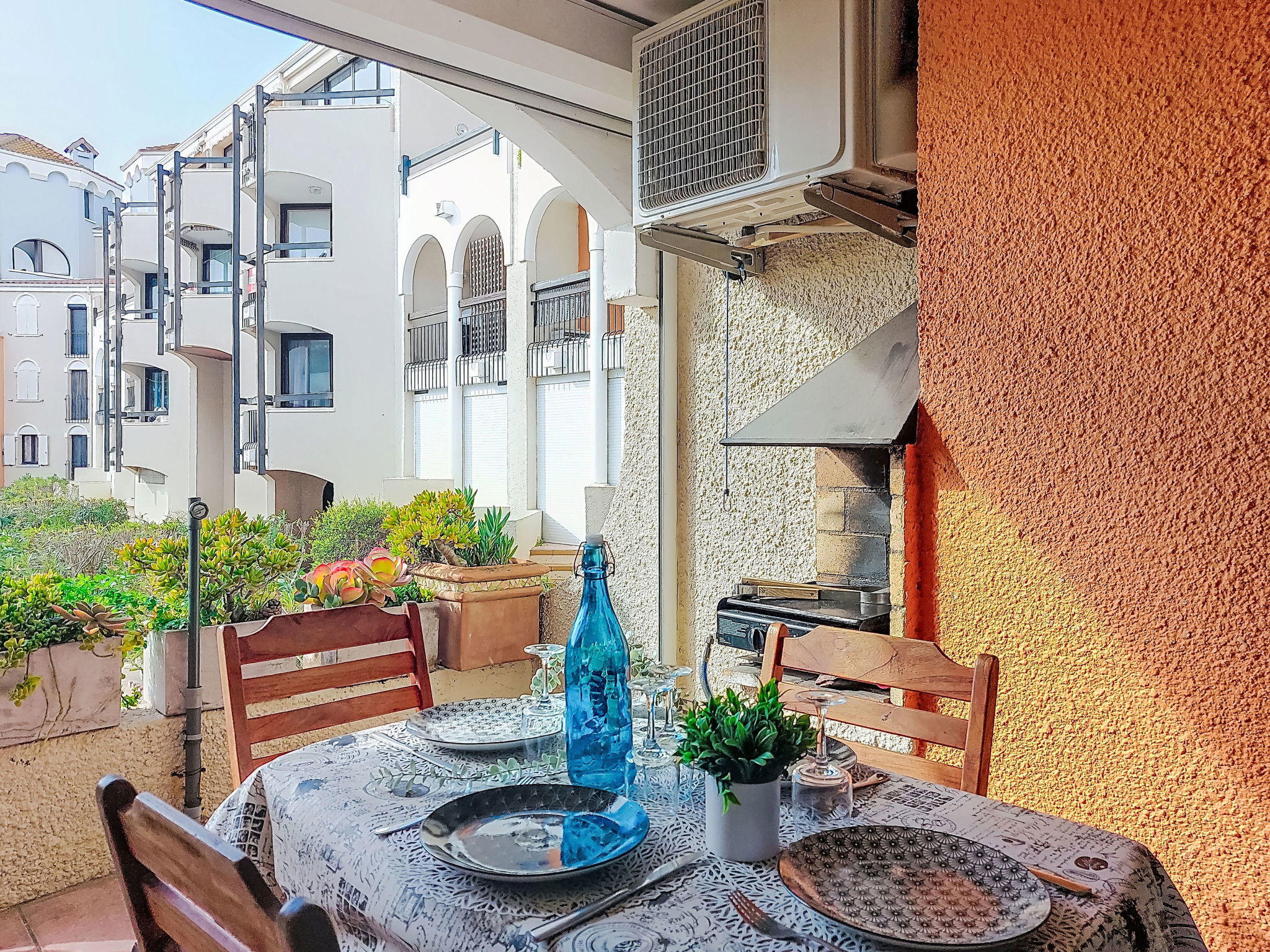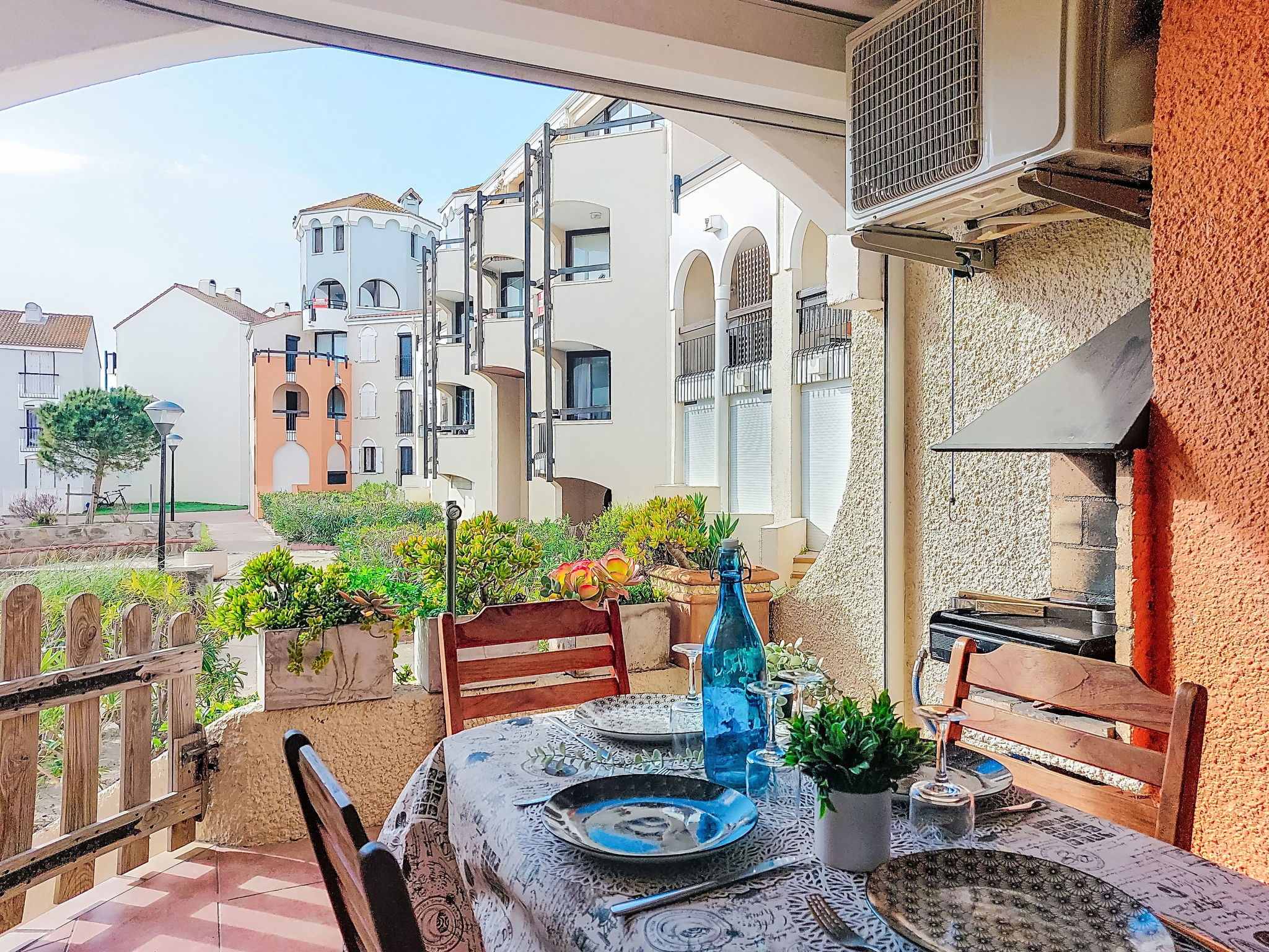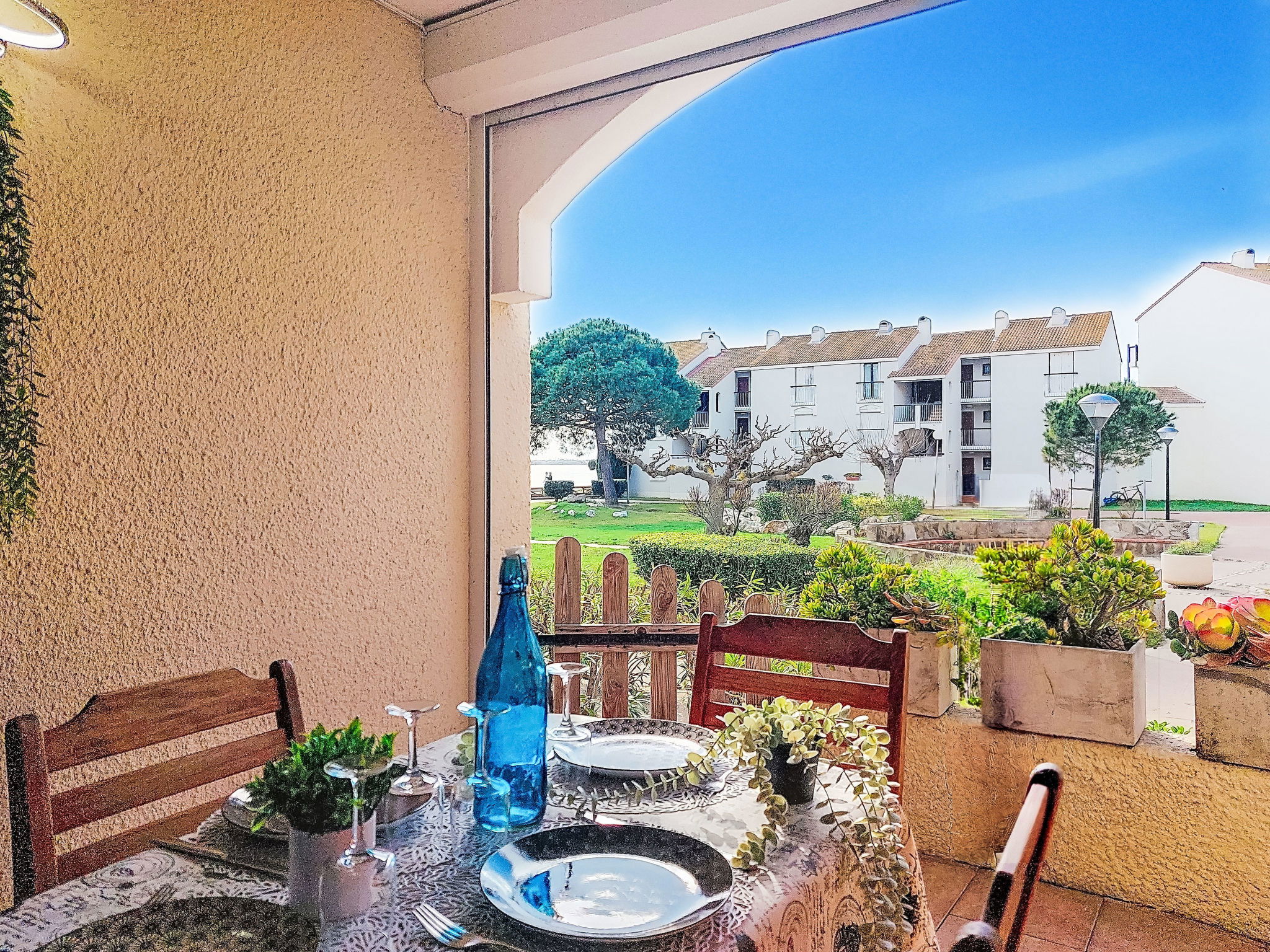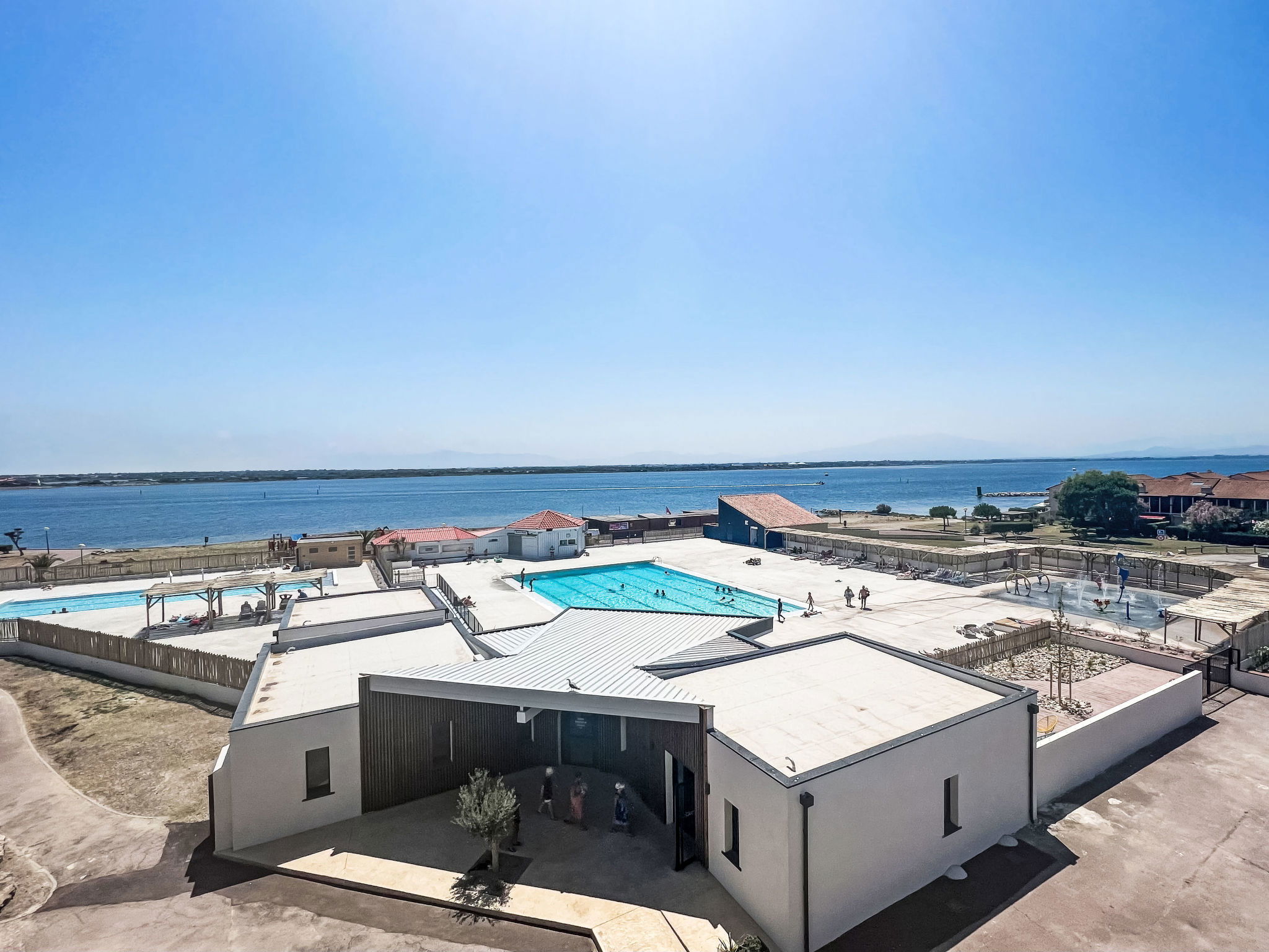 La Coudalère 5 km from Barcarès centre: Residence "Dominica", 3 storeys. 2.5 km from the sea, 50 m from the lake, 2.5 km from the beach. For shared use: beautiful garden to relax, 2 swimming pools heated (10 x 15 m, seasonal availability: 15.Apr. - 15.Oct.). Children's pool, tennis (extra), basketball (extra), children's playground (slide), public parking. Shop, grocery 400 m, supermarket 6 km, restaurant, bar, bakery, café 400 m, bus stop "La coudalère" 1 km, railway station "Perpignan" 22 km, sandy beach 2.5 km. Sailing school 400 m, minigolf 1.3 km, riding stable 12 km. Nearby attractions: Réserve Africaine de Sigean 41 km, Aqualand Port Leucate 7 km, parcours aventure 7 km, cinéma 5 km, Téleski nautique site des dosses 5 km, Spot de windsurf 400 m. Well-known lakes can easily be reached: Lac de villeneuve de la Raho 34 km. Hiking paths: Sentier du guetteur 8 km, la forteresse de salses 15 km, Sentier du littoral Collioure 40 km. Please note: car recommended, no lift. Entertainment in the season. The keys‘ handover takes place by the agency Barcares 3 km. The apartment is located in a zone with limited traffic. The photograph shows a typical example. Additional accommodations can be booked. As part of the water restriction measures linked to the drought in some of our departments, please note that the rental swimming pool may be closed by prefectural decree.