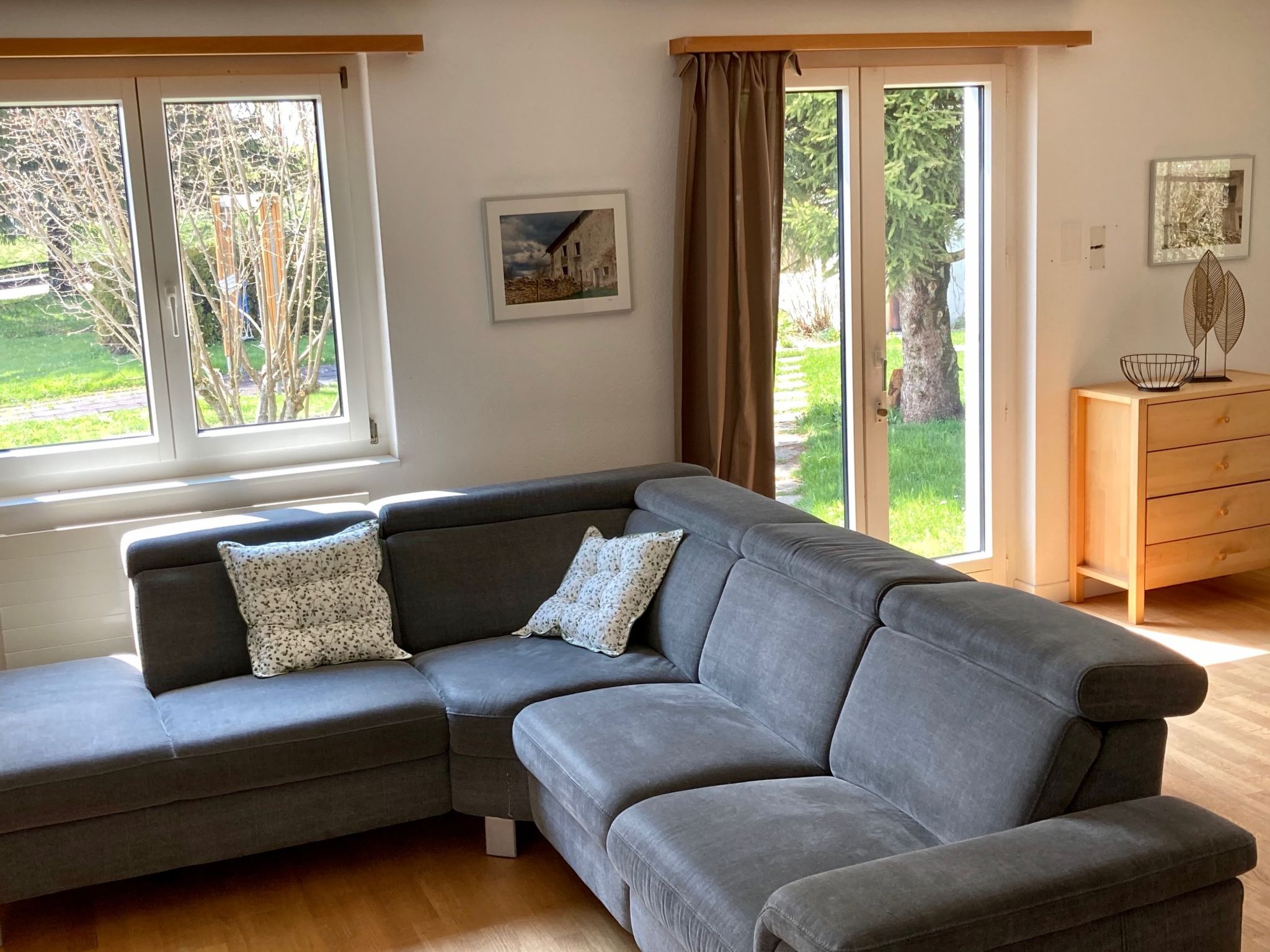 150 m2. 1 pet/ dog allowed. More information by the provider: In the heart of the beautiful Franches-Montagnes region, in the small village of Le Bémont, right next to Saignelégier, this pleasant, quiet and well-equipped vacation home is ideal for families and groups. The house is located a few steps from the train stop. It offers three comfortable bedrooms, a large and bright living-dining room with direct access to the grounds. The house also has a small room, offering access to the terrace and used as a playroom. The entrance hall is spacious and convenient for storing bicycles, strollers, skis or other items. Accommodation for up to 11 persons. One room with six beds; one room with one double bed or two single beds; and one room with three single beds or one double bed and one single bed. Can be adapted at guests' request. Outside, private garden with terrace. Swings, garden furniture and grill available. Thanks to the Jura-Pass, you can use free public transport and enjoy discounts on many activities in the region!