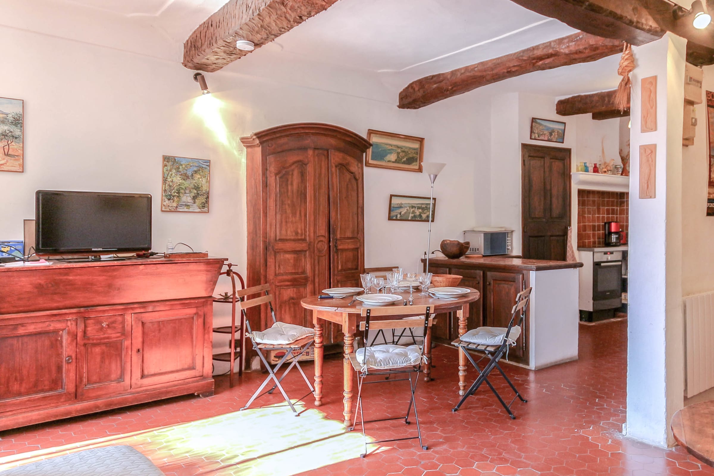 • LARGE LIVING ROOM: Large living area with convertible sofa bed (140x190), A/C, dining table, flat-screen TV opening onto a beautiful terrace overlooking the greenery and church bell tower.
