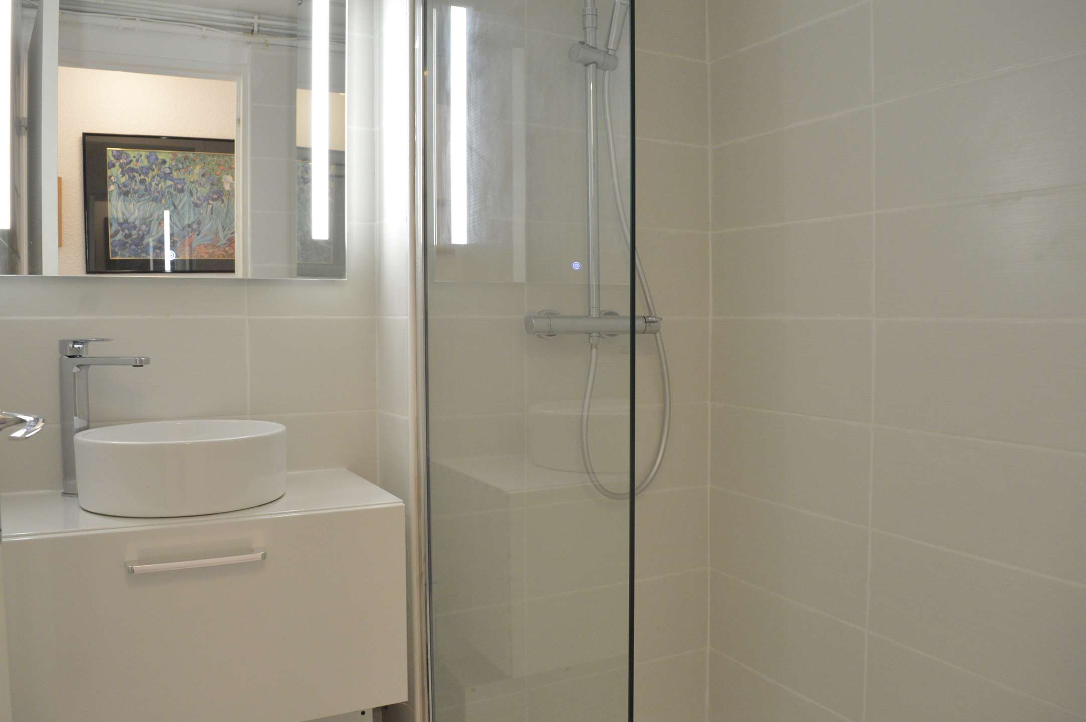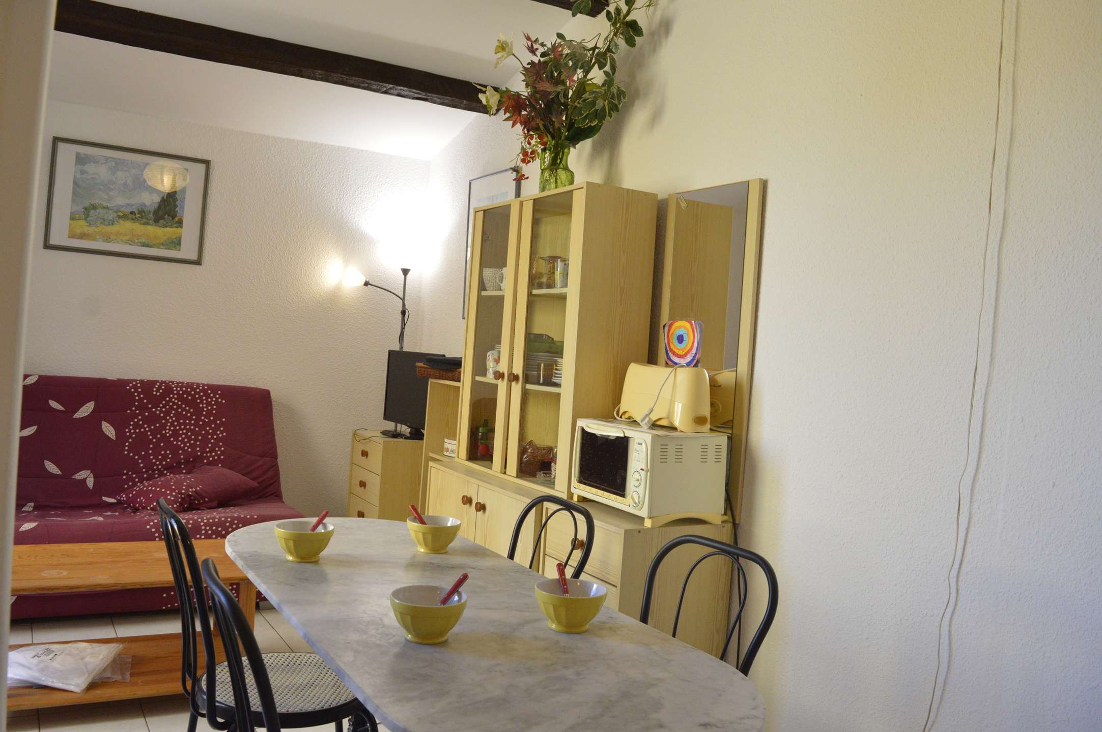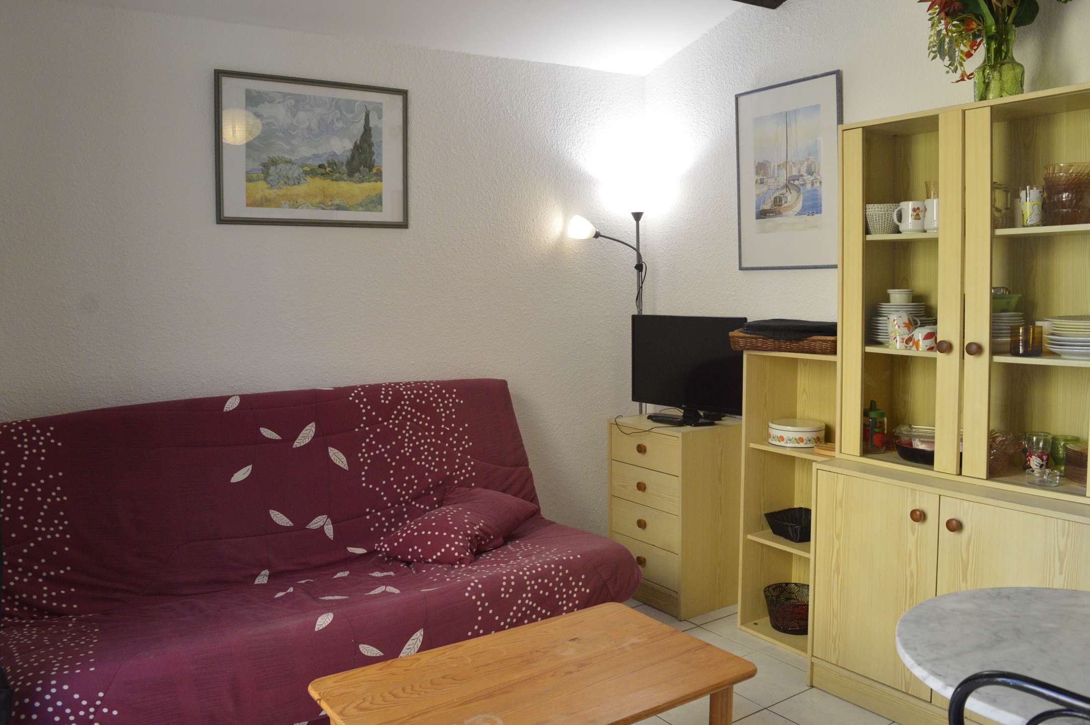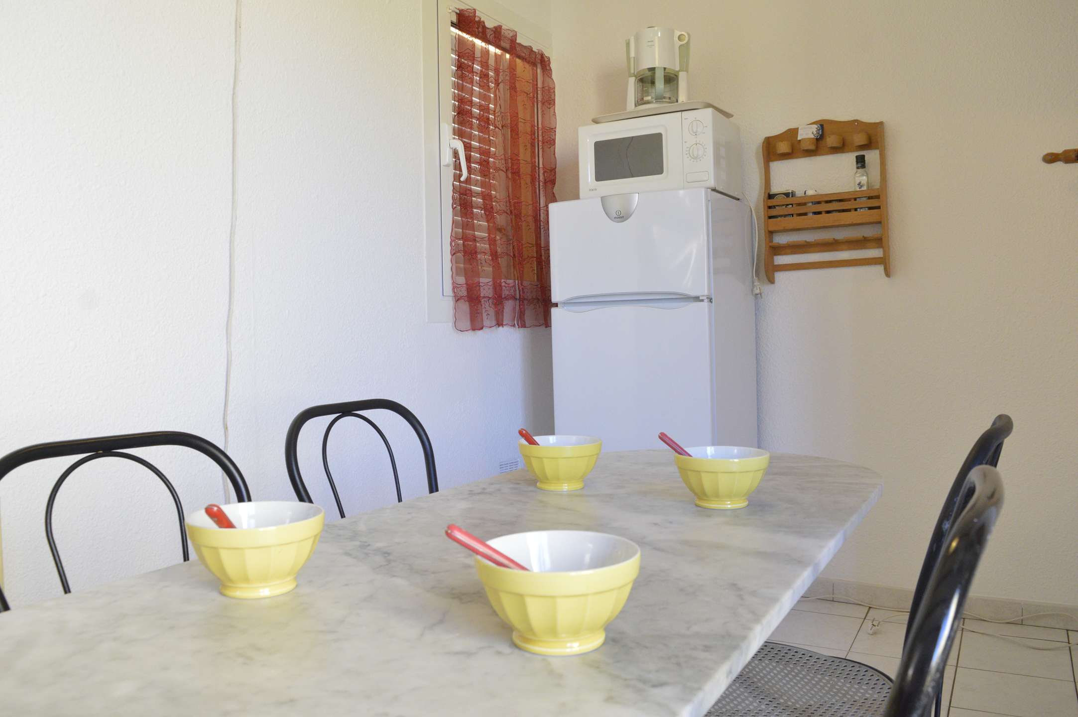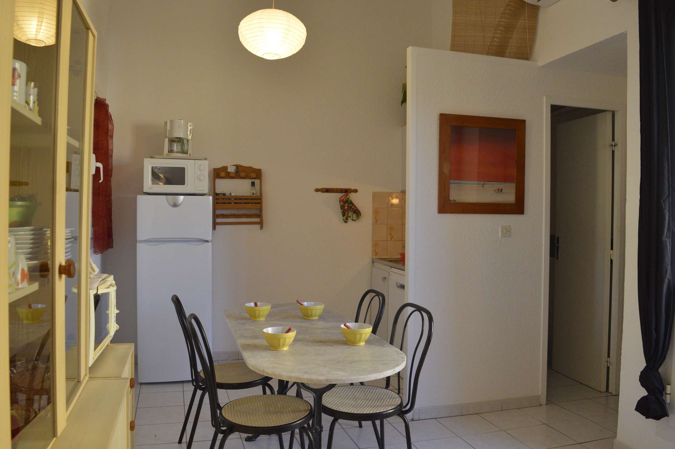 Plage de la Roquille district - Residence Les Quatre Soleils 3-room apartment/cabin - approximately 50 m² - up to 7 people. Located 450 m from the beach of La Roquille, the residence is made up of a set of small buildings on one floor, quietly surrounded by green spaces. This holiday apartment located on the 1st floor includes a living room with a 2-seater sofa bed, flat screen TV and a fitted kitchen area. It has two bedrooms with a double bed, a cabin with a single bed, a bathroom and separate WC. The accommodation is air-conditioned. The plus of this rental by the sea: private parking, terrace of about 4 m² with garden furniture on the living room side, a second terrace on the side of the master bedroom. Painting completely redone in 2021. Cleaning with disinfection included.