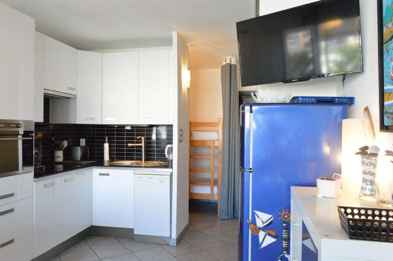 Cet appartement de vacances, situé au 1er étage , comprend un séjour avec un canapé convertible 2 places et télévision avec lecteur DVD, et décodeur TNT, une alcôve avec 2 lits superposés , un coin cuisine équipé, une salle d'eau avec douche et WC