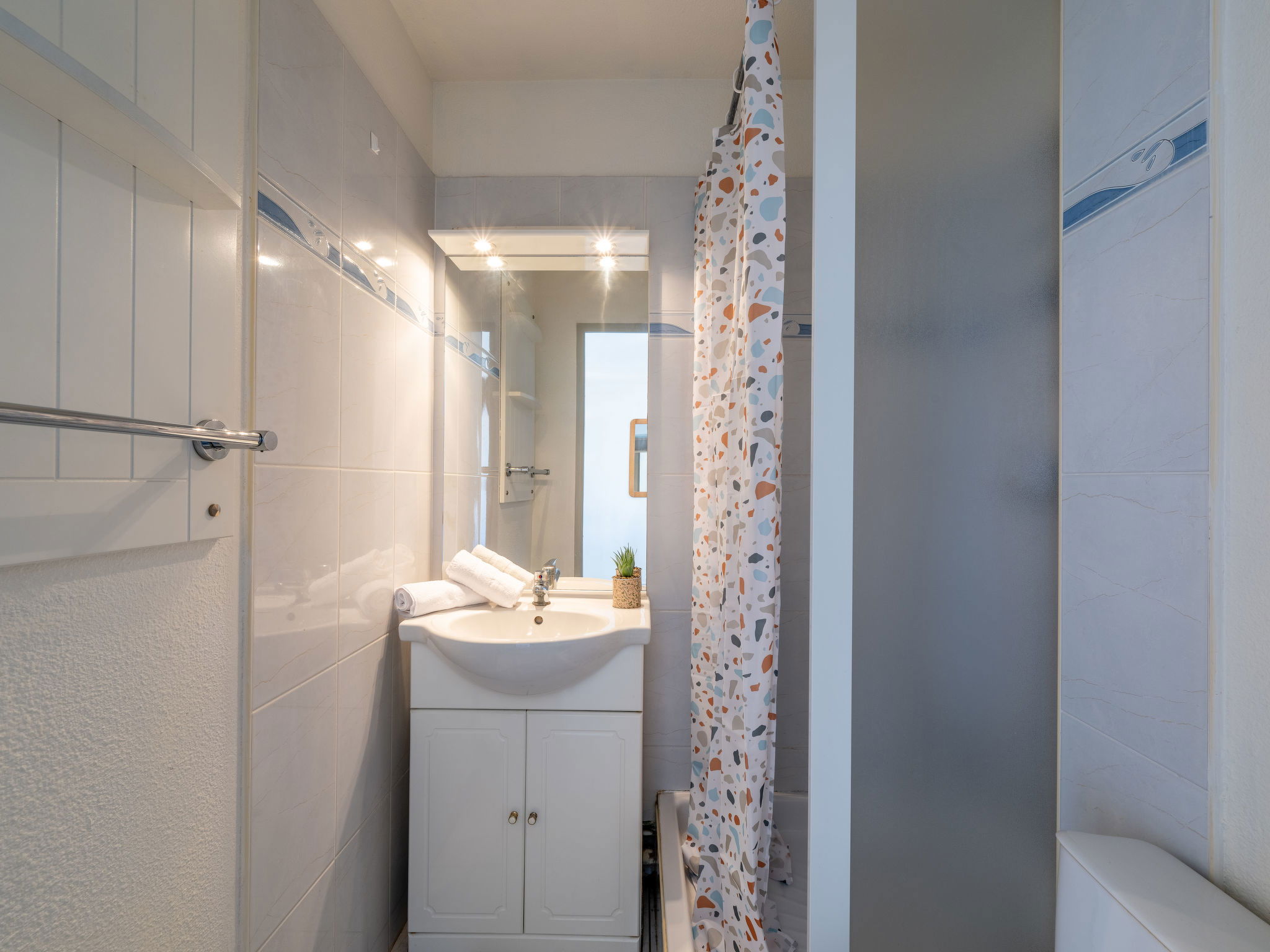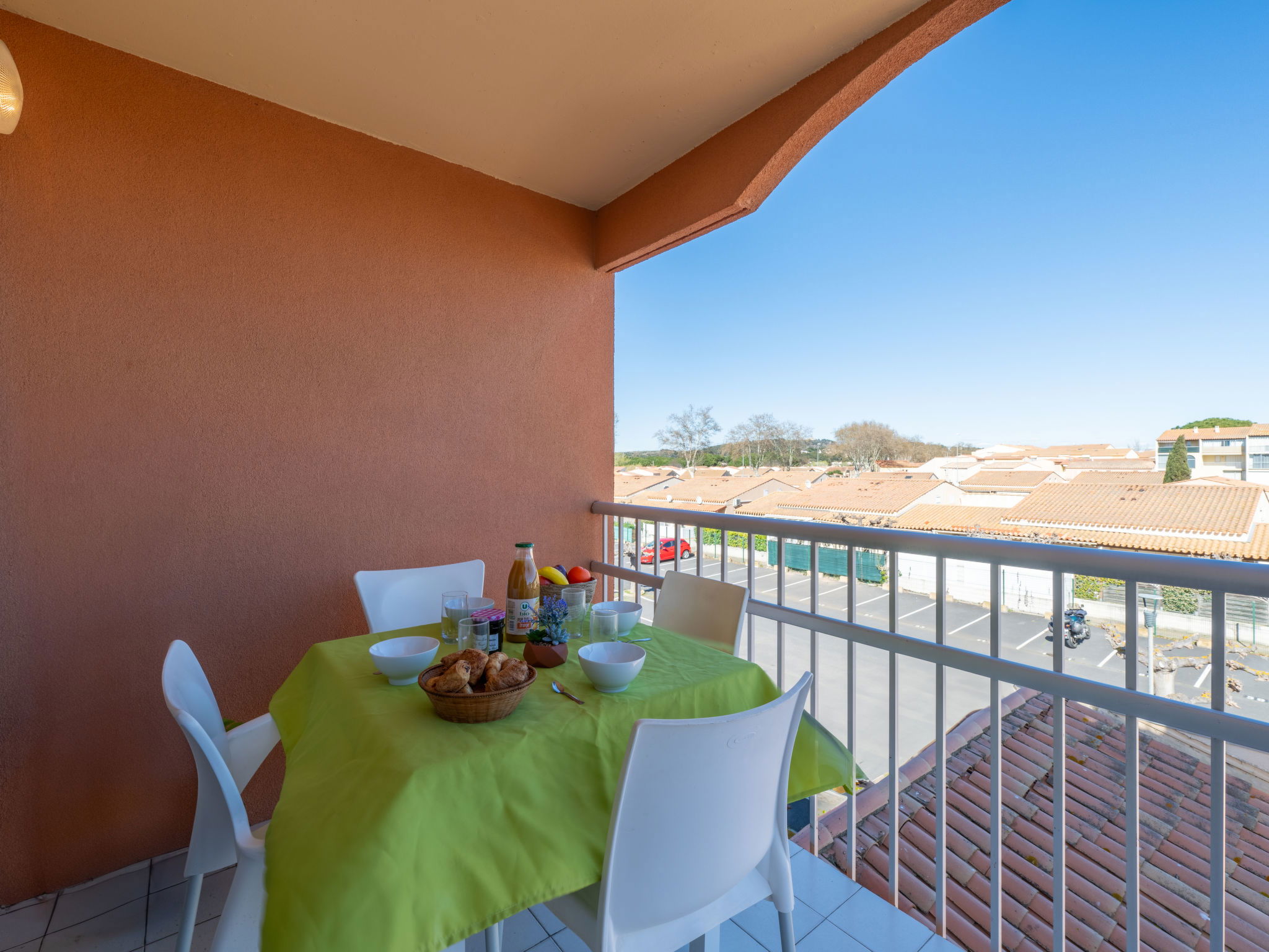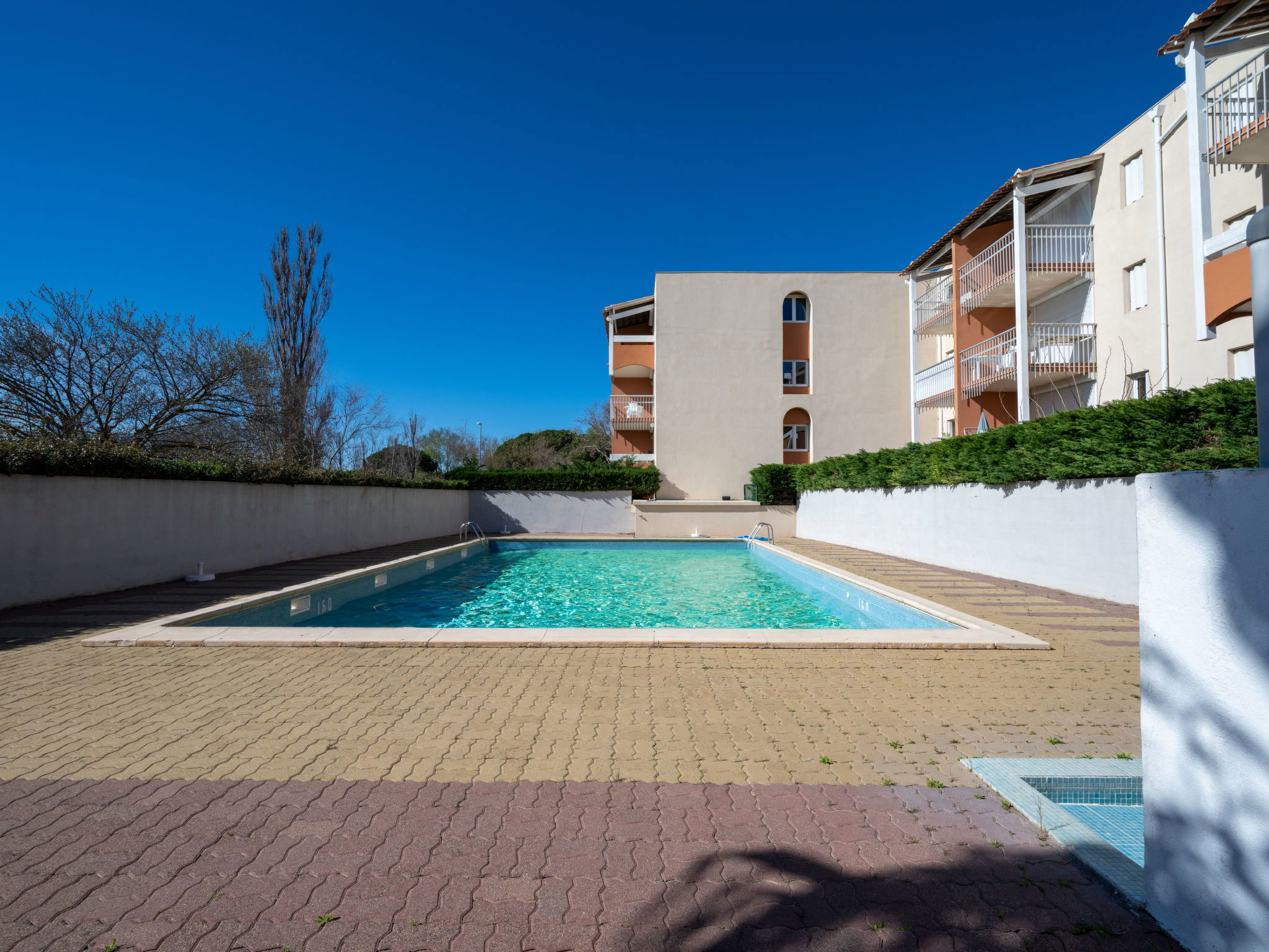 Small residence "Primavera", 4 storeys. In the district of Rochelongue, in a sunny position, 200 m from the sea, 200 m from the beach. For shared use: swimming pool (5 x 10 m, depth 120 - 150 cm, seasonal availability: 03.May. - 28.Sep.) with internal staircase. In the complex: parking. Shop, supermarket, restaurant 200 m, bakery 700 m, bus stop "Pacifique" 150 m, sandy beach "Rochelongue", 1 km, outdoor swimming pool 2.4 km. Sports harbour 3 km, golf course (27 hole) 800 m, tennis 3 km, riding stable 1.7 km. Nearby attractions: Aqualand 500 m, Ile des Loisirs 1.5 km, Casino 2 km, Grande Roue 2.1 km, Musée de l'Ephèbe 3.4 km.