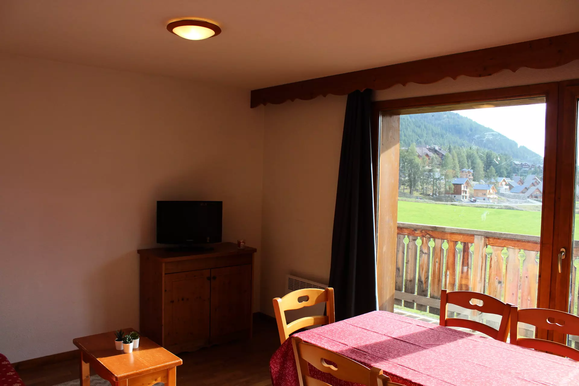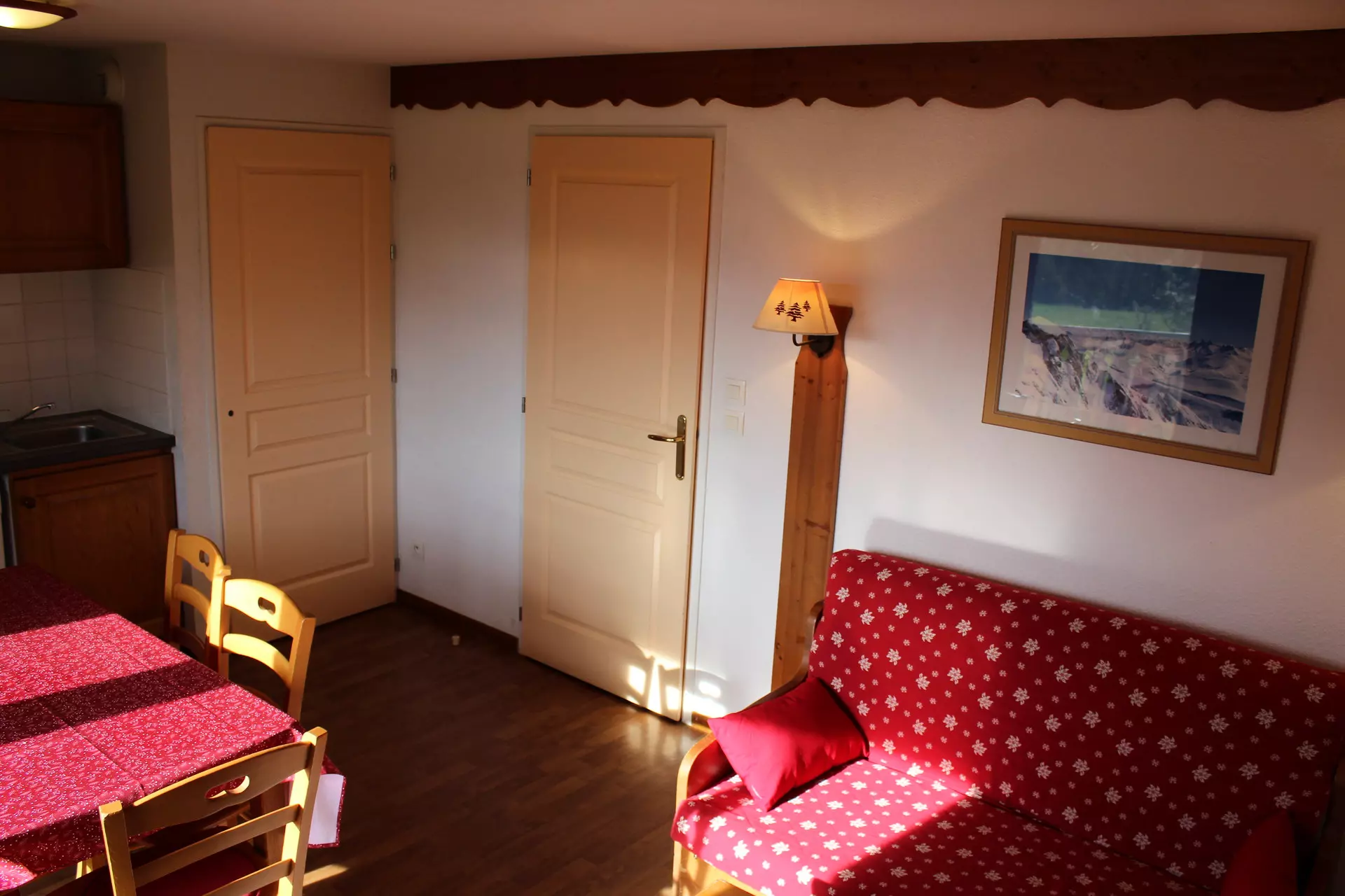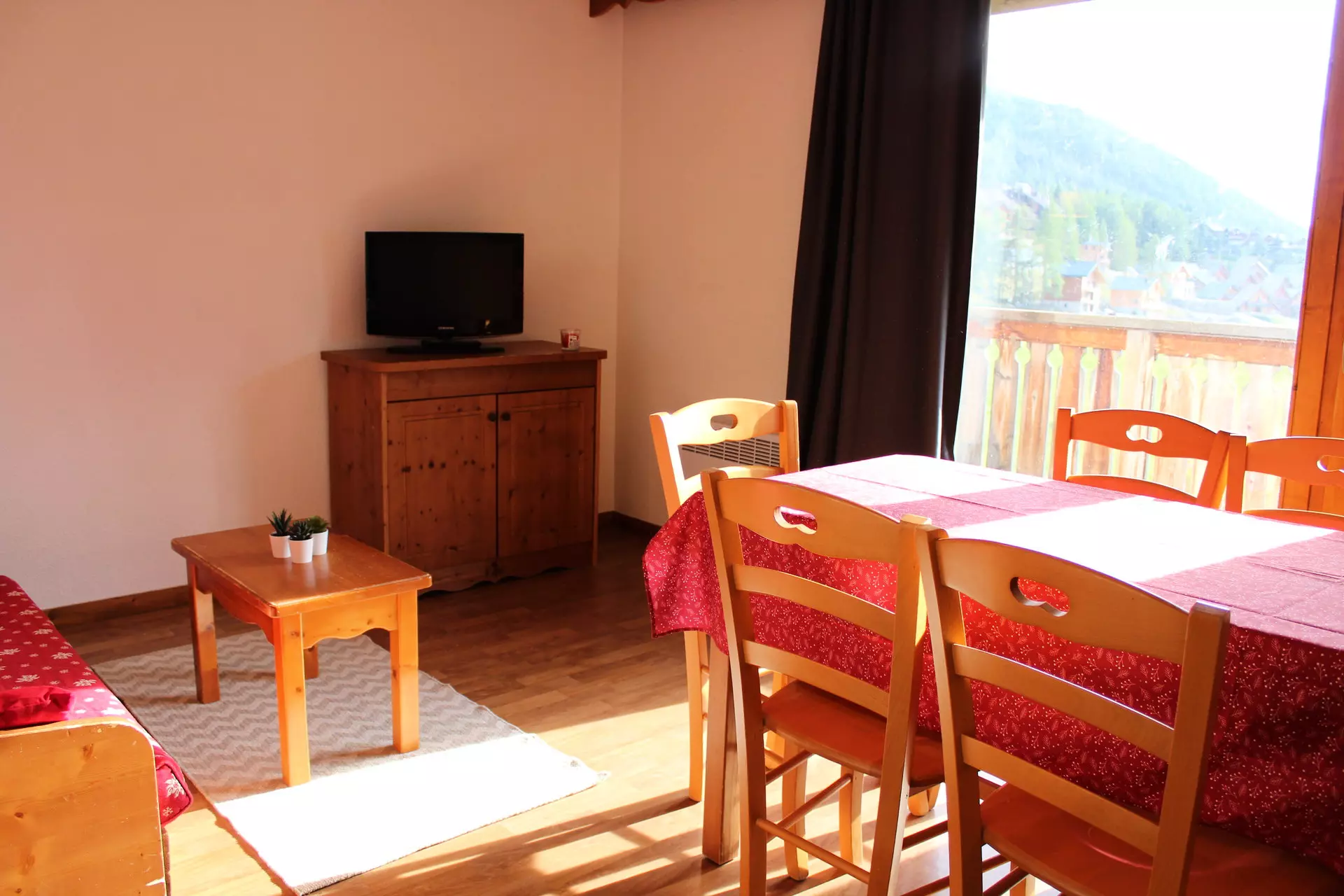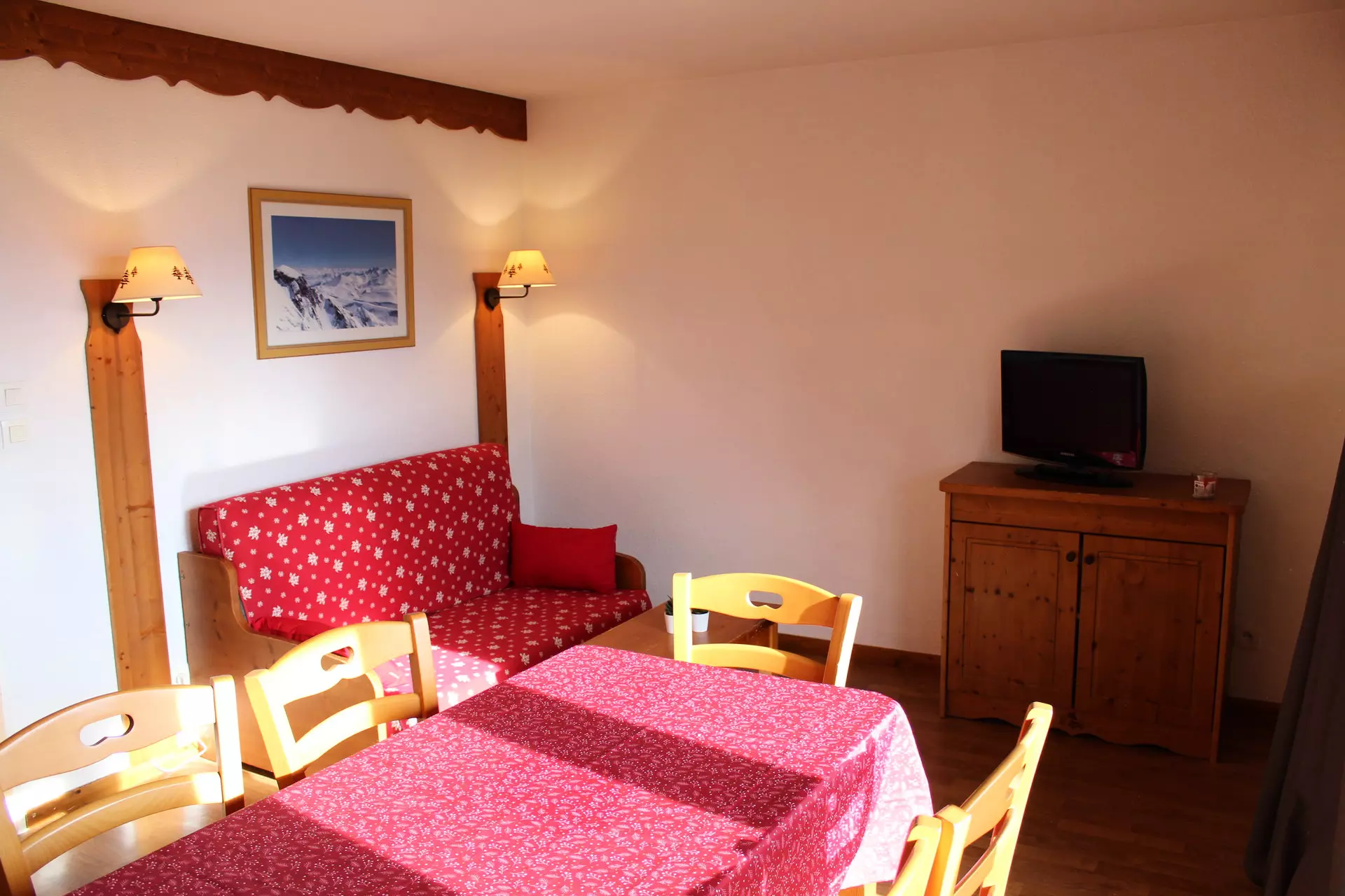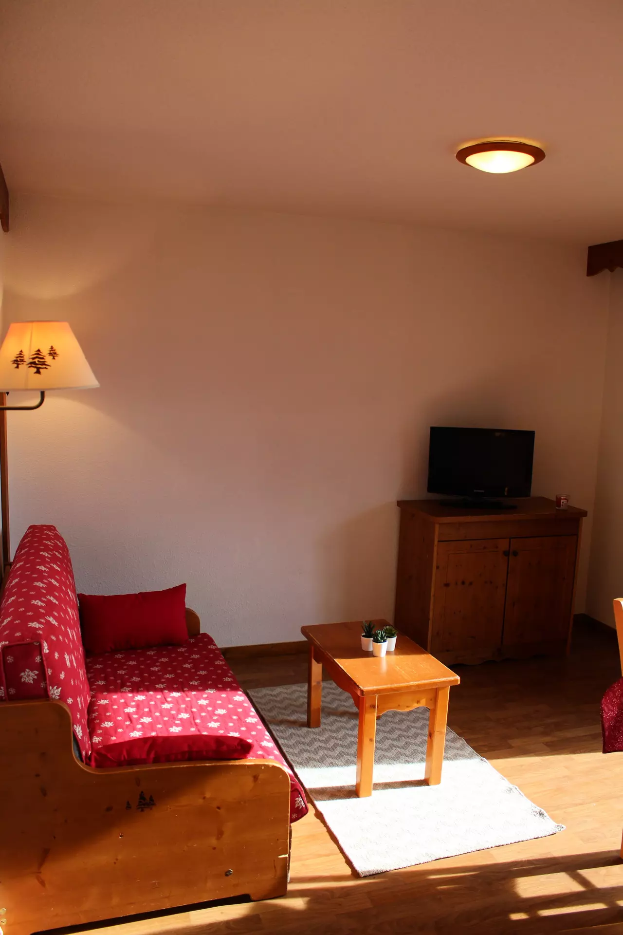 Living room with sofa bed. 1 bedroom with double bed. 1 cabin with bunk bed. Television included.