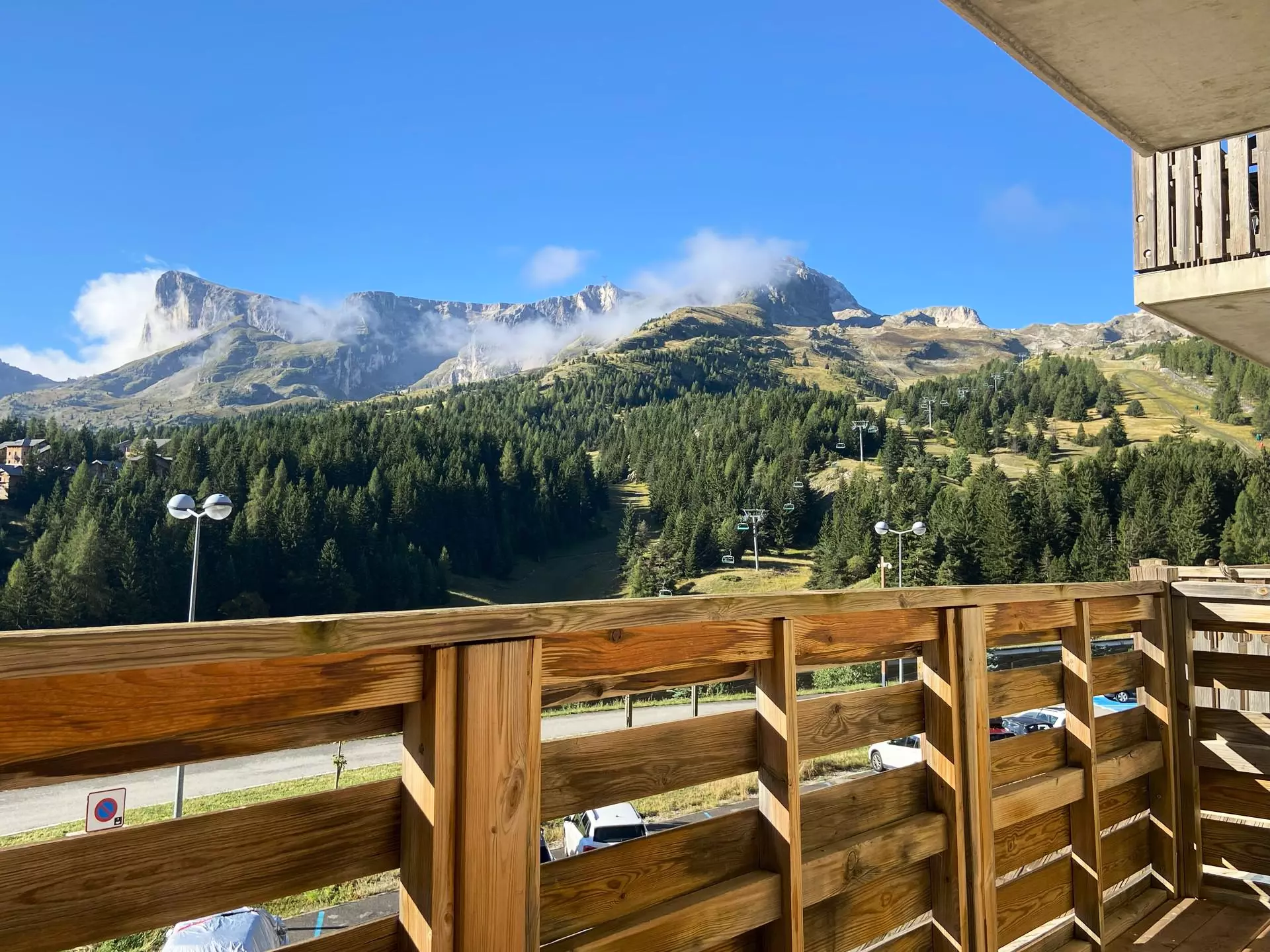 South-east facing balcony with a beautiful view of Le Pic de Bure and the Dévoluy ski area.