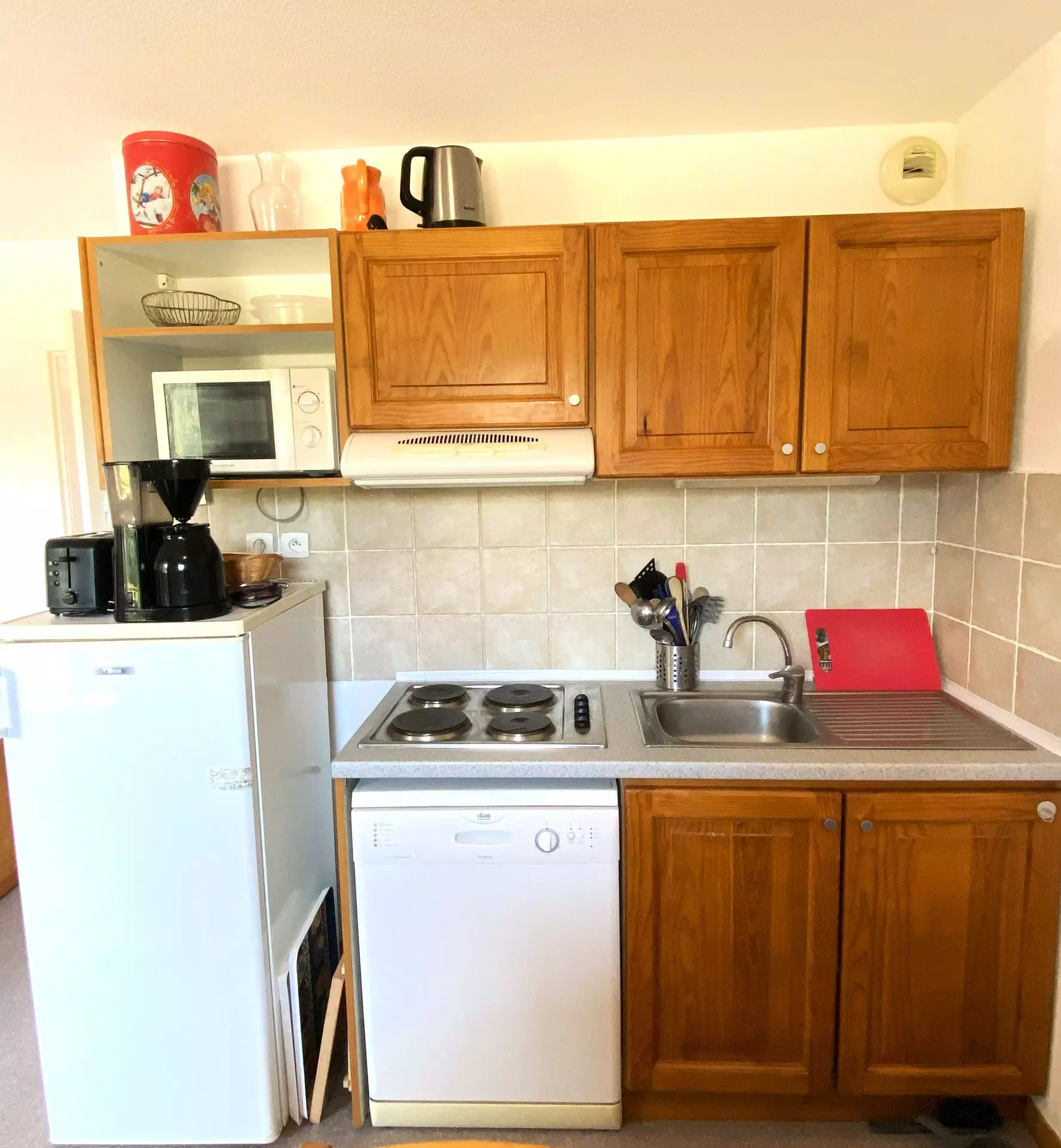 Equipped kitchenette, dishwasher, washing machine, refrigerator, microwave, filter coffee maker, raclette machine.