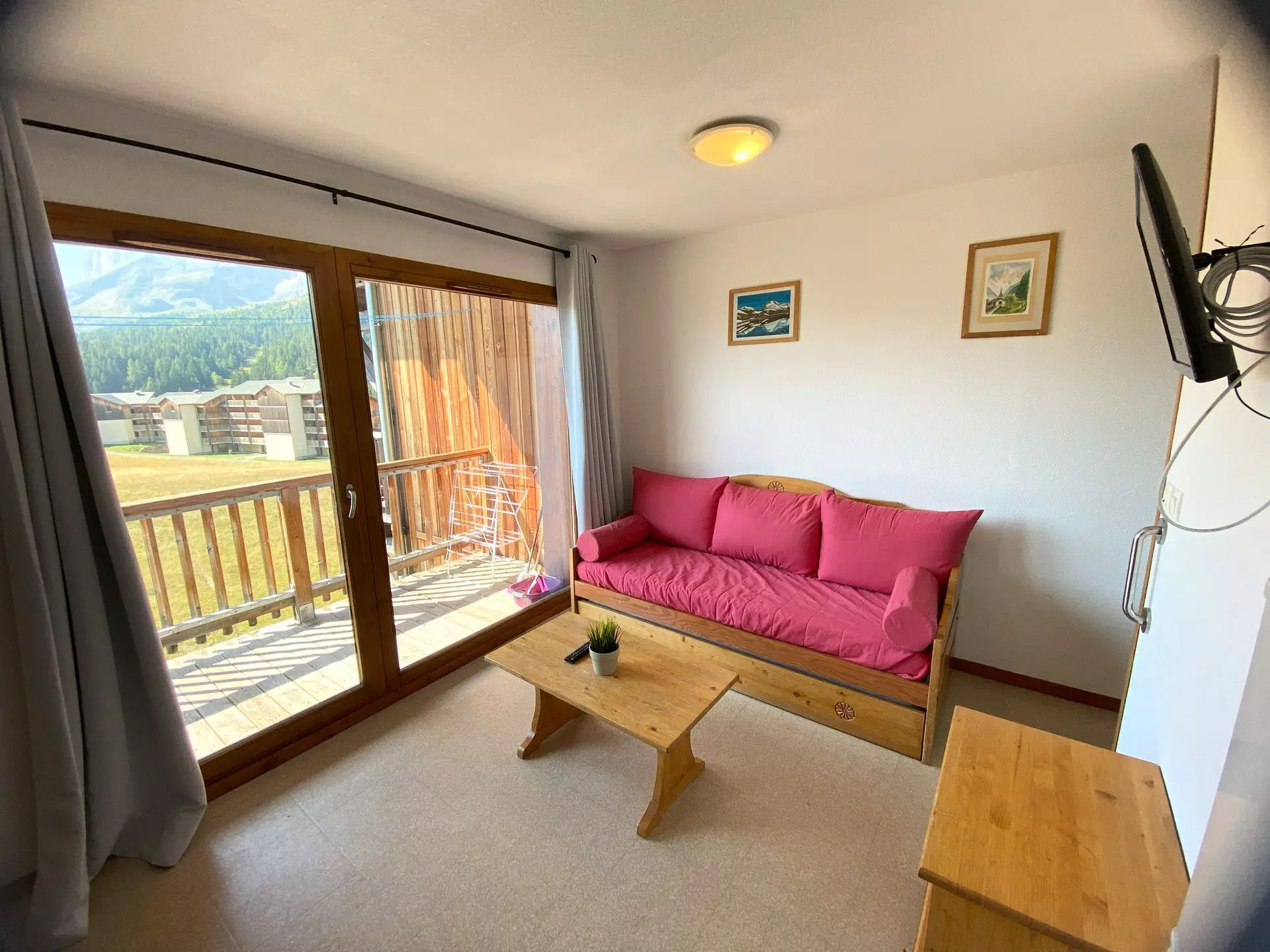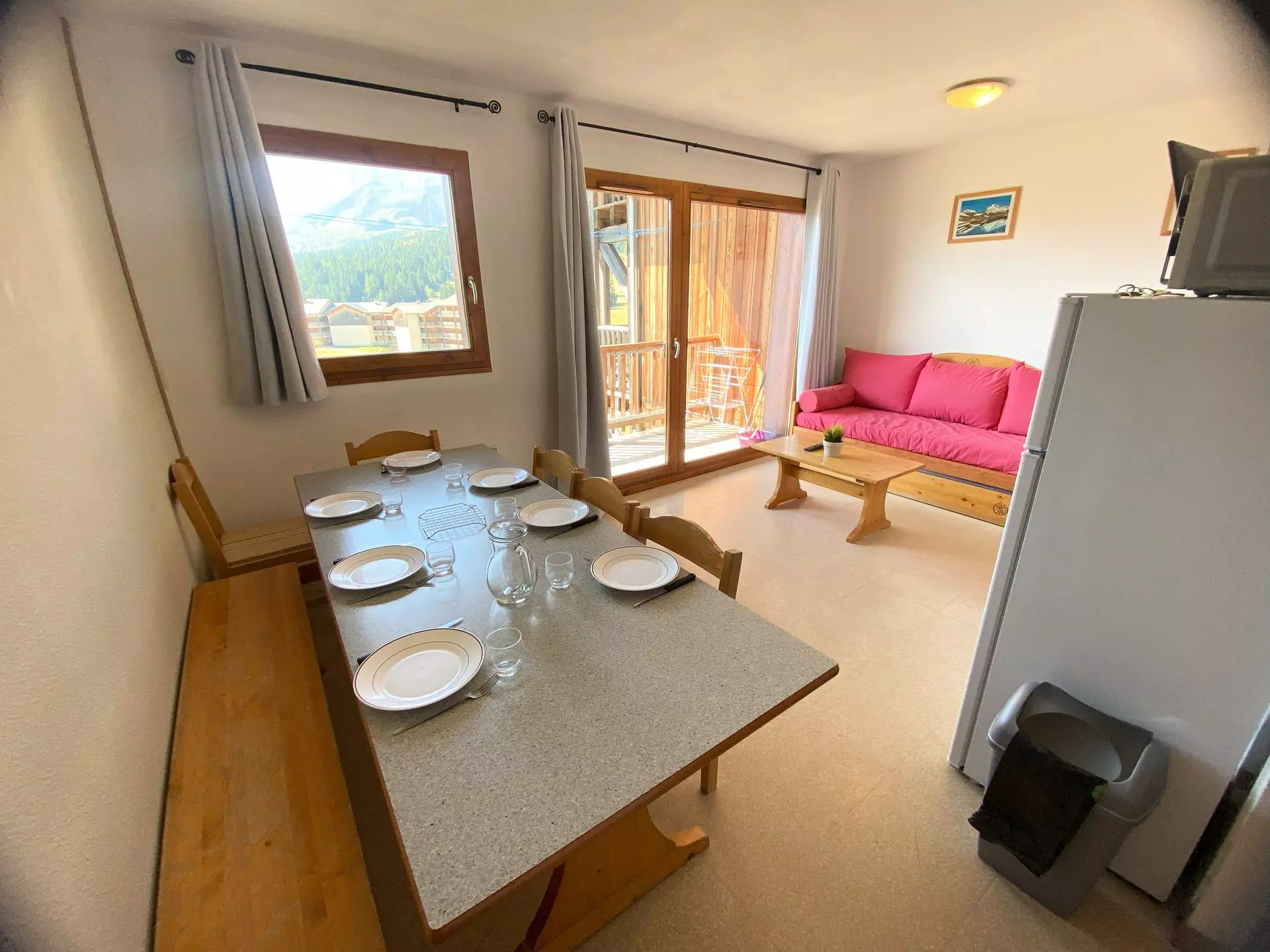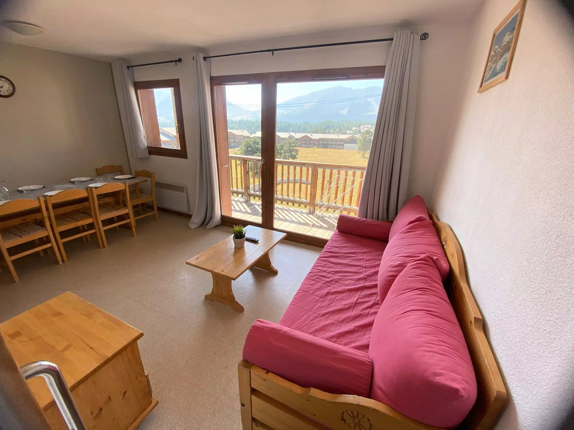 South-facing balcony. 5th-floor apartment. Slopes and shops 200m away.