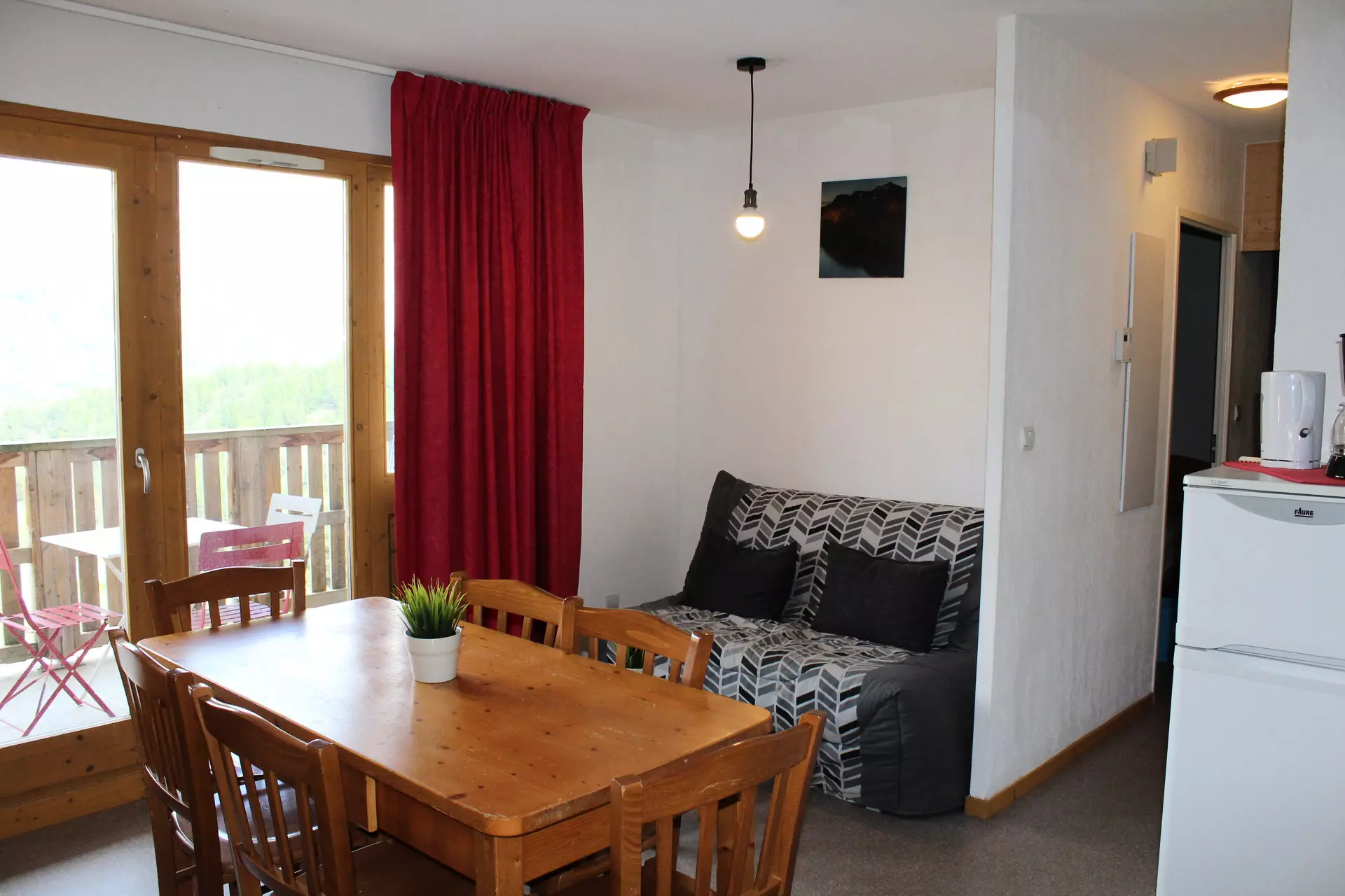 Living room with 1 BZ sofa bed for 2 people.