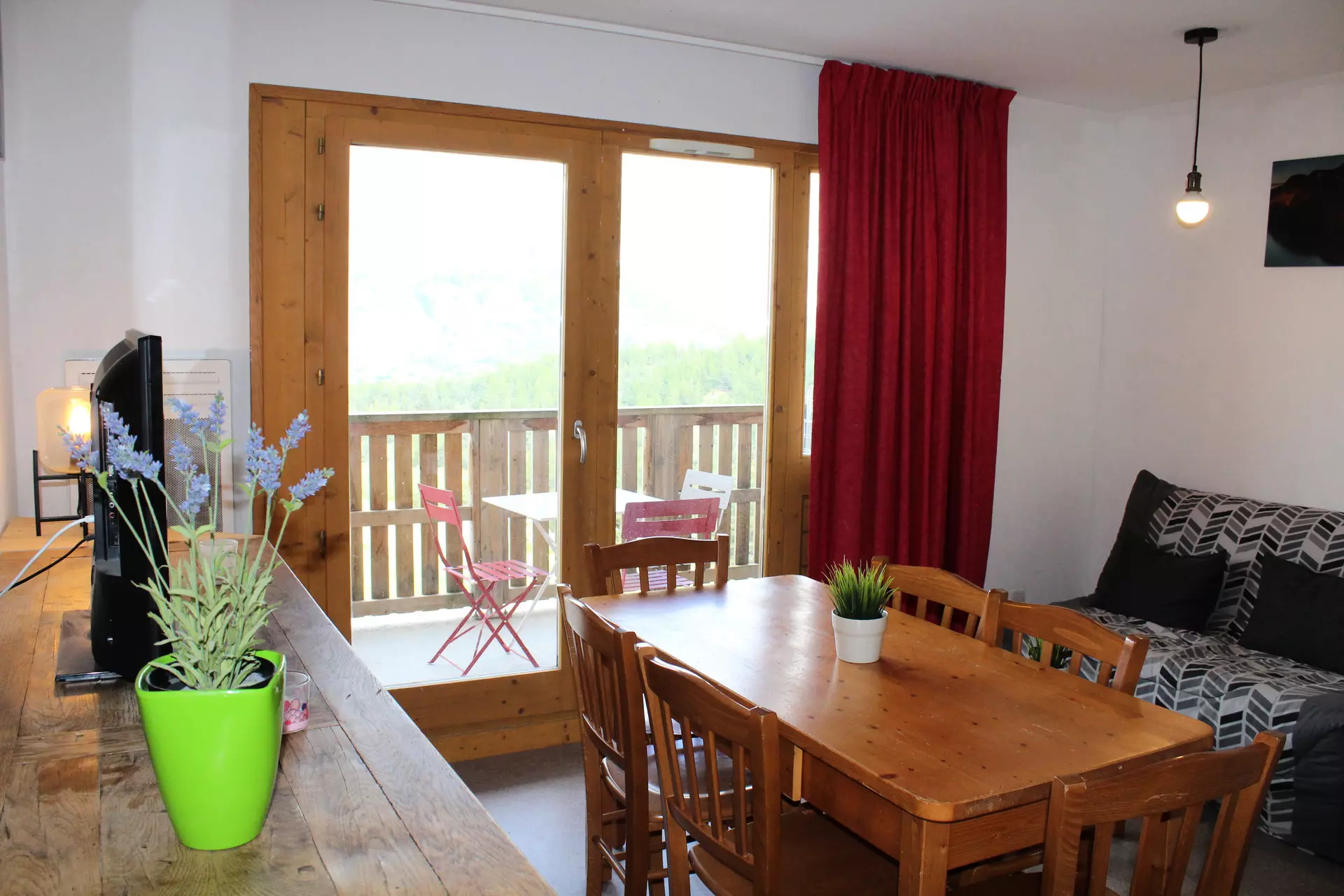 Beautiful 2-room apartment with a mountain corner, sleeping 6, located on the 3rd floor with elevator. Beautiful view of the surrounding mountains.