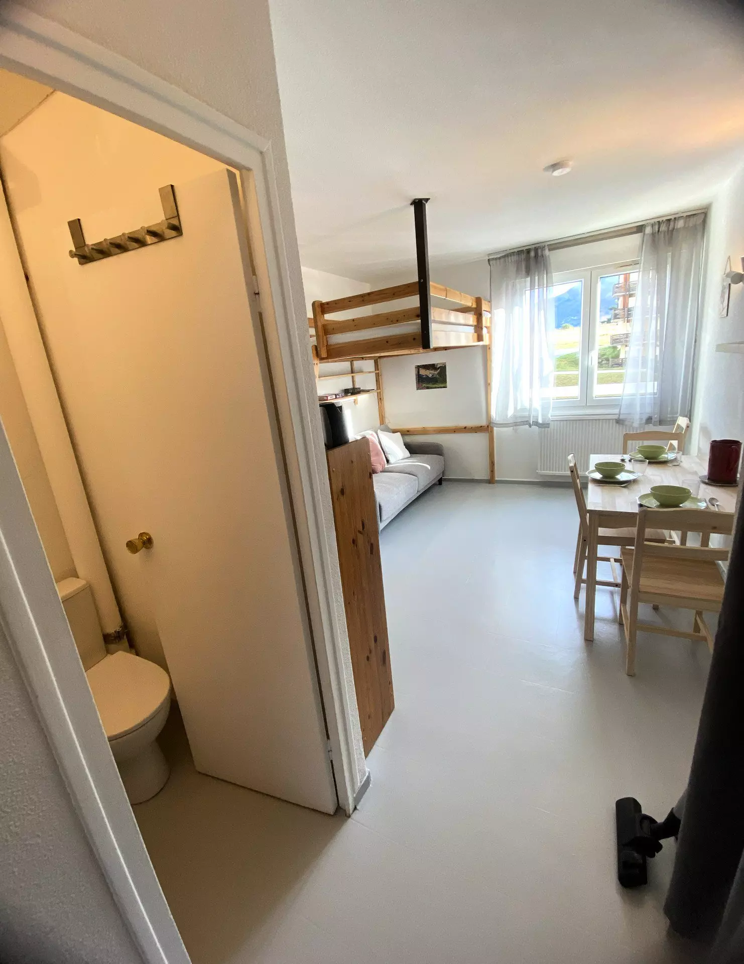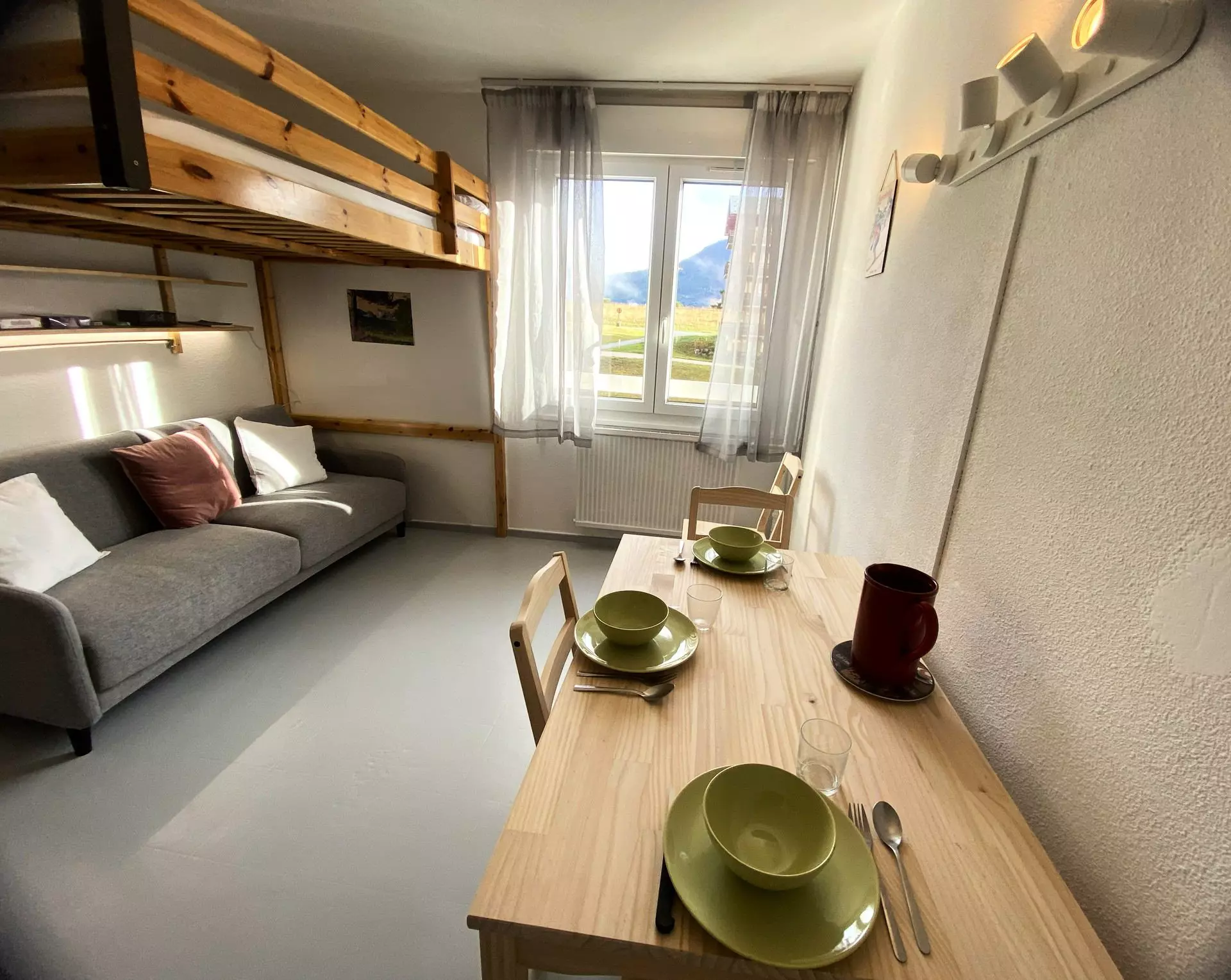 Living room with 1 double bed on the mezzanine. Non-convertible sofa.