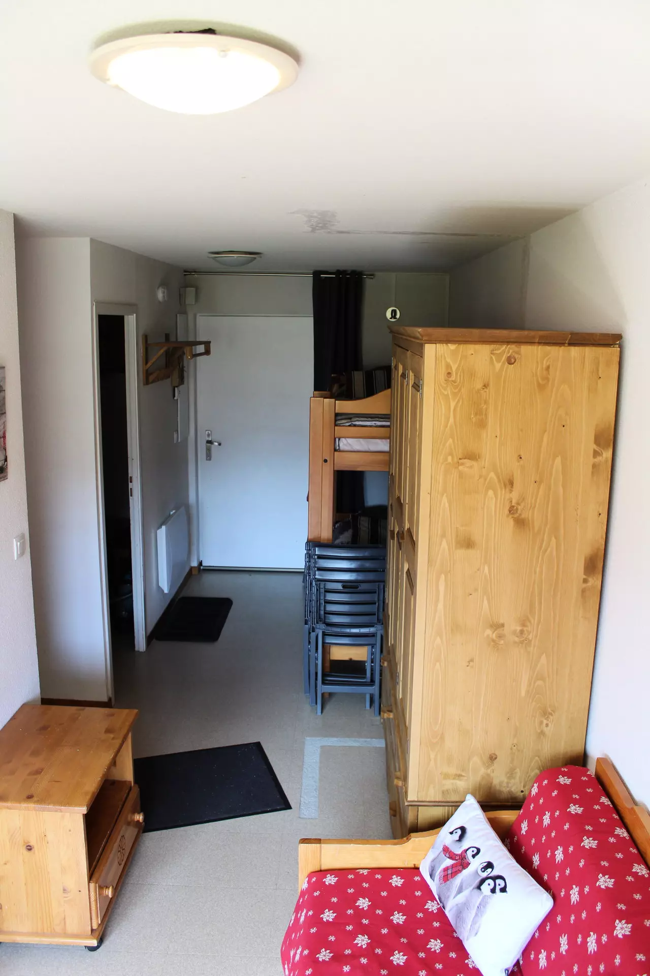 Living room with sofa bed. Alcove with 2 bunk beds. Bedroom with 1 double bed.