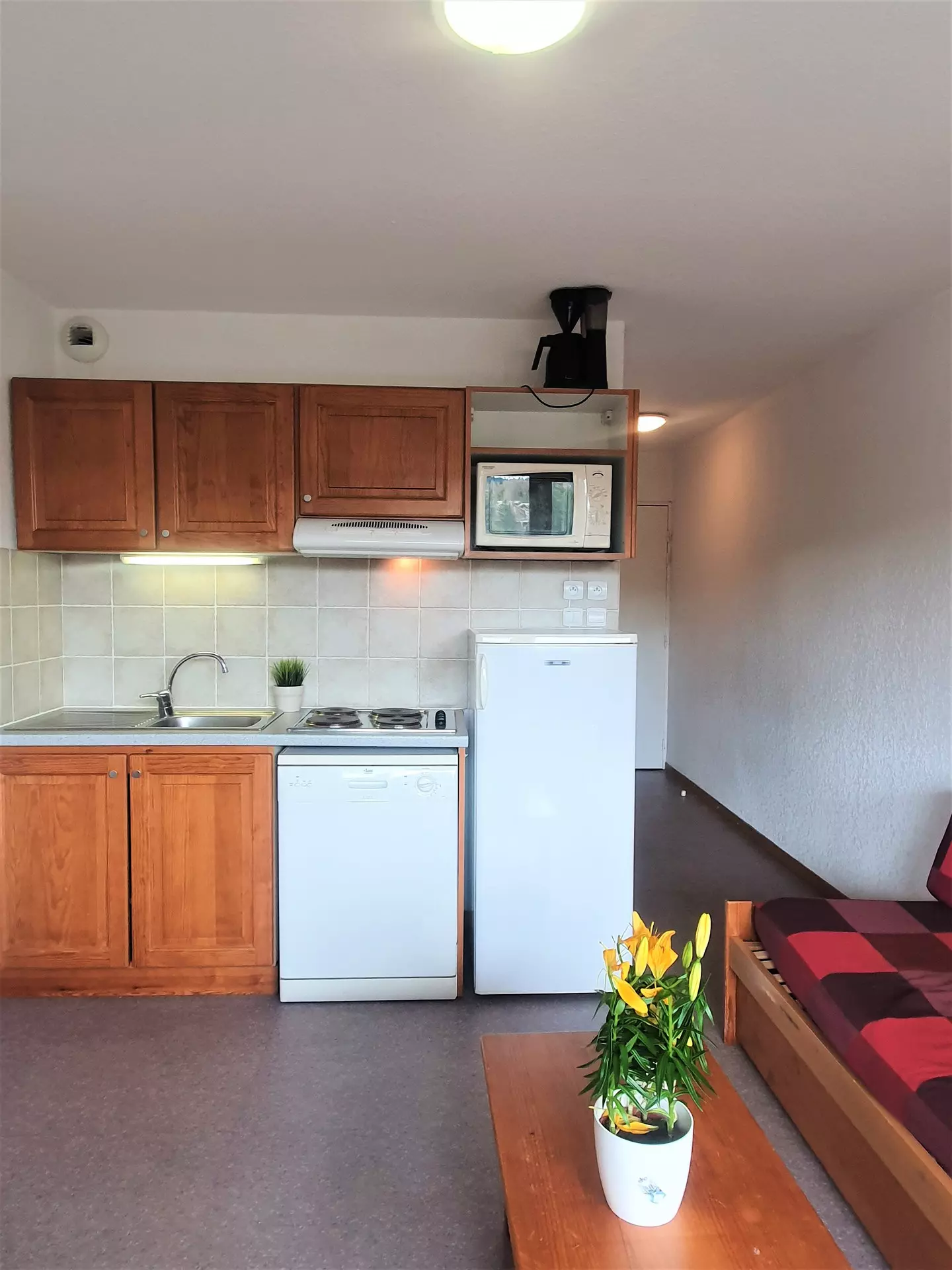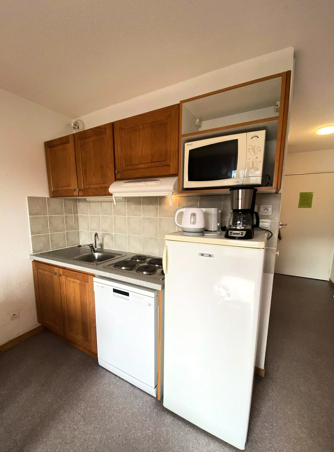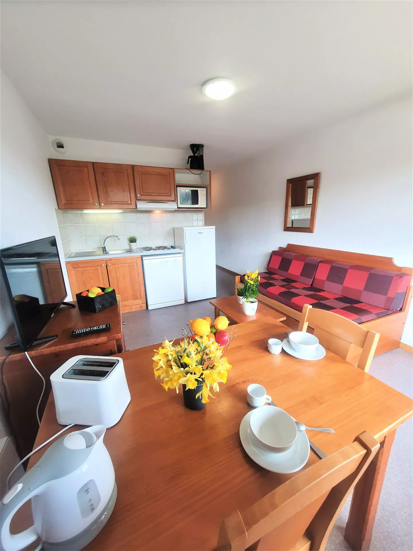 Equipped kitchenette, microwave oven, dishwasher, refrigerator, toaster, electric kettle.
