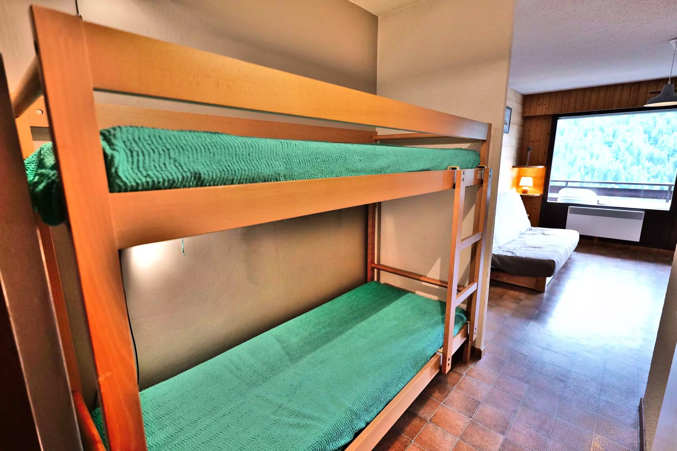 An entrance with 2 x90 bunk beds