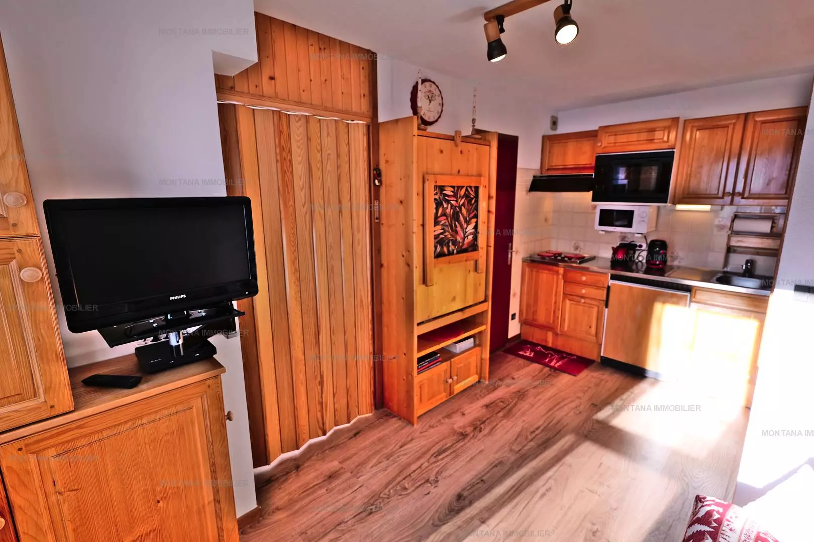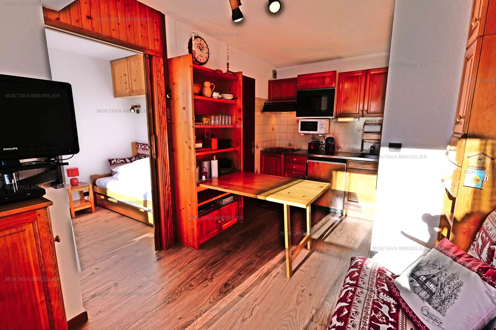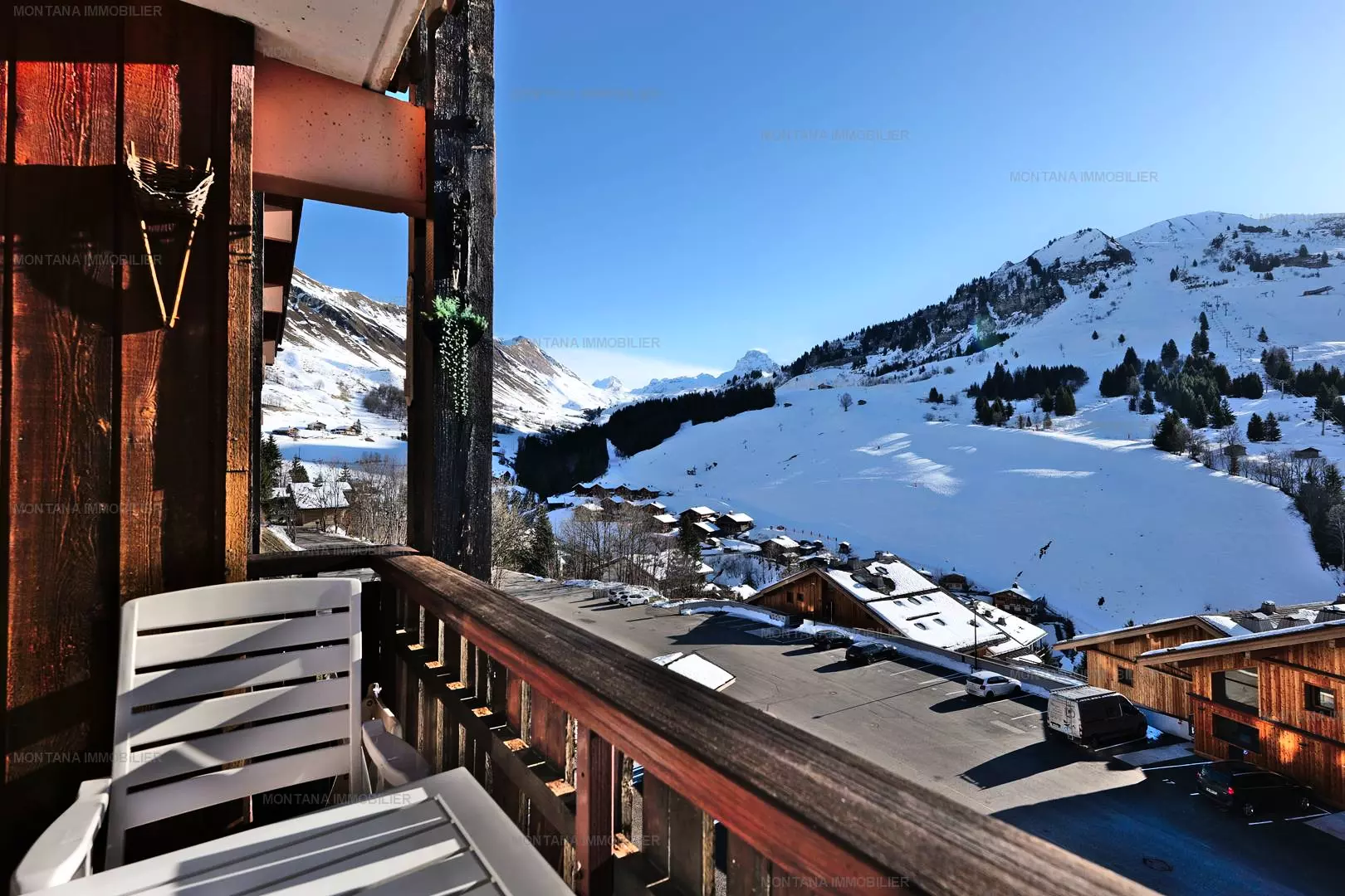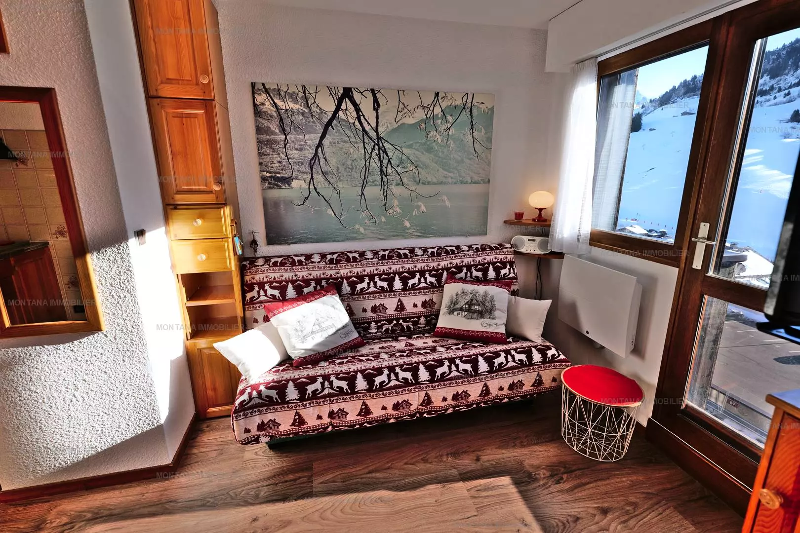 Pleasant studio + mountain corner for 4 people, located on the 2nd floor of the CHALET DE LESSY A residence, in the quiet area of Samance, in the upper part of the Chinaillon resort, offering an incredible view of the ski area.