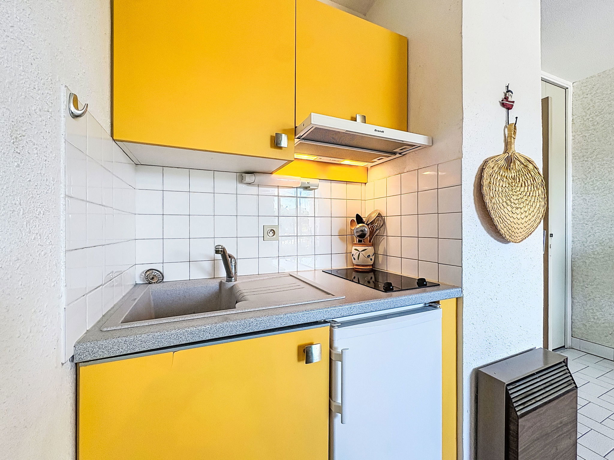 1-room studio 25 m2 on 1st floor, east facing position. Object suitable for 2 adults + 2 children. Entrance hall. Sleeping alcove with 1 x 2 bunk beds (60 cm, length 180 cm). Living/dining room with 1 double sofabed (140 cm, length 190 cm), TV (flat screen). Kitchenette (2 ceramic glass hob hotplates, electric coffee machine, combination microwave). Bathroom, sep. WC. Terrace 4 m2. Terrace furniture. Facilities: Internet (WiFi, extra). Parking space n 572. Please note: maximum 1 pet/ dog allowed. Smoke alarm. Instead of an enclosed bedroom, some sleeping areas are located in an open-plan area (gallery, alcove, etc.). Offer by a private individual according to Art. 155, IV of CGI.