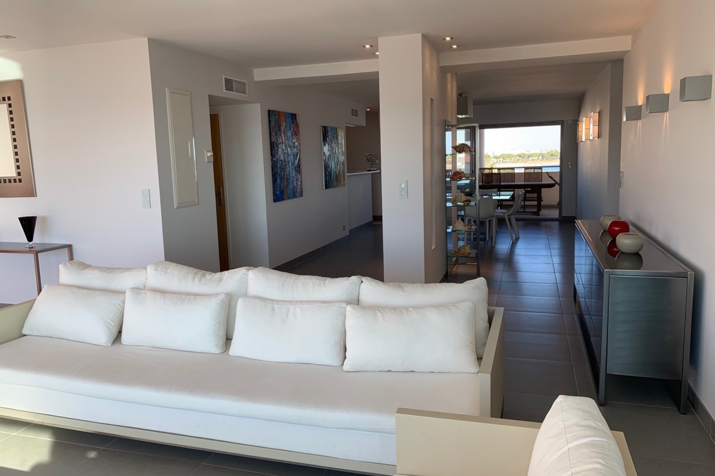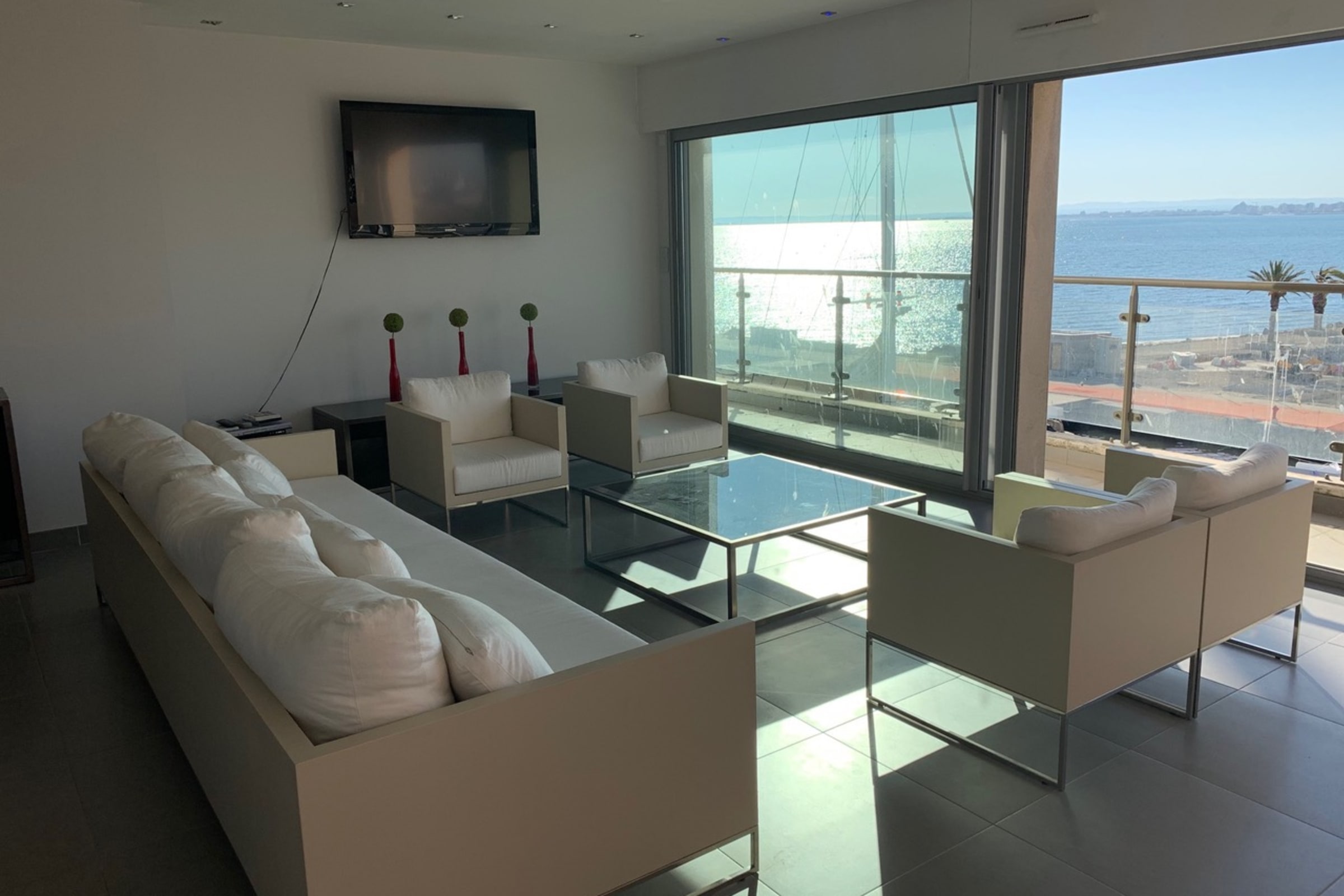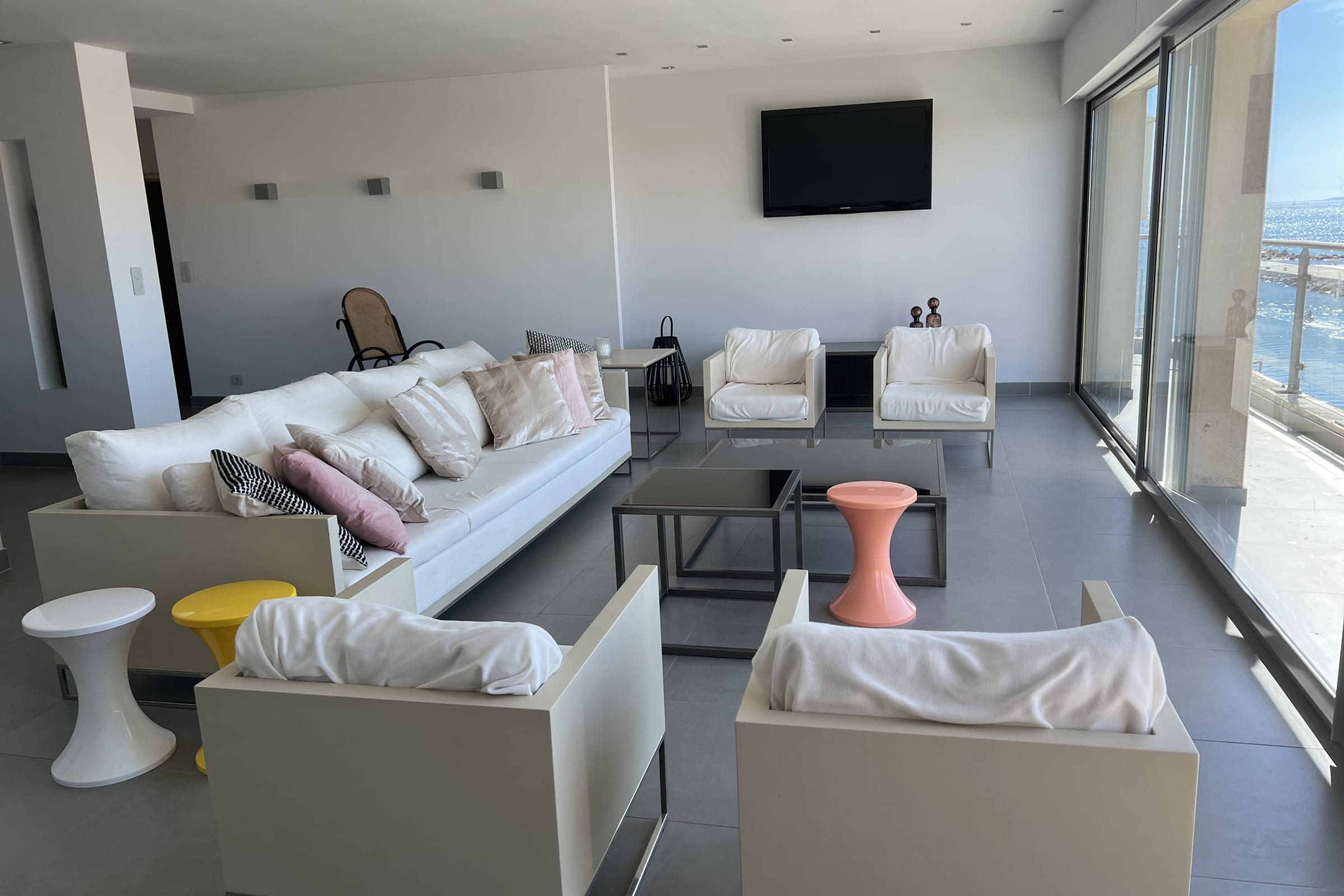 Large living area filled with natural light and sea views