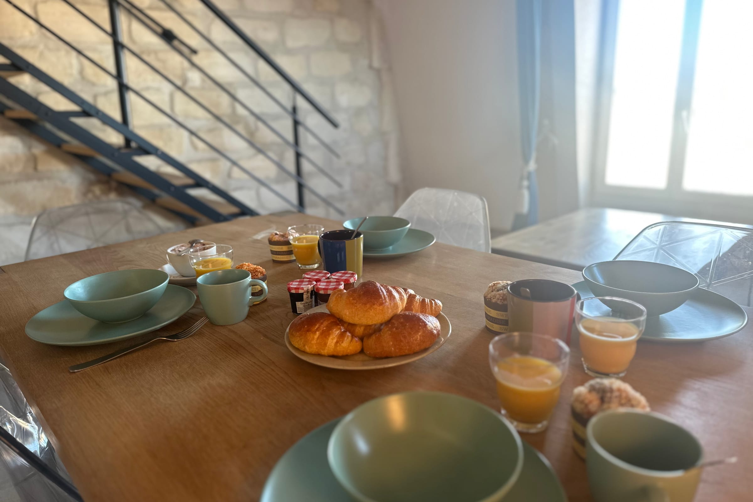 A set of bed sheets for the double bed and 4 bath towels (2 large and 2 small) are included in the reservation. Any additional requests will be charged: €25 TTC for a double bed (2 people) or €15 TTC for a single bed (1 person). Basic products are provided, except for condiments, shower gel, and shampoo.