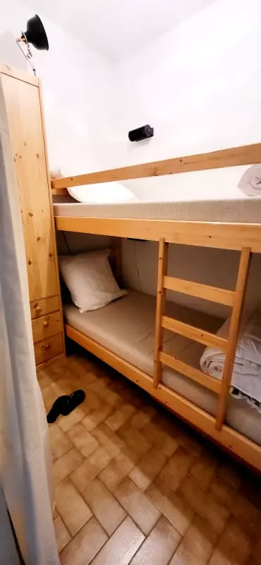 Bedroom 2: cabin with 2 x 80cm beds, 65x65cm square pillows, duvet.