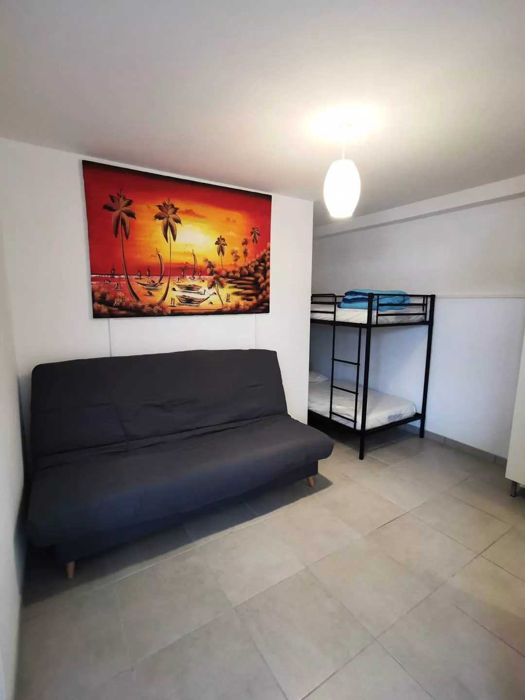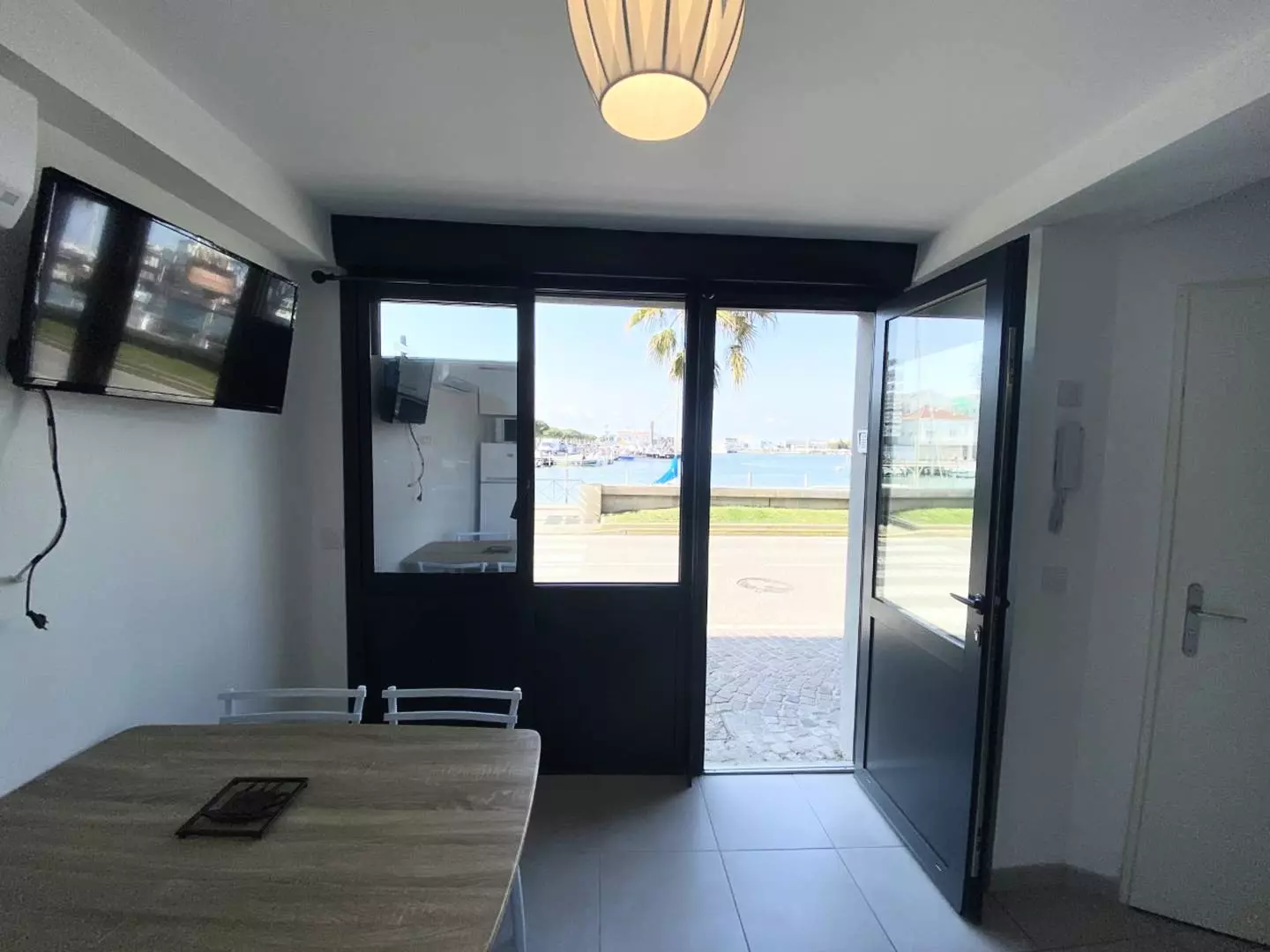 CITY CENTER - Left Bank - Beautiful studio in the heart of the city center of 22m² facing the canal in a new building, A living room with a sofa bed in 140cm, a bunk bed with 2 beds in 90cm, a television and air conditioning, a fully equipped kitchen, (ceramic hob, refrigerator / freezer, microwave, oven, dishwasher) A bathroom with a toilet and a washing machine. Facing the canal and the swing bridge, close to the beach, the bus station and all amenities. 200m from the municipal parking free all year round. Furnished and equipped for 4 people.