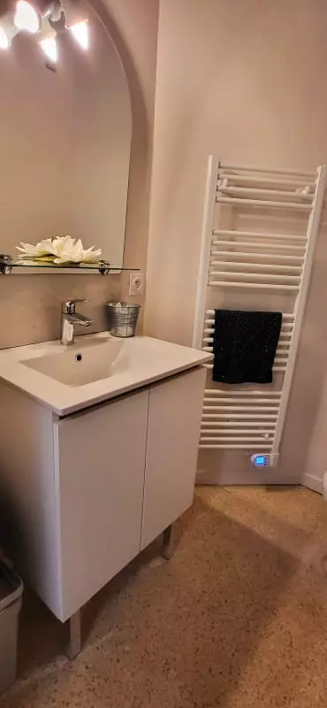 Kitchen side: open to the living room, fully equipped (Induction hob, microwave, fridge, dishwasher, washer-dryer, *Filter coffee maker*, toaster and kettle) with a table for 4 people which will allow you to accommodate your meals and guests.