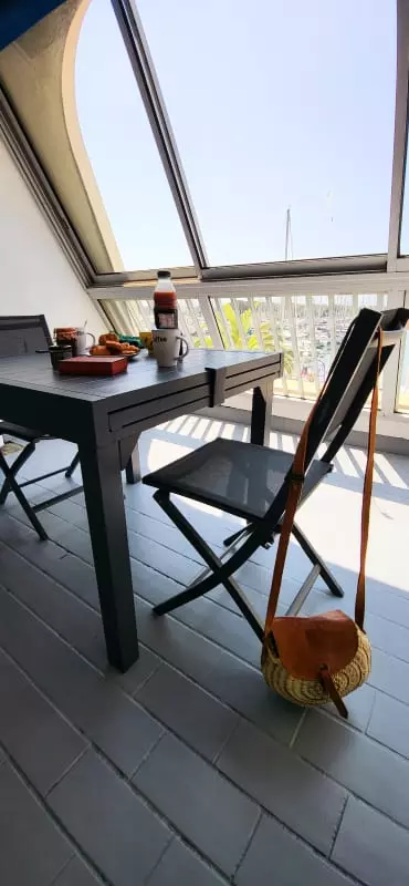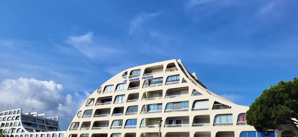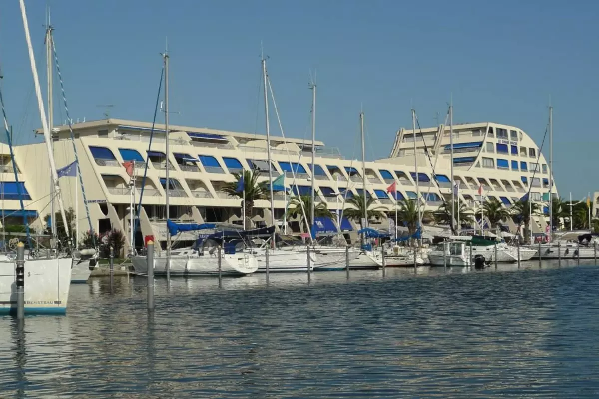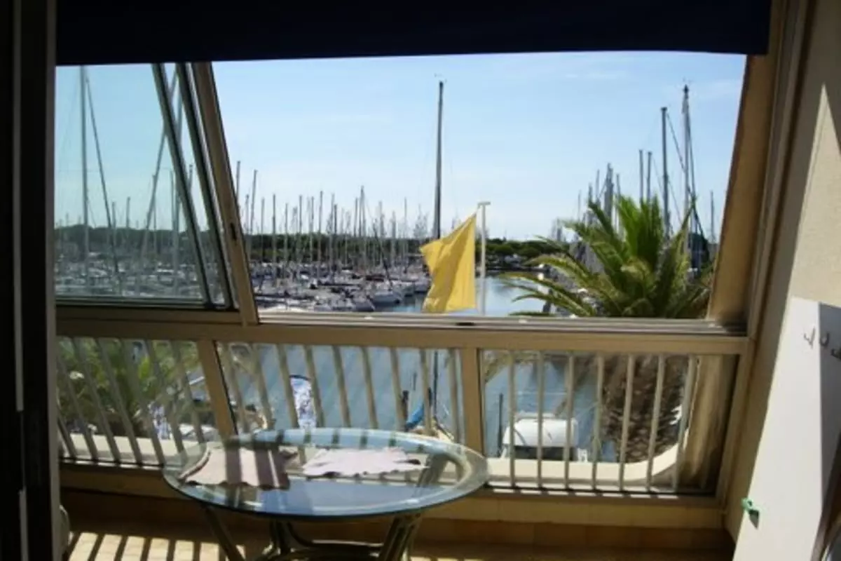 Superb view from this studio cabin with balcony facing the boats and the water of the marina of Port Camargue. North Beach district facing the Bay of La Grande Motte. Restaurants, ice cream parlors, and bars are in front of the residence. Beach 400m away. Shops 600m away.