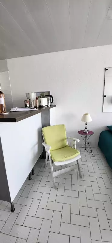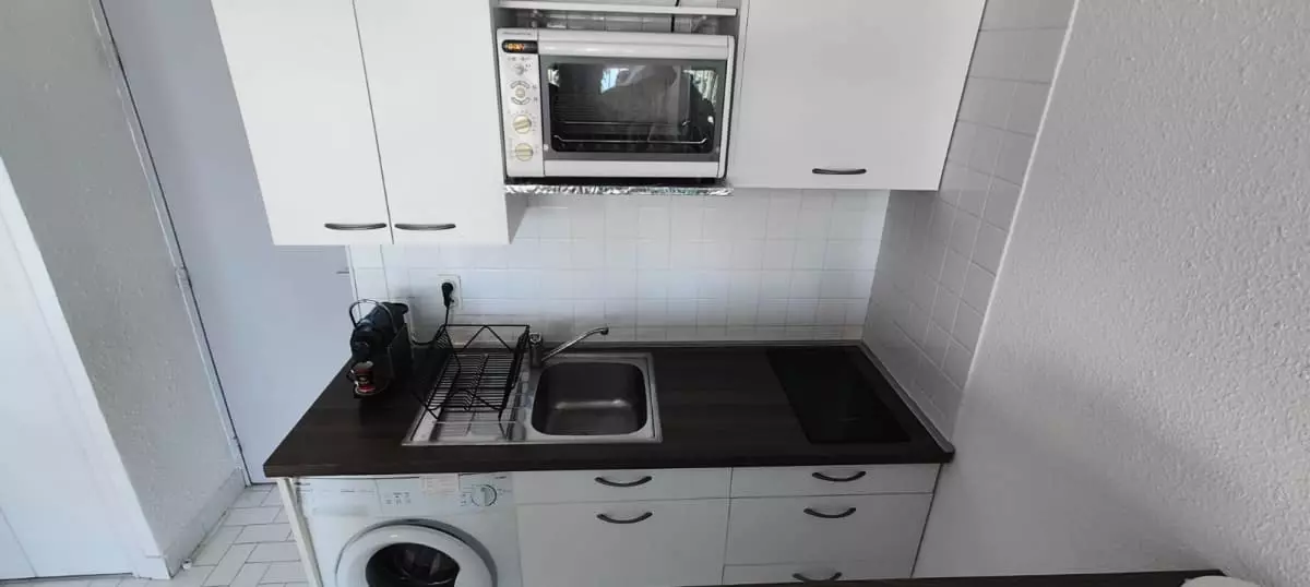 Kitchen side: open to the living room, fully equipped (2-burner vitroceramic hob, microwave, fridge, washing machine, Nespresso coffee machine, toaster and kettle) with a round table for 4 people which will allow you to welcome your meals and guests.
