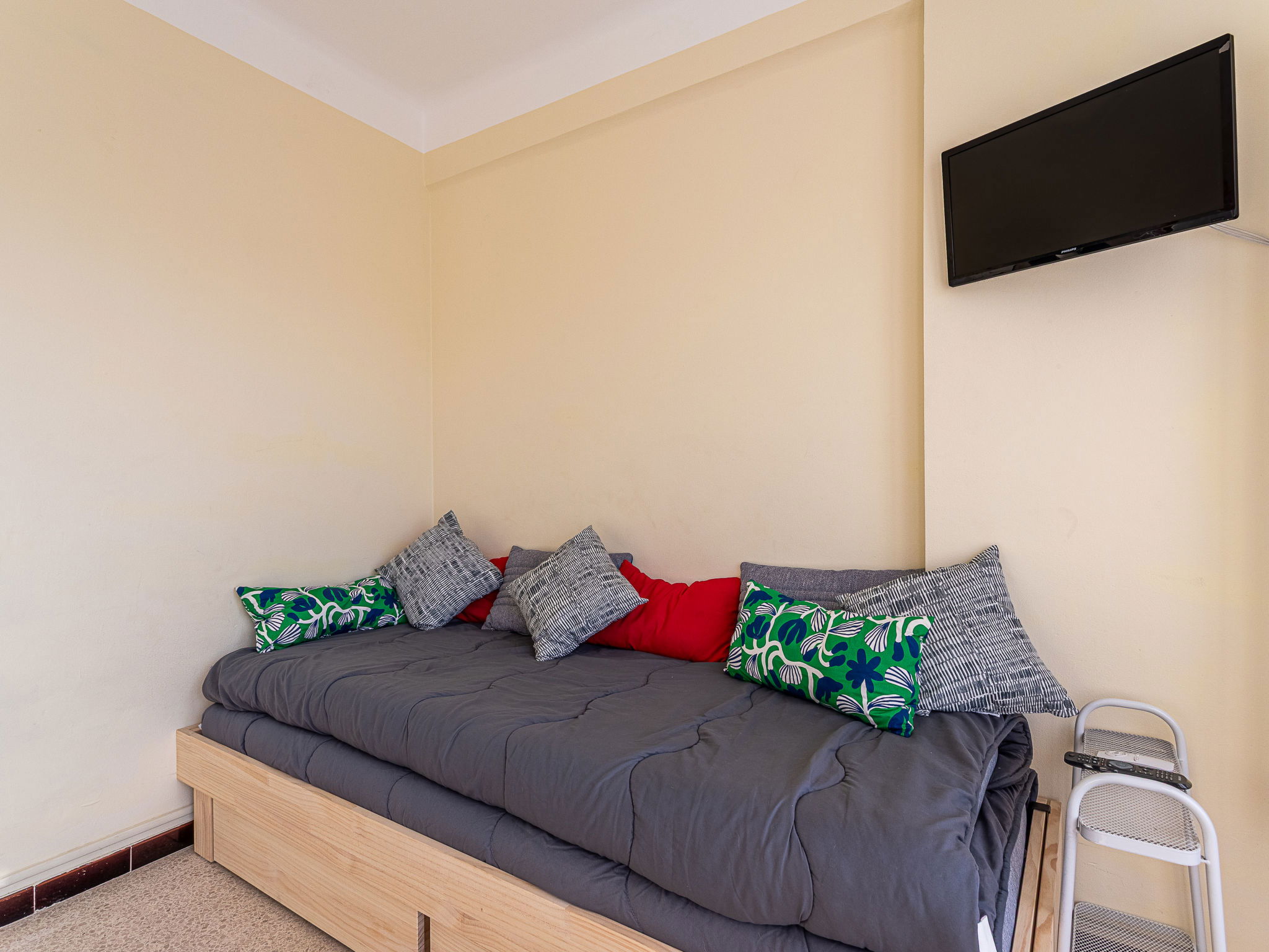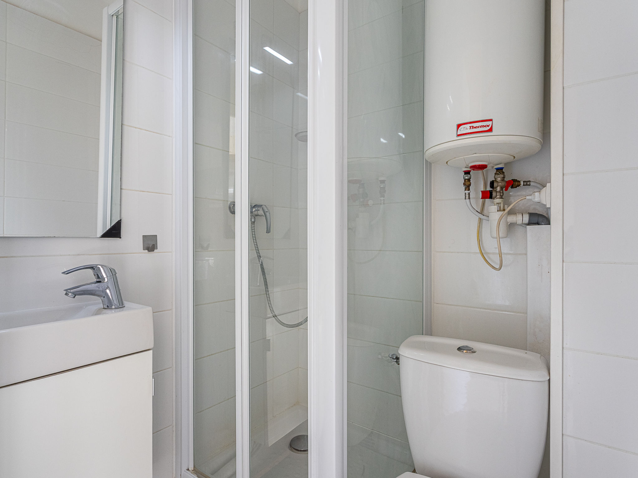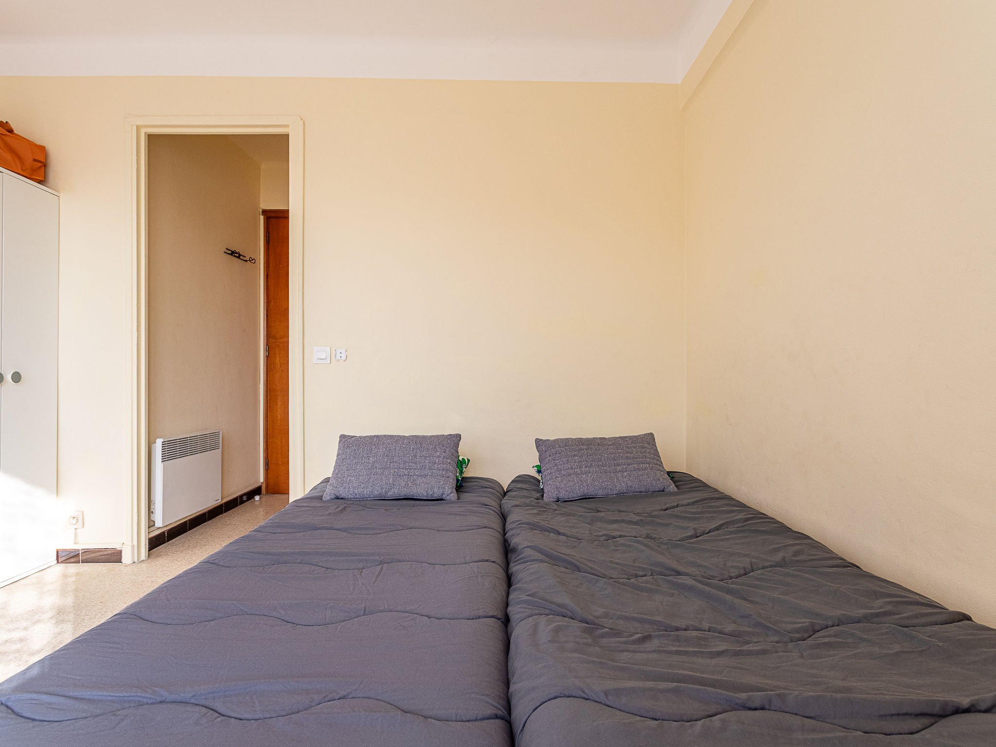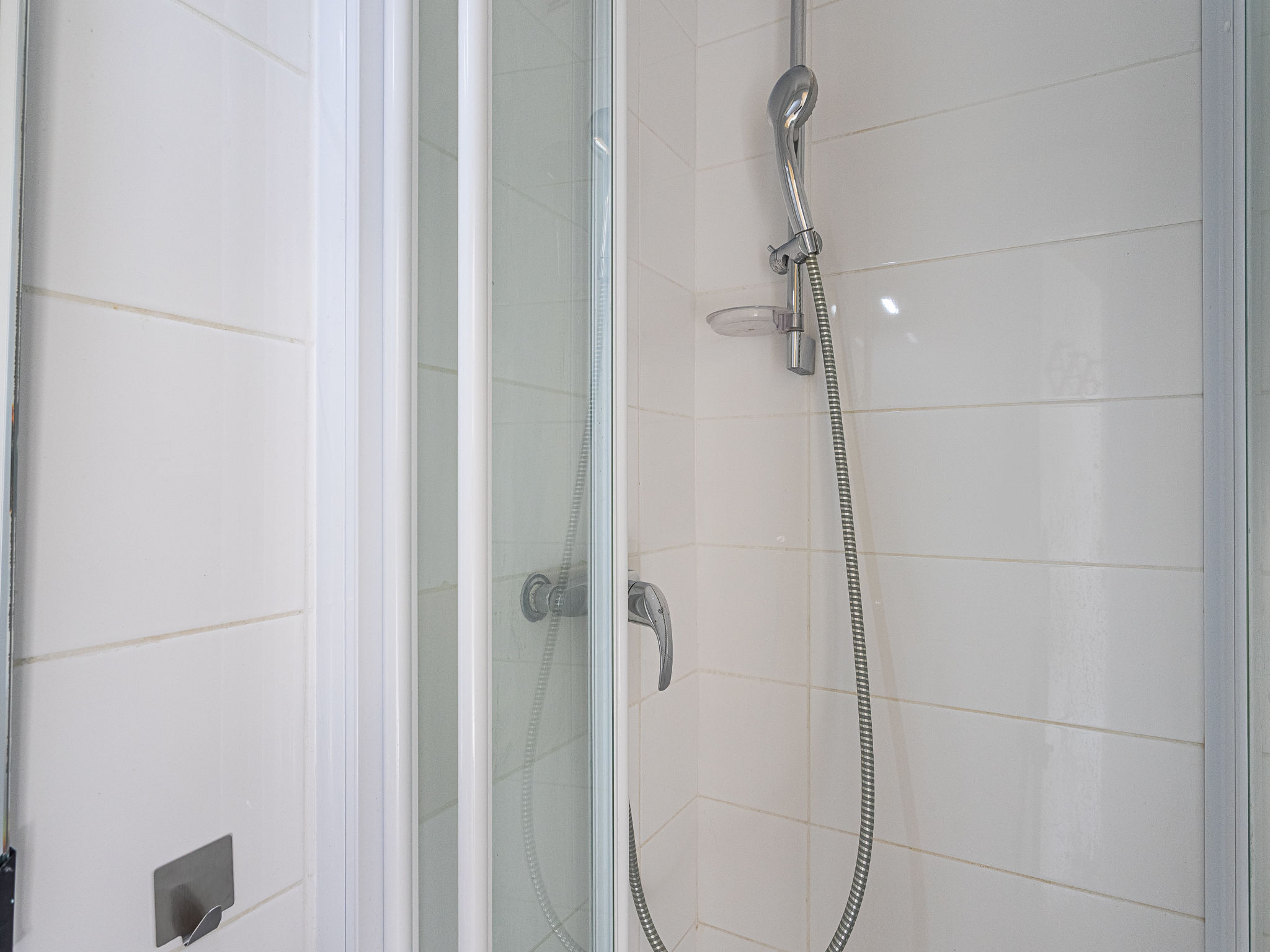 1-room studio 15 m2 on 3rd floor. Bright, simple furnishings: living/sleeping room with 1 double sofabed (2 x 80 cm, length 190 cm), dining table and TV (flat screen). Kitchenette (2 ceramic glass hob hotplates, toaster, kettle, microwave, electric coffee machine). Shower/WC. Electric heating. Balcony 6 m2. View of the resort. Facilities: iron, hair dryer. Internet (WiFi, extra). Please note: apartment street side. Non-smokers only, no parking. Maximum 1 pet/ dog allowed. Smoke alarm. 830700002755L