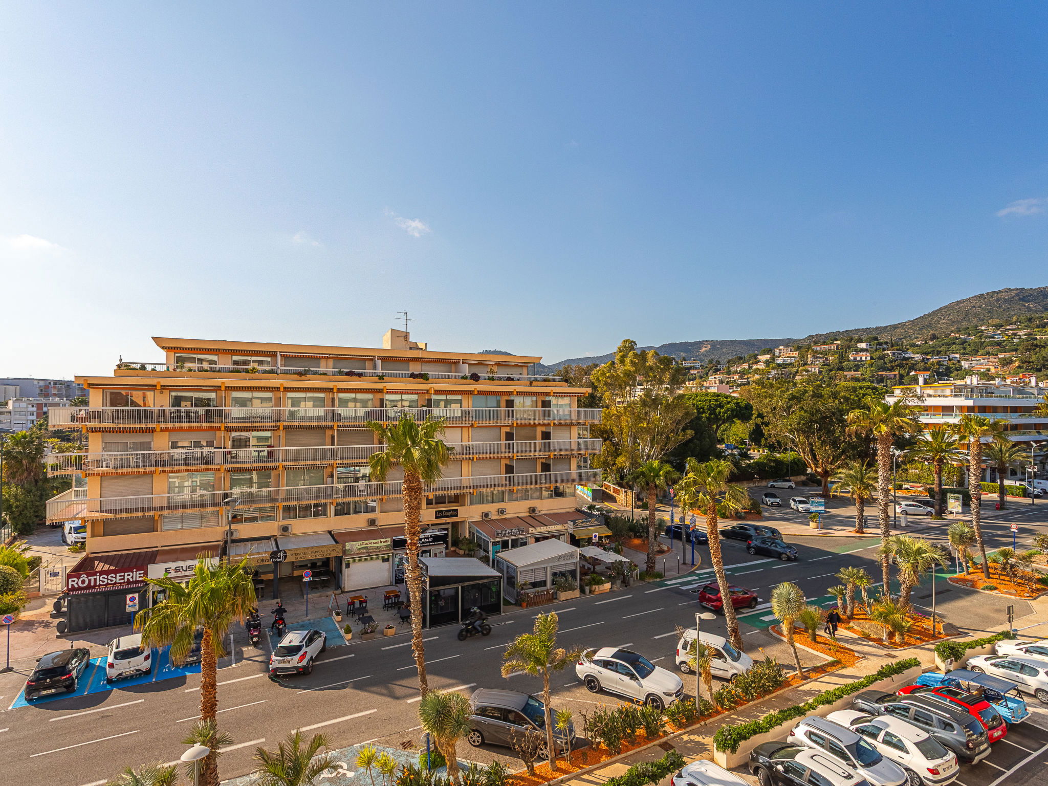 Le Lavandou: Apartment house "Le Grand Large", 9 storeys. In the centre of Lavandou, 20 m from the sea, 20 m from the beach, road to cross. In the house: lift. Parking (limited number of spaces). Shop 50 m, grocery 200 m, supermarket 500 m, restaurant 50 m, bakery 80 m, café 50 m, internet café 200 m, bicycle rental 100 m, bus stop "Lavandou Gare routière" 400 m, sandy beach 20 m. Sports harbour 700 m, minigolf 500 m. Nearby attractions: Magic World 24 km. The keys‘ handover takes place by the agency in Le Lavandou.