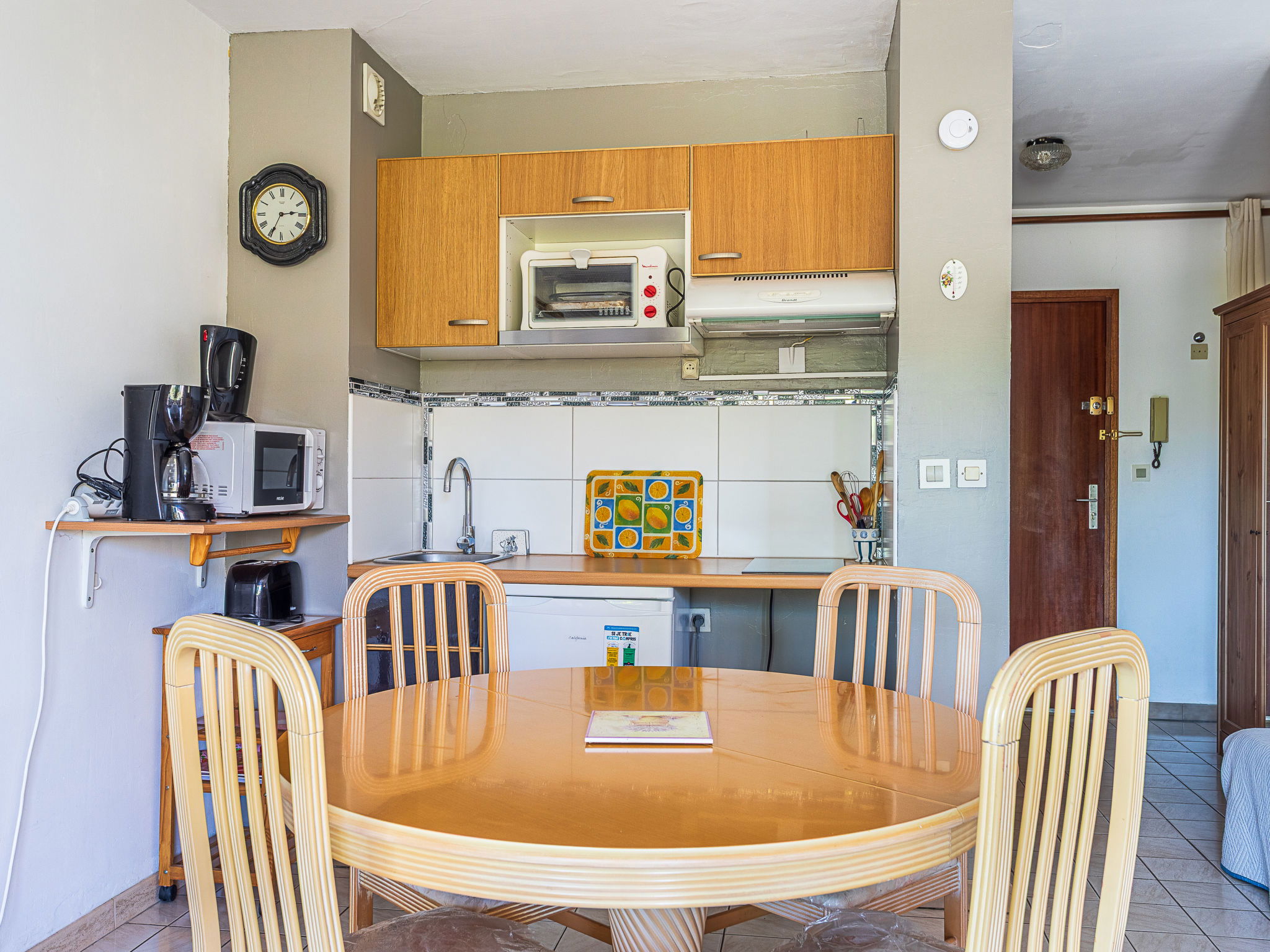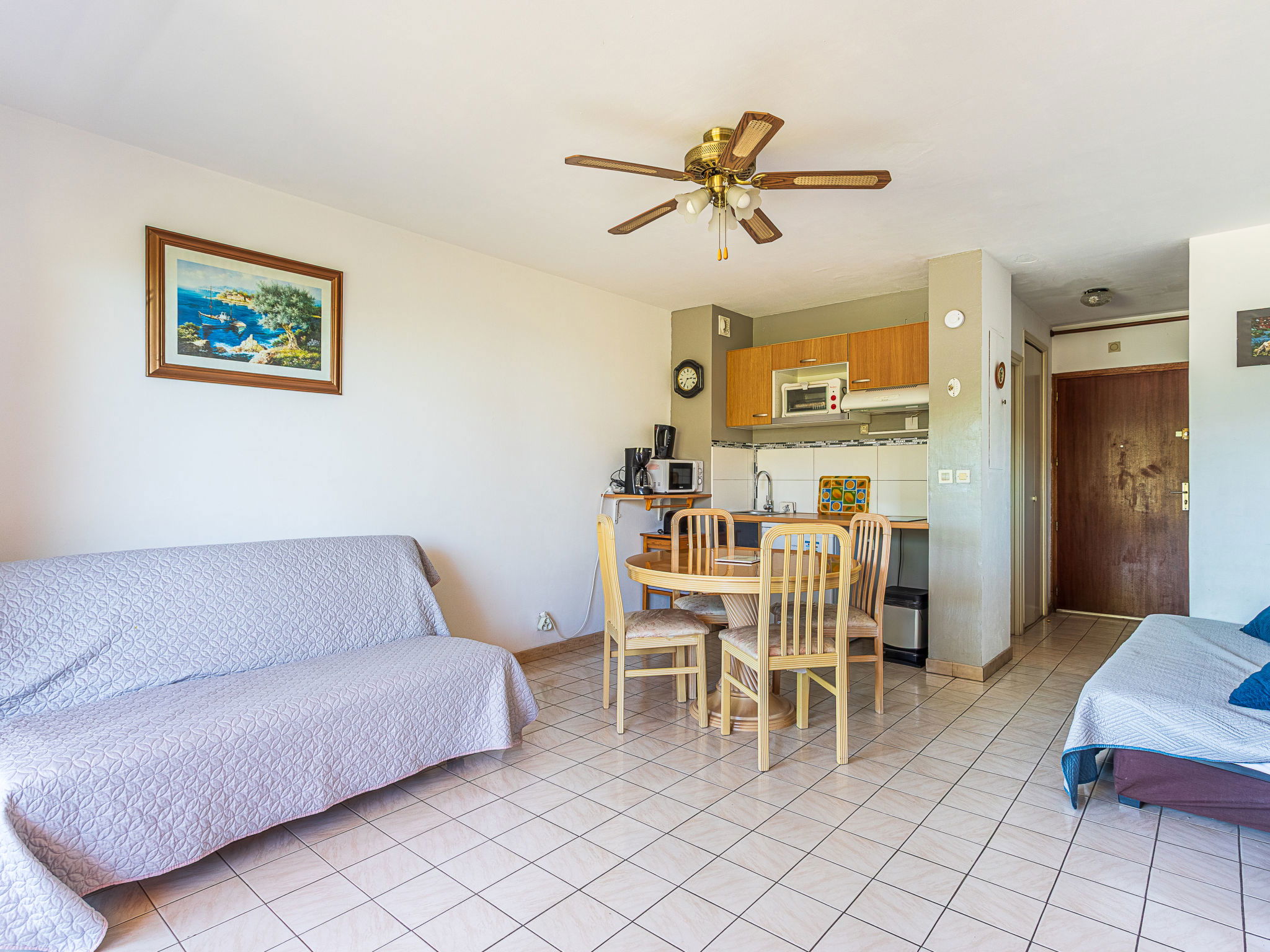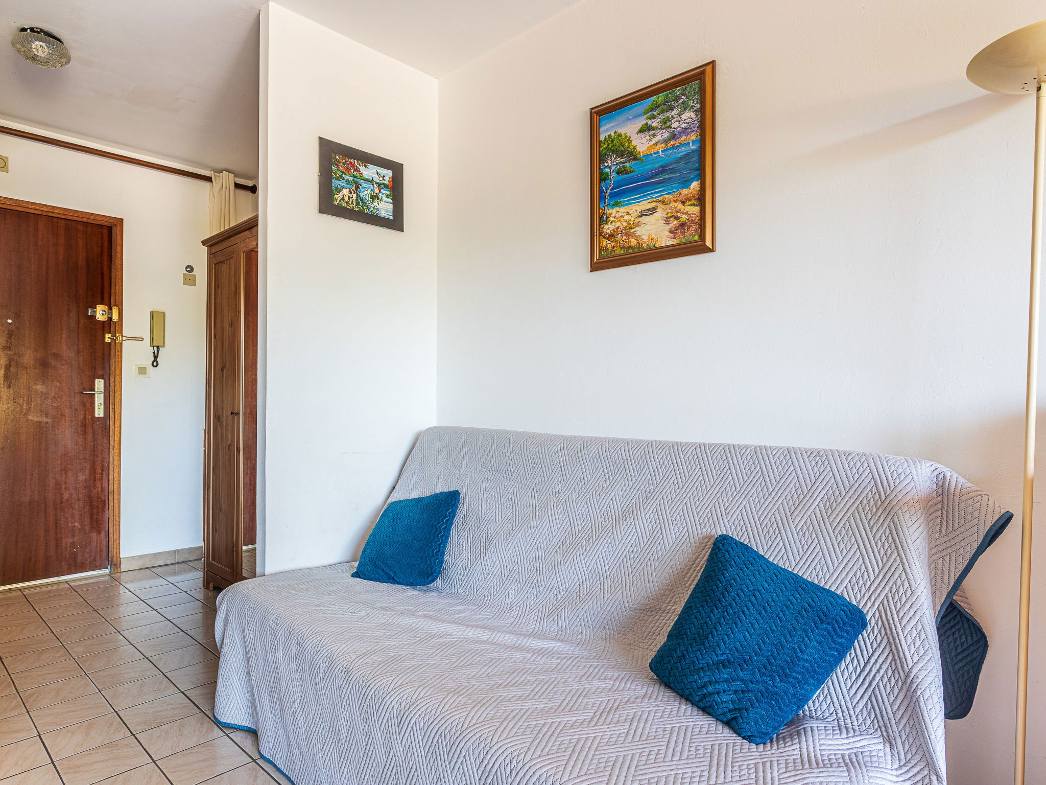1-room studio 32 m2 on 1st floor. Object suitable for 2 adults + 2 children. Practical and beautiful furnishings: living/dining room with 1 double sofabed (140 cm, length 190 cm) with 1 double sofabed (160 cm, length 200 cm), TV (flat screen). Exit to the balcony. Kitchenette (2 hot plates, oven, toaster, kettle, microwave, electric coffee machine). Bath/WC. Electric heating. Balcony 10 m2, south facing position. Balcony furniture. Partial view of the sea. Facilities: hair dryer. Internet (WiFi, extra). Please note: apartment street side. Non-smokers only. Maximum 1 small pet/ dog allowed. TV only FR. Smoke alarm. 83070000137YO