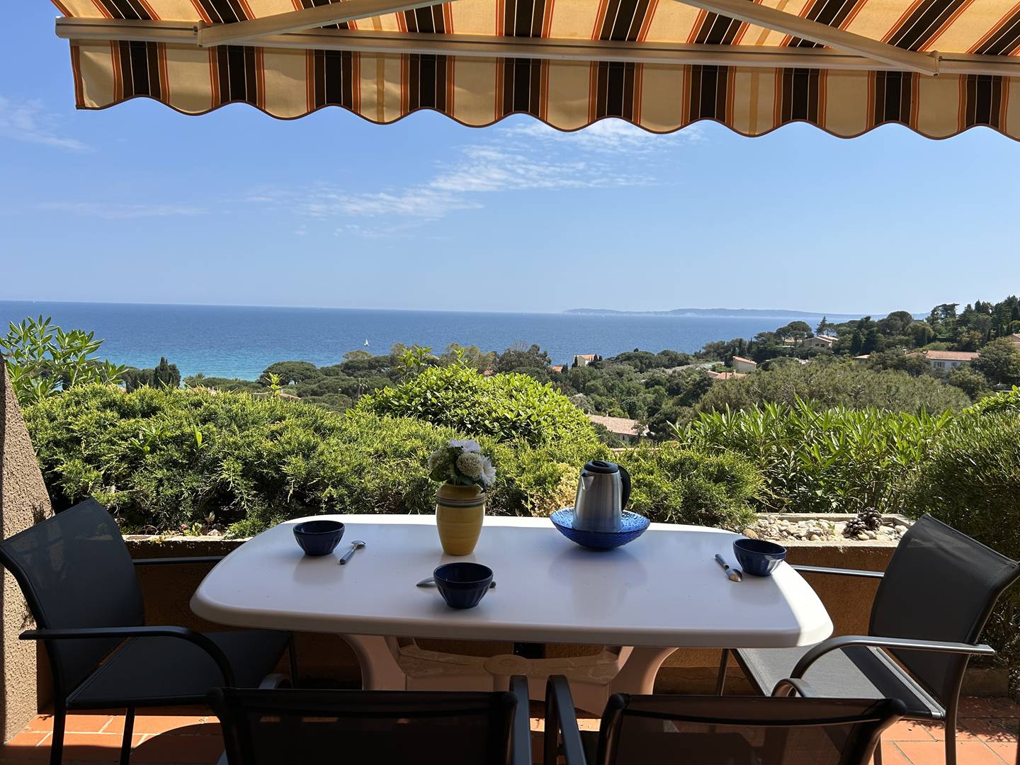 The apartment with terrace, magnificent sea view, facing SOUTH-EAST is composed of a living room with sofa, a bedroom with 1 bed 140 opening onto a terrace with sea view, a cabin area with 2 bunk beds, a renovated equipped kitchen open to the living room, a bathroom and a separate toilet. Terrace with awnings,